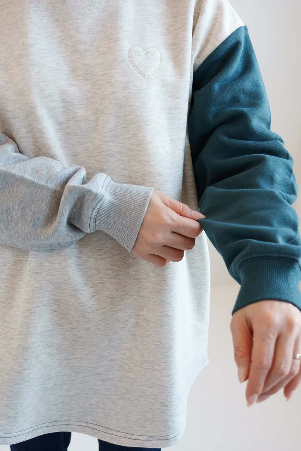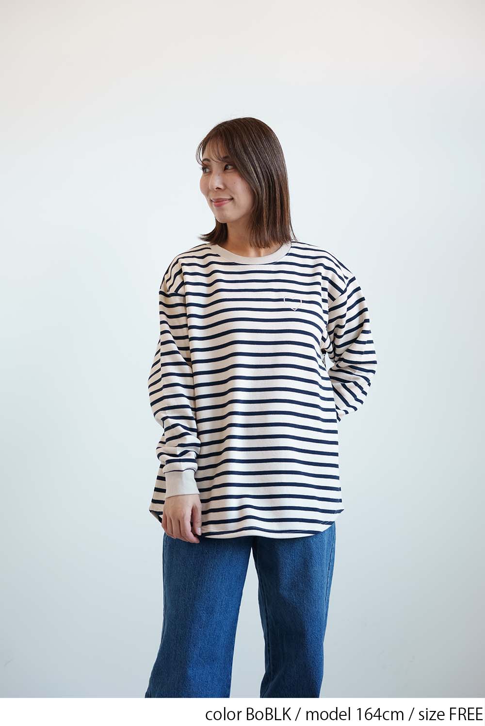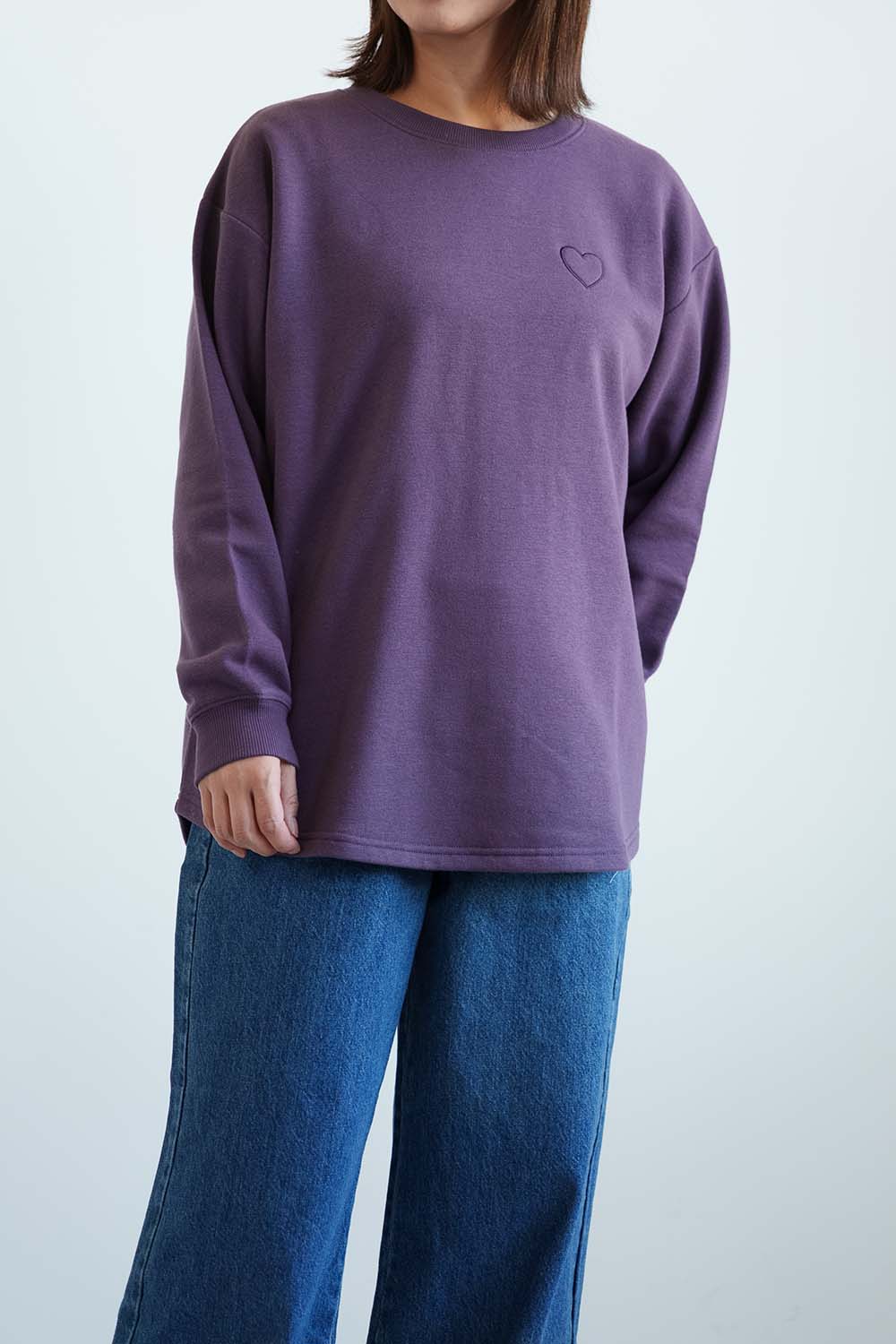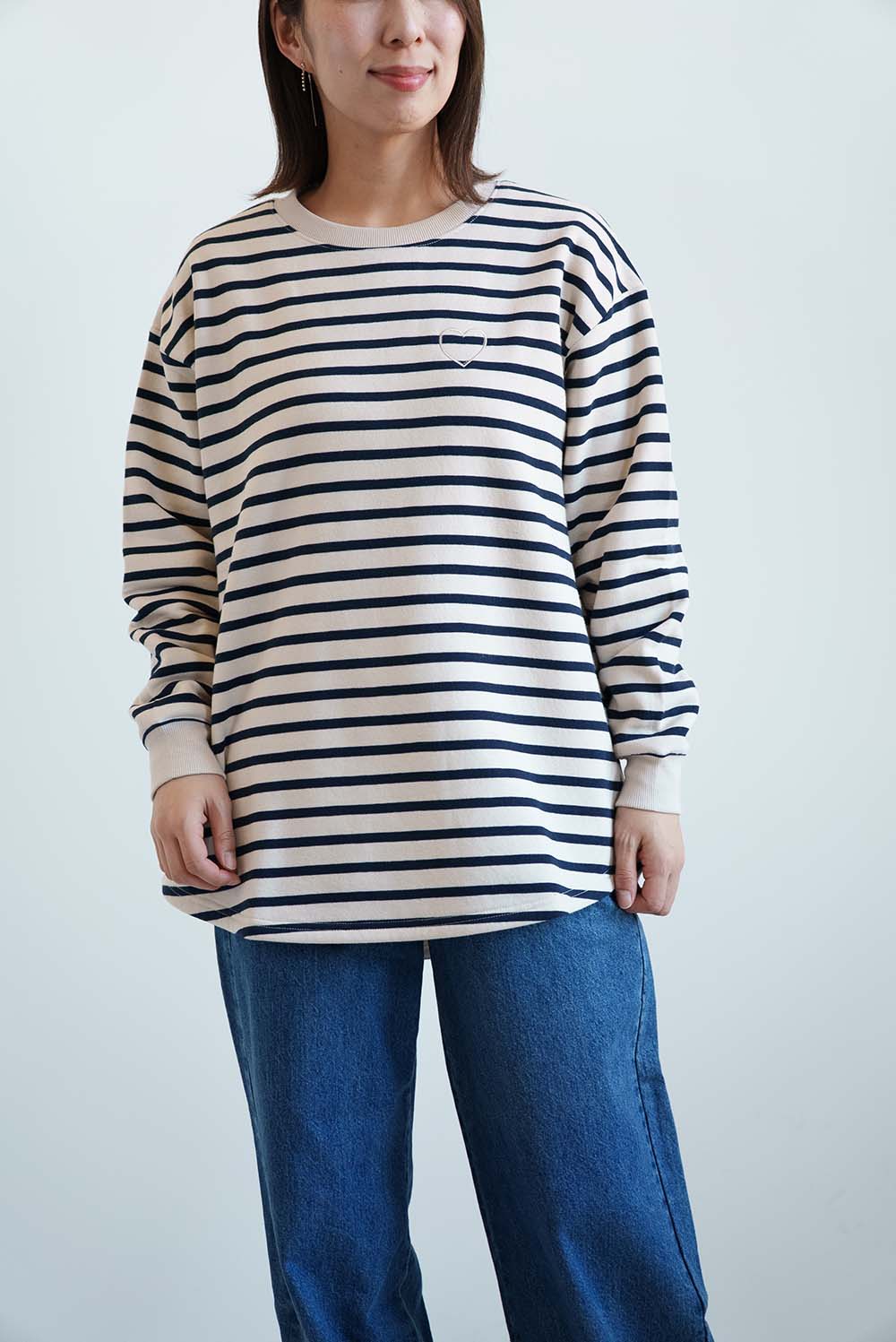 左胸にさりげないハートモチーフをプラスした裏起毛プルオーバー。