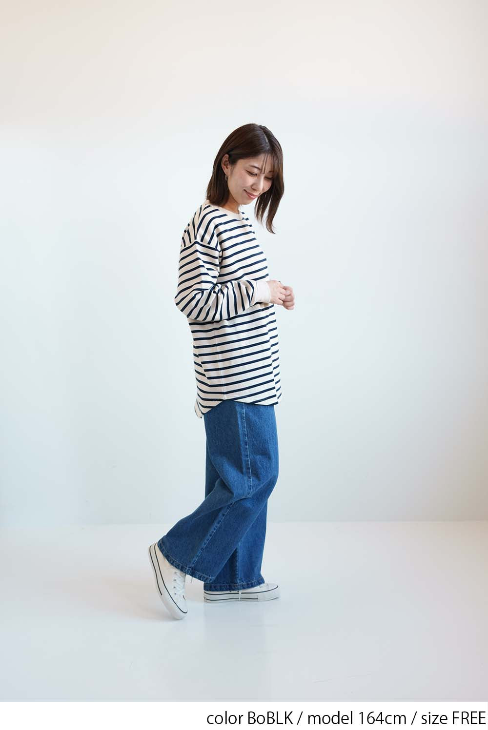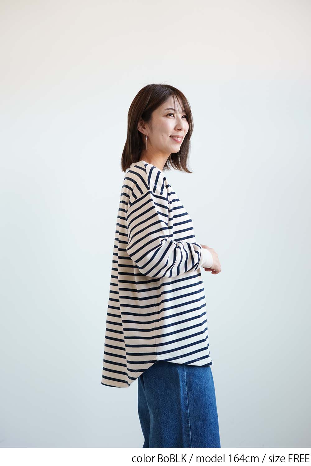 ゆったりとしたシルエットでリラックス感があり、デイリーに着やすい一枚です。