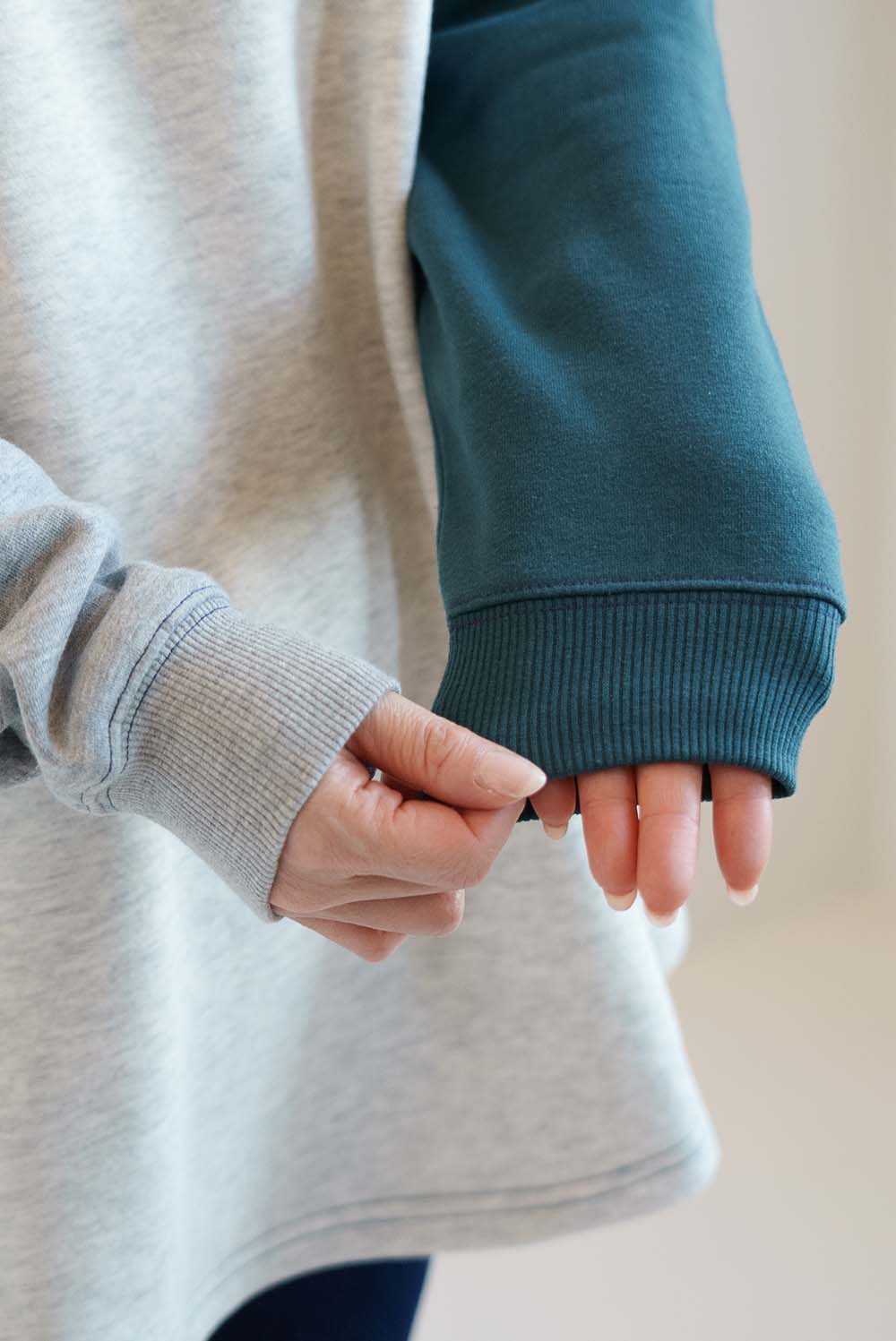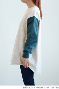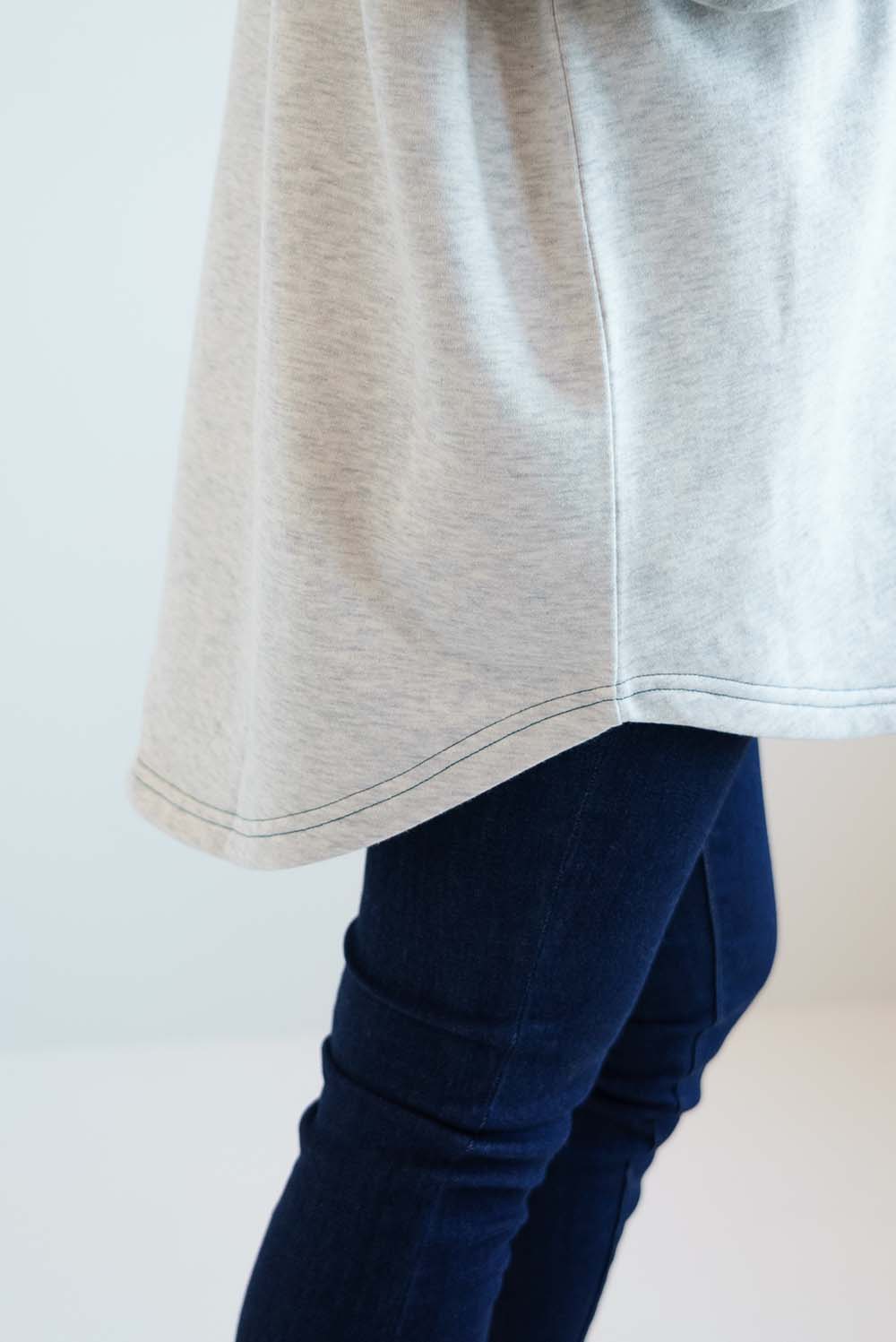 裾は前後差のあるラウンドヘム仕様で、腰まわりを自然にカバーしつつ、動きのあるシルエットに。