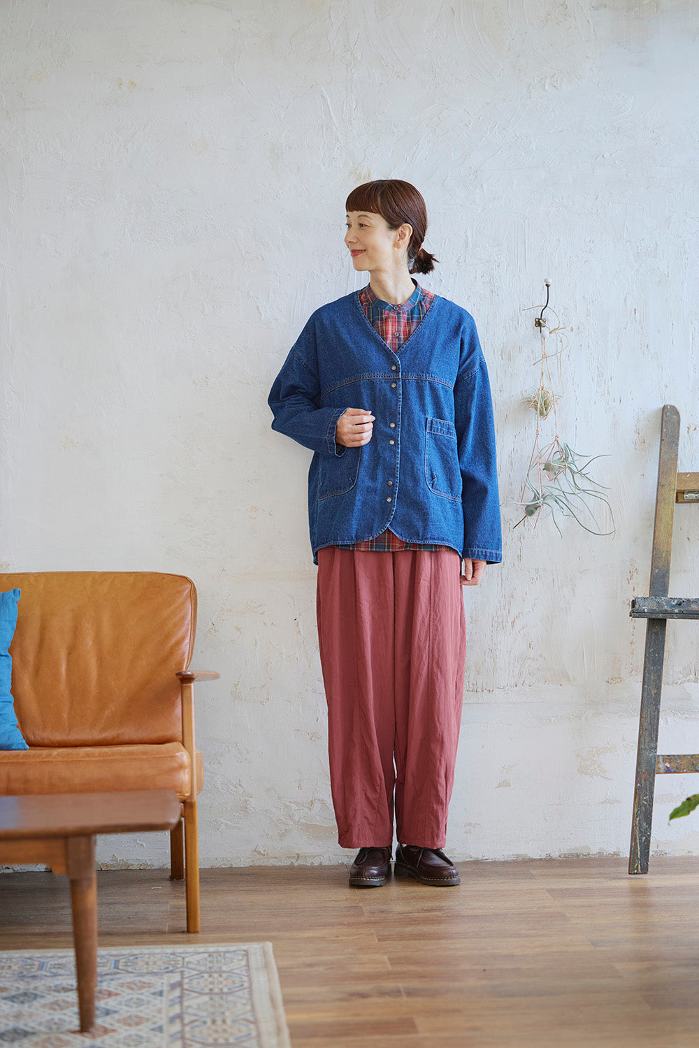 ゆったりとしたシルエットで重ねやすく、季節の変わり目の羽織として重宝します。