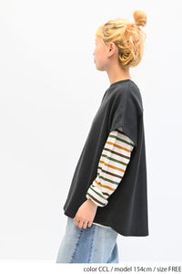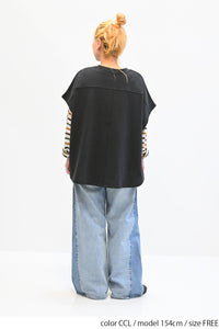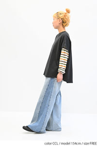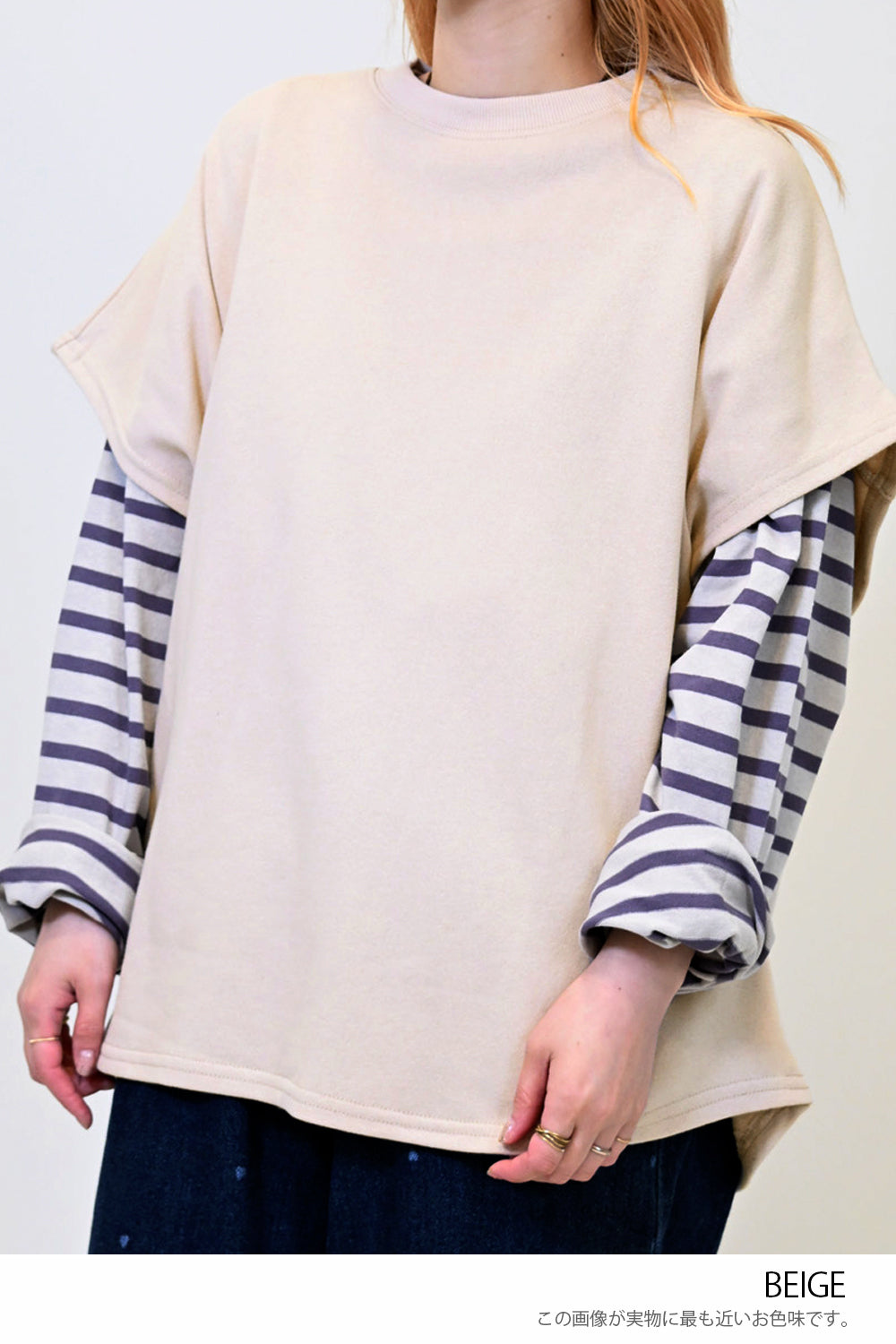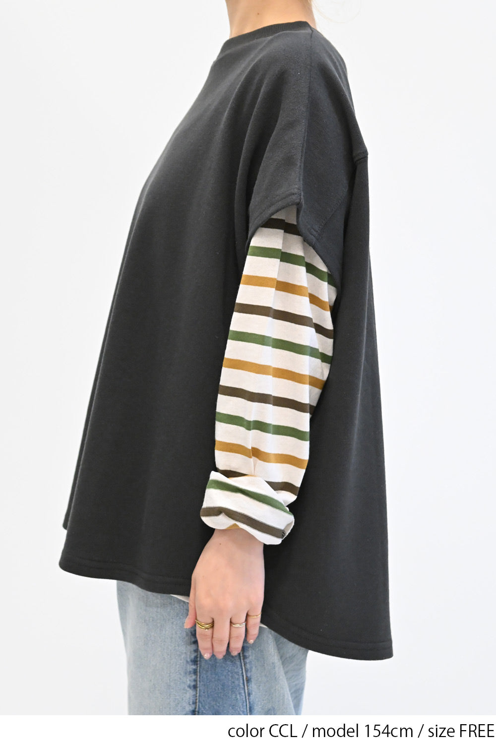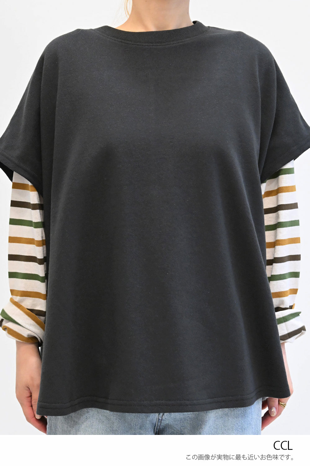 Tシャツやシャツ、ワンピースなど様々なインナーとレイヤードしていただけます。