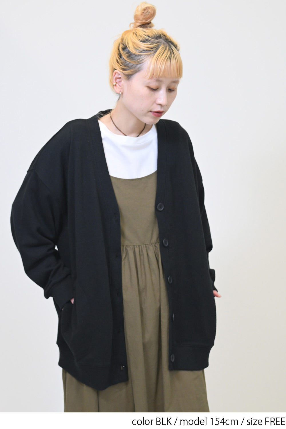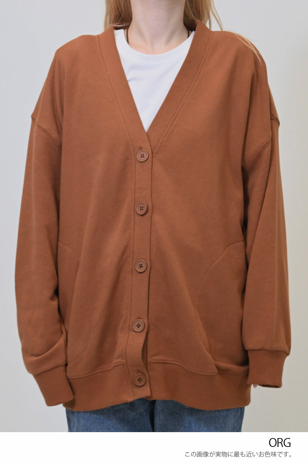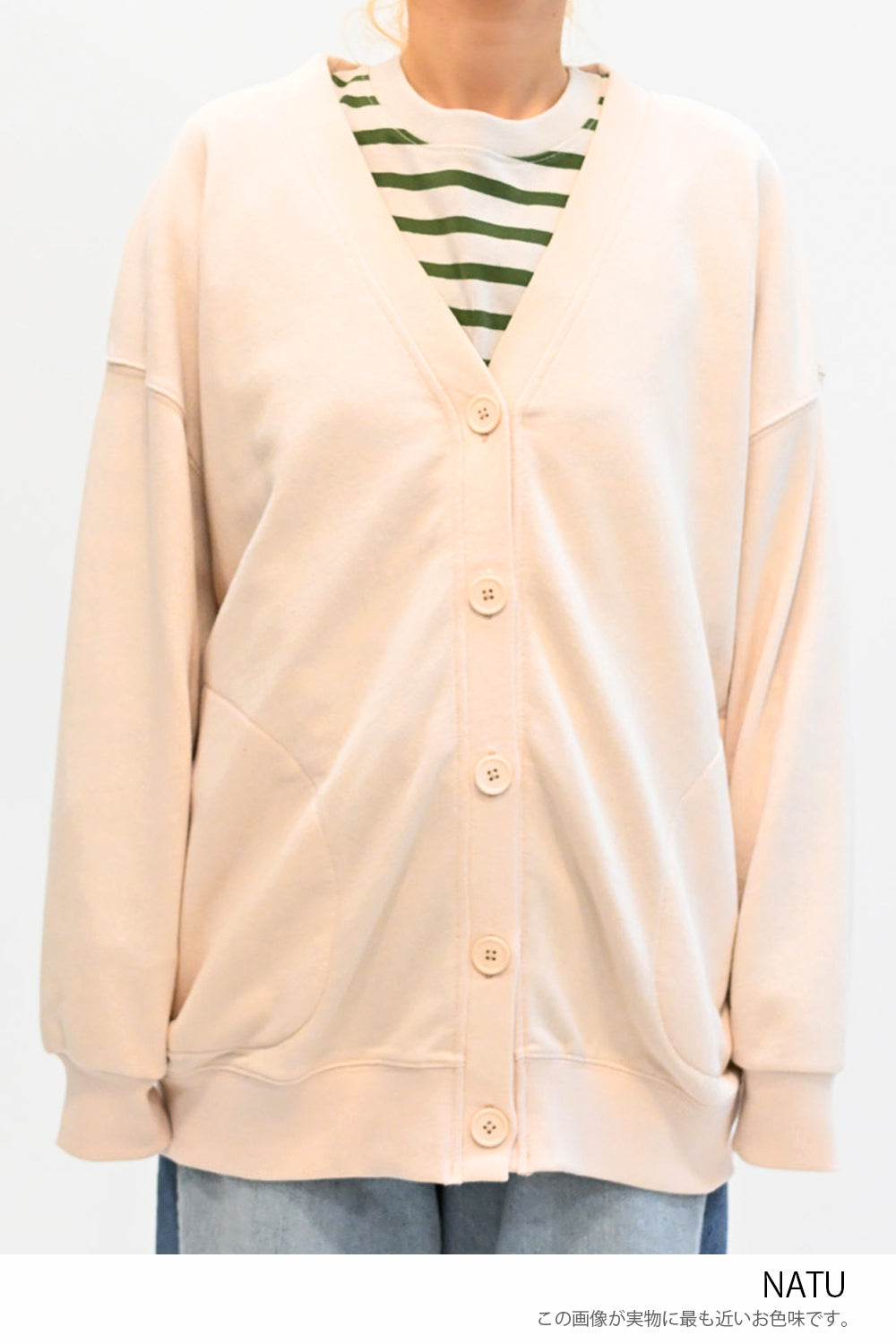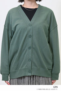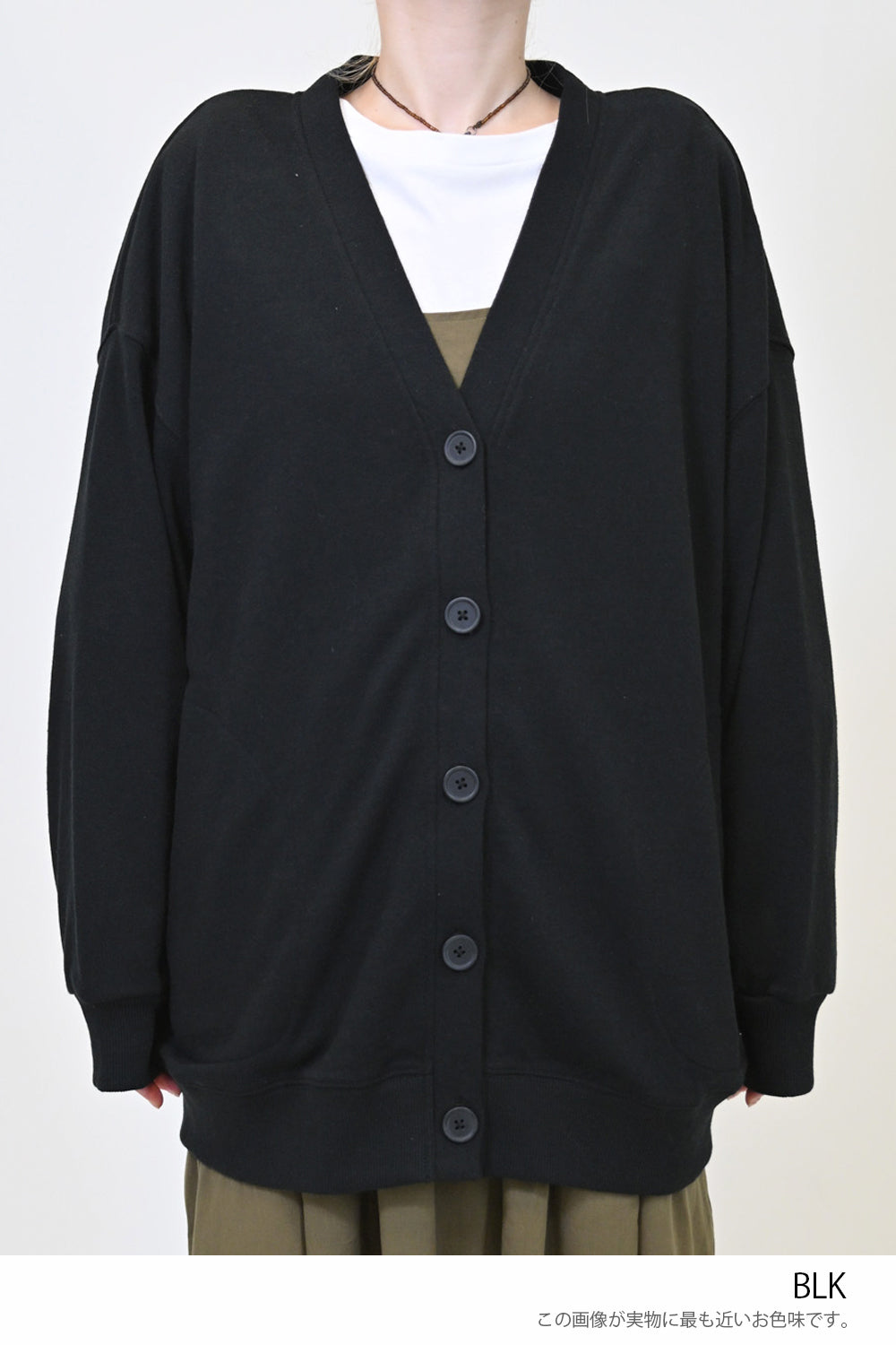 シンプルなデザインで汎用性が高く、 様々なスタイルに合わせられる裏毛カーディガンです。
