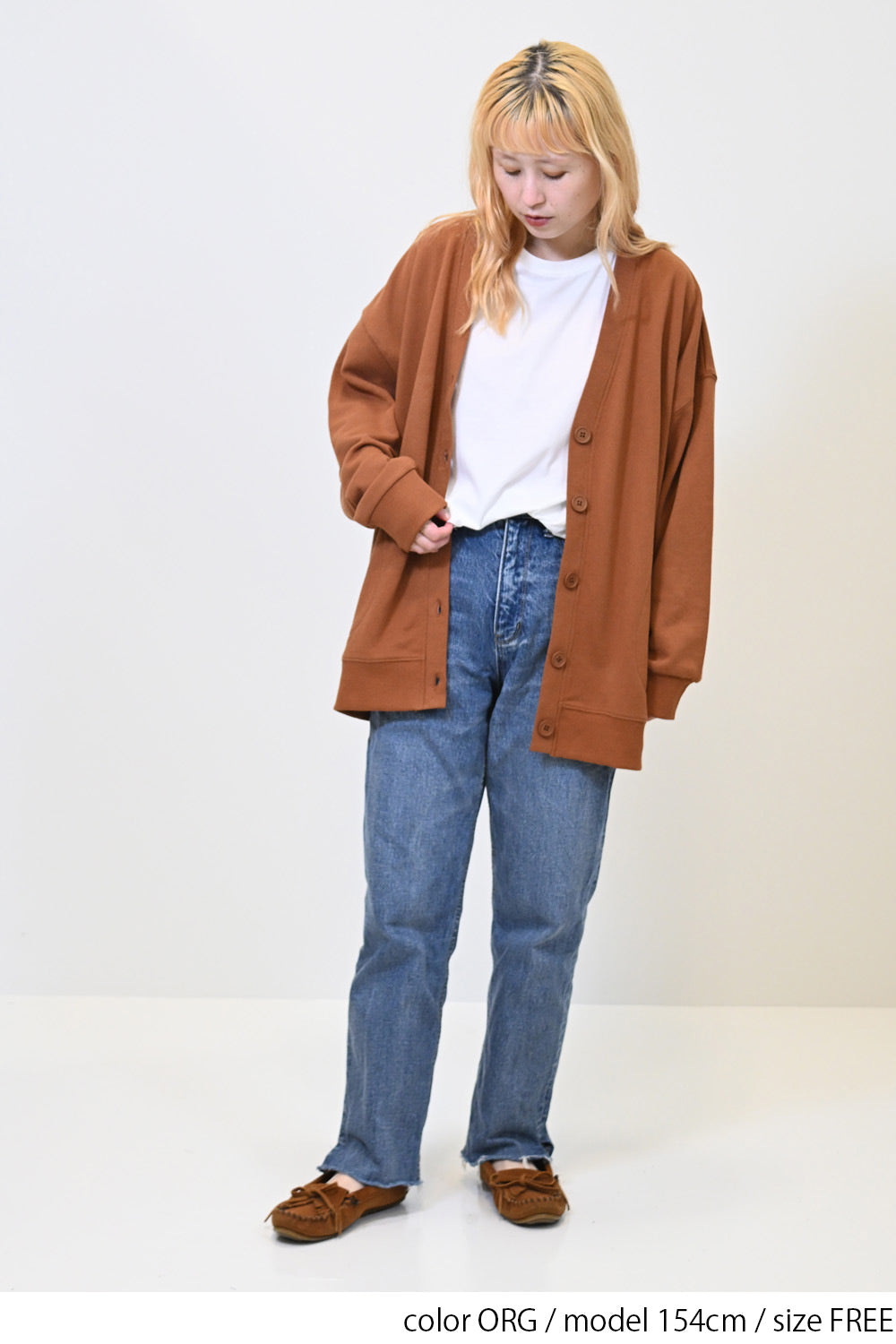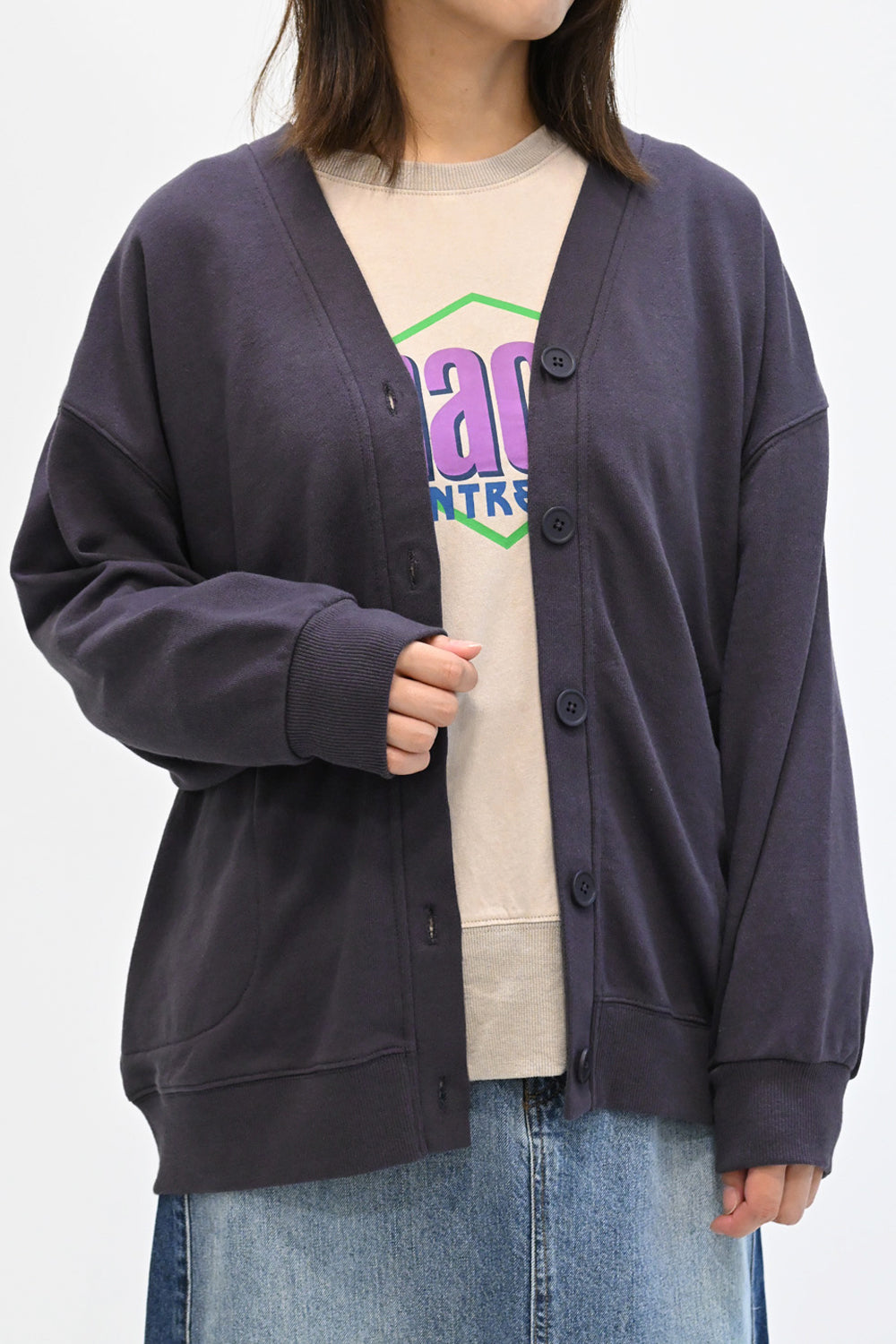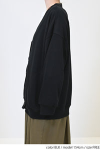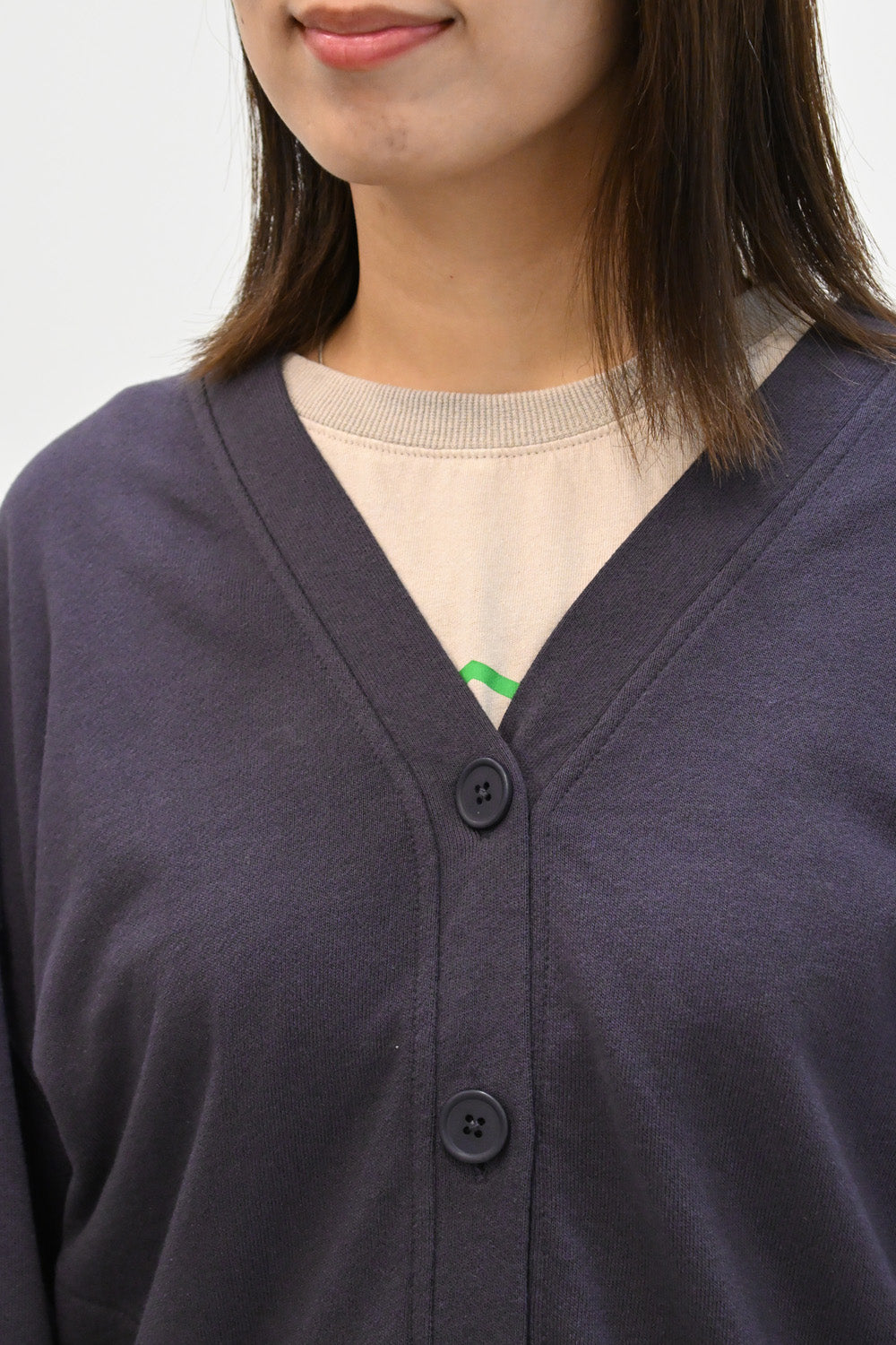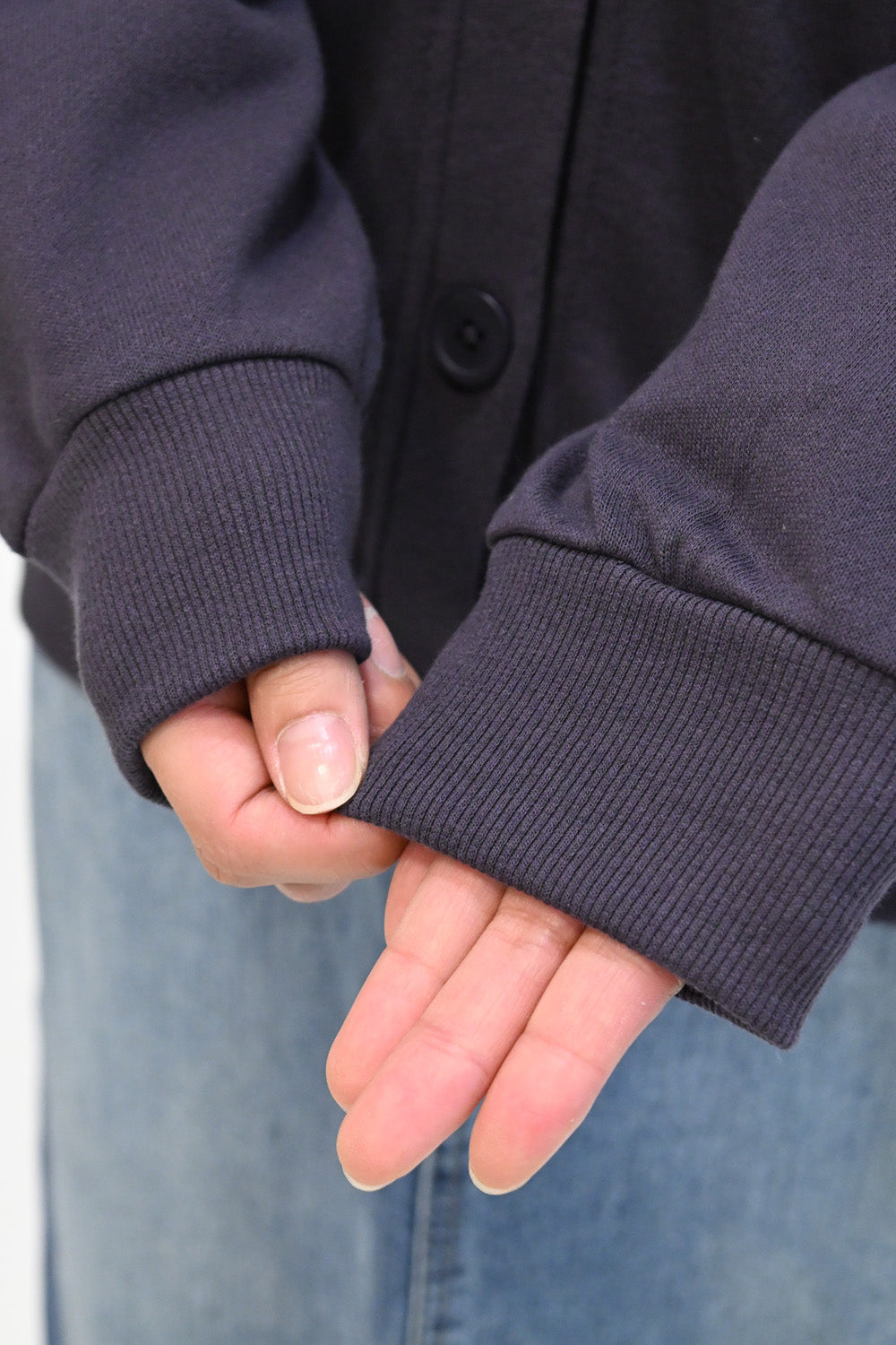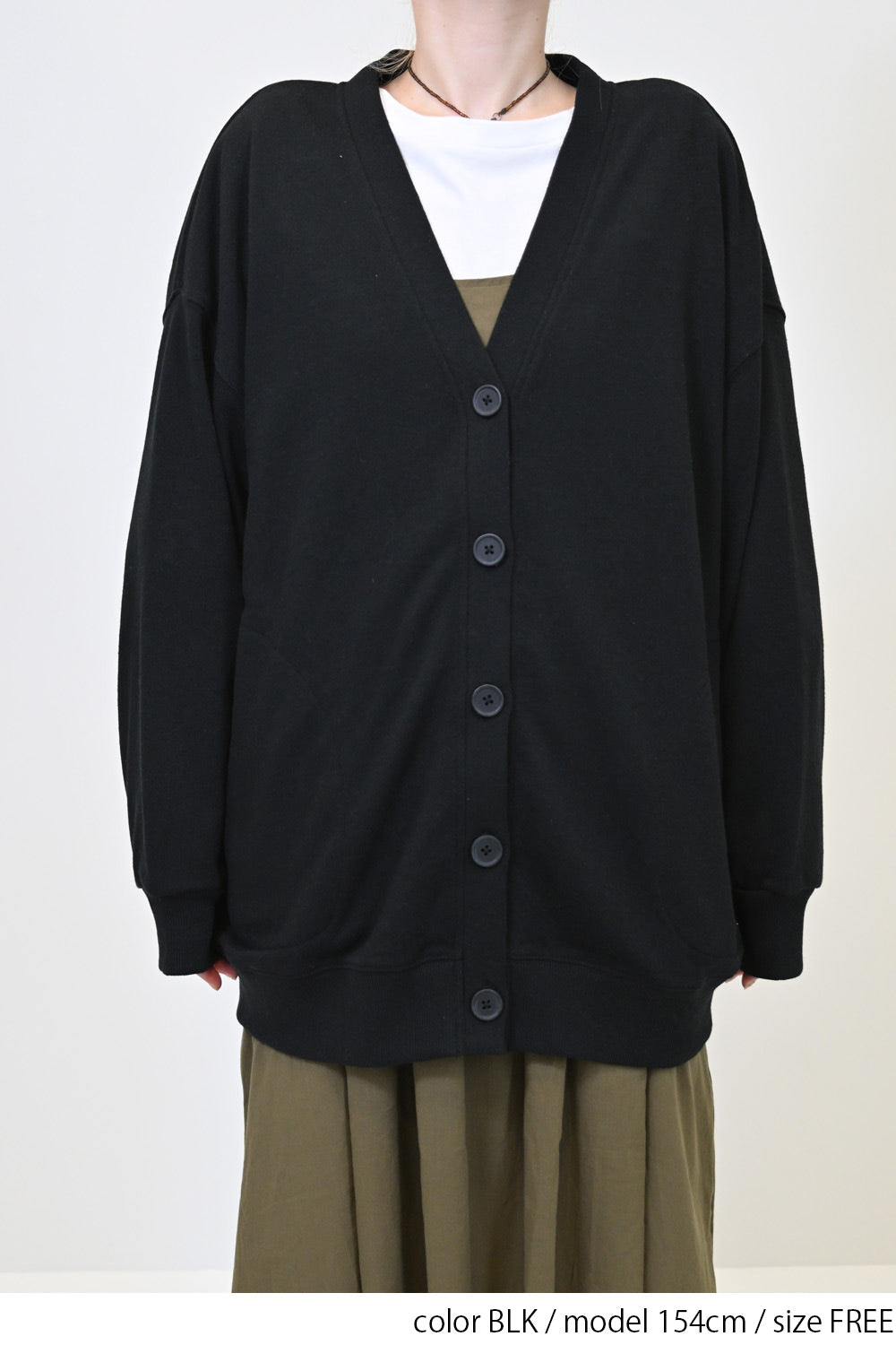 シンプルなデザインで汎用性が高く、 様々なスタイルに合わせられる裏毛カーディガンです。
