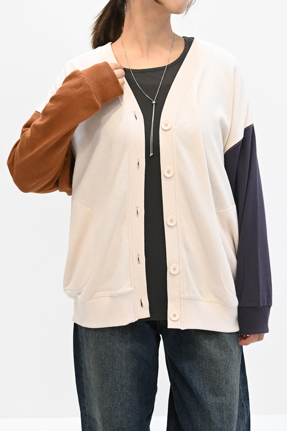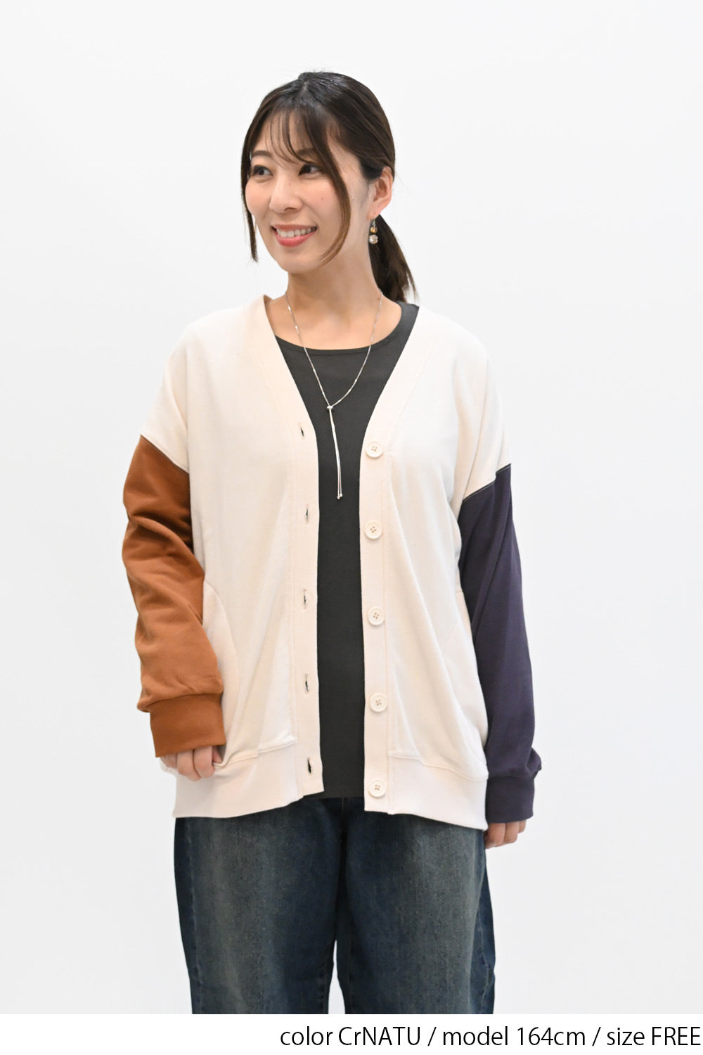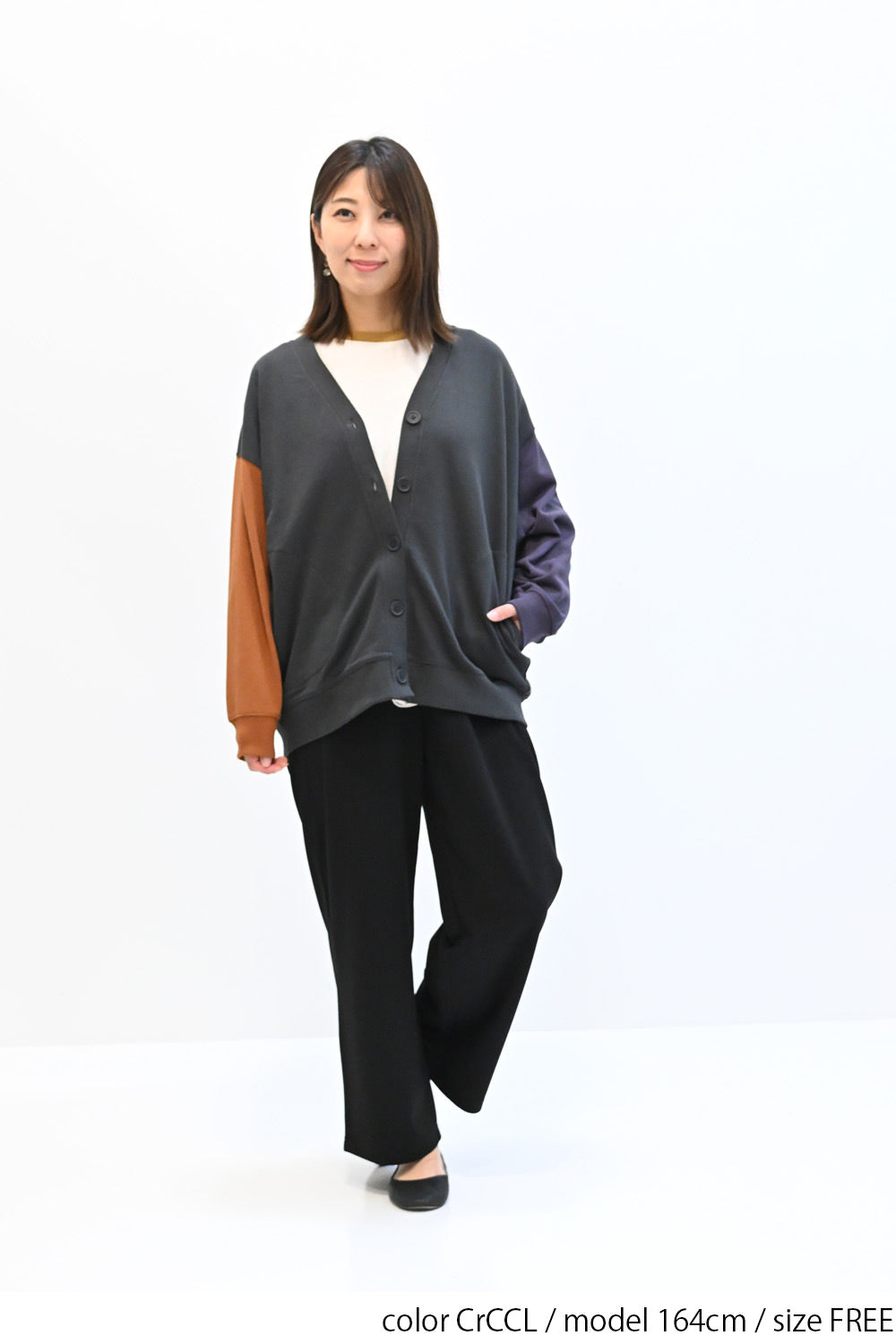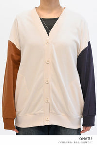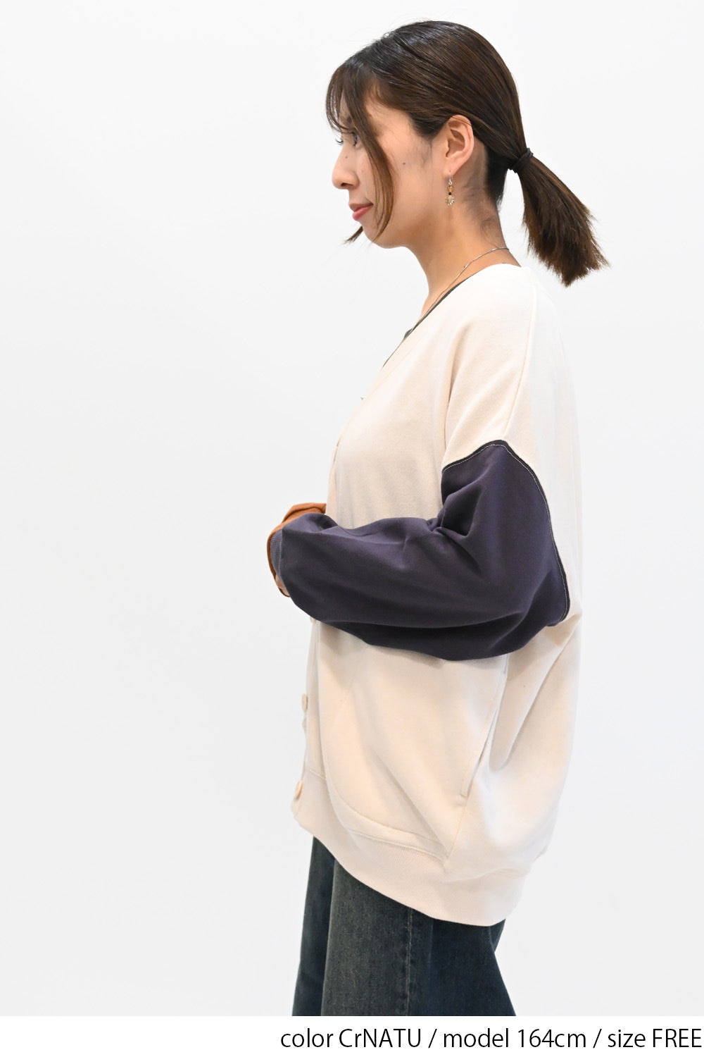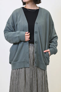 シンプルなデザインで汎用性が高く、 様々なスタイルに合わせられる裏毛カーディガンです。