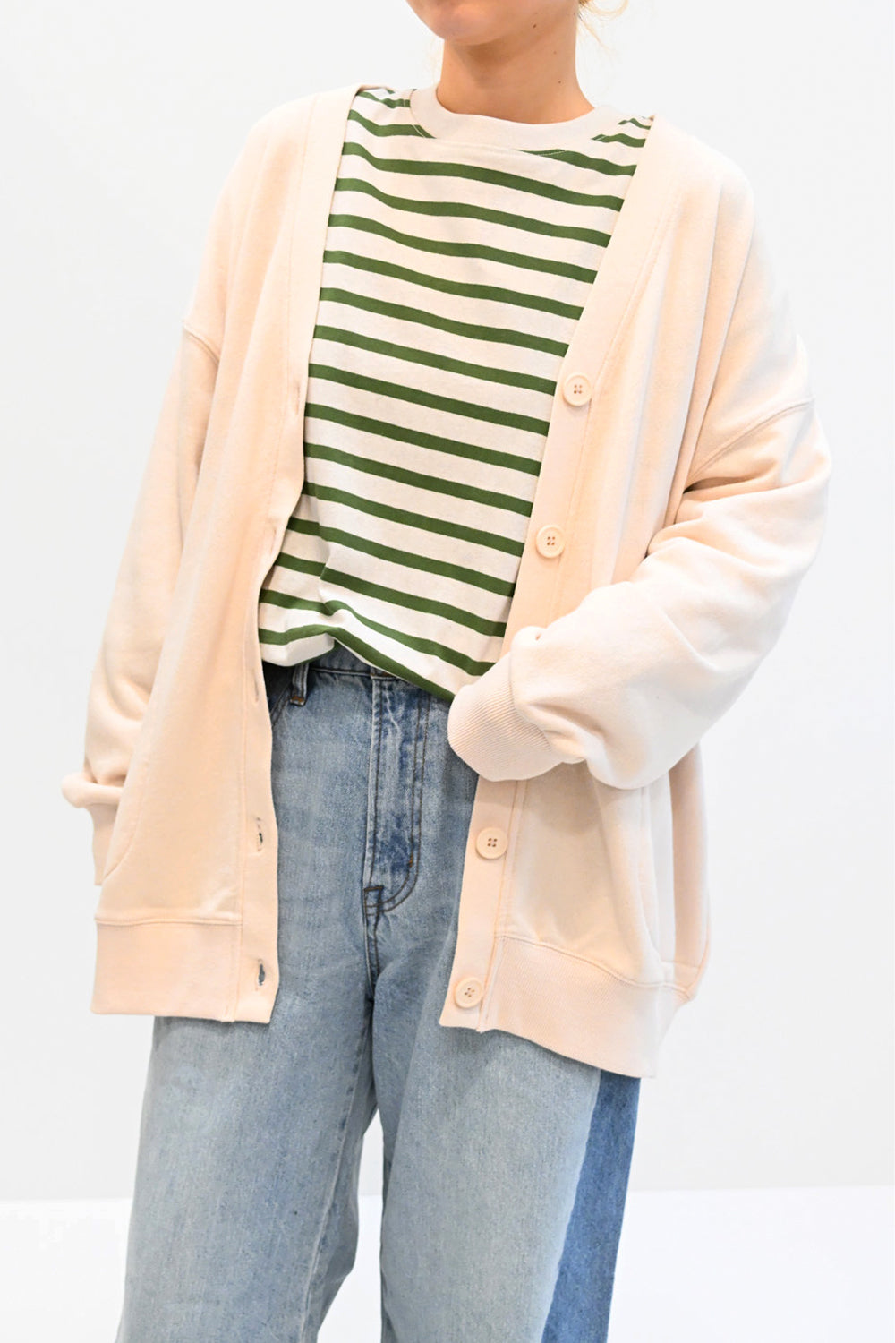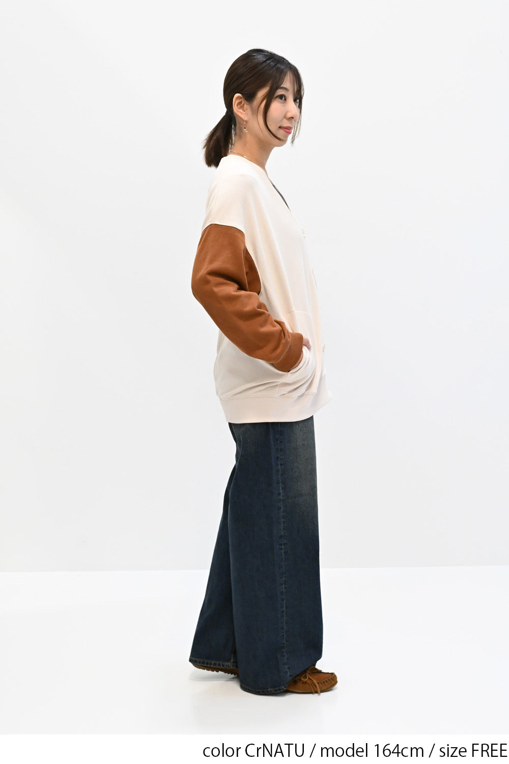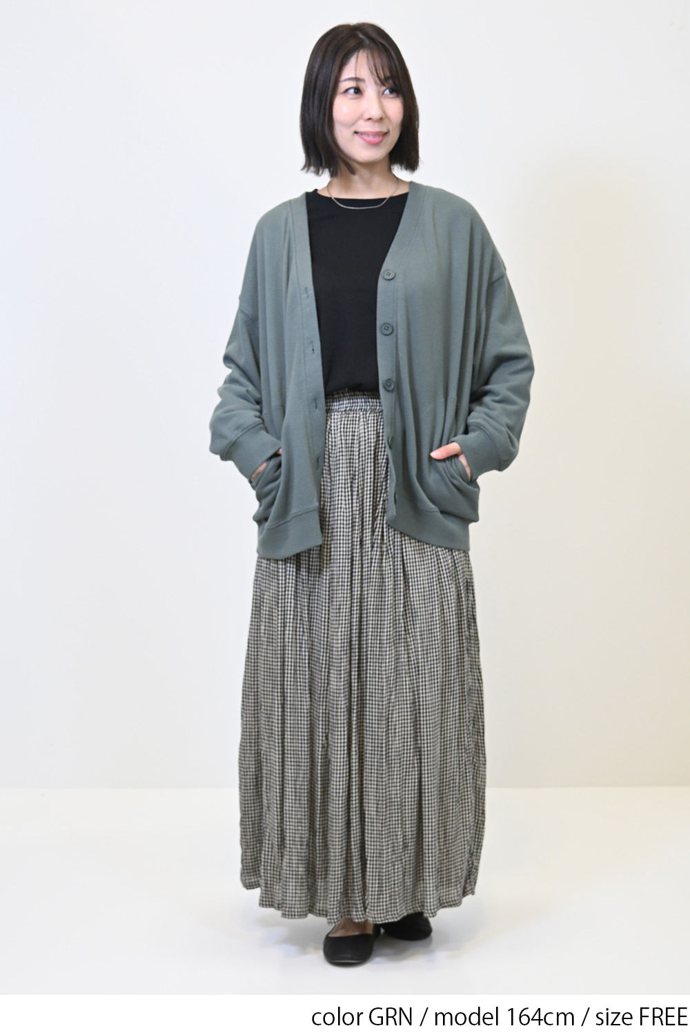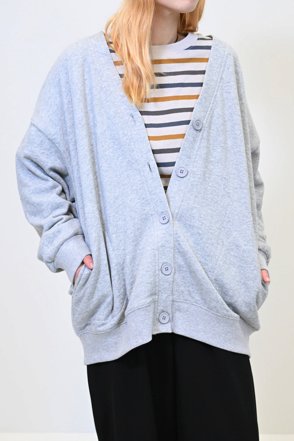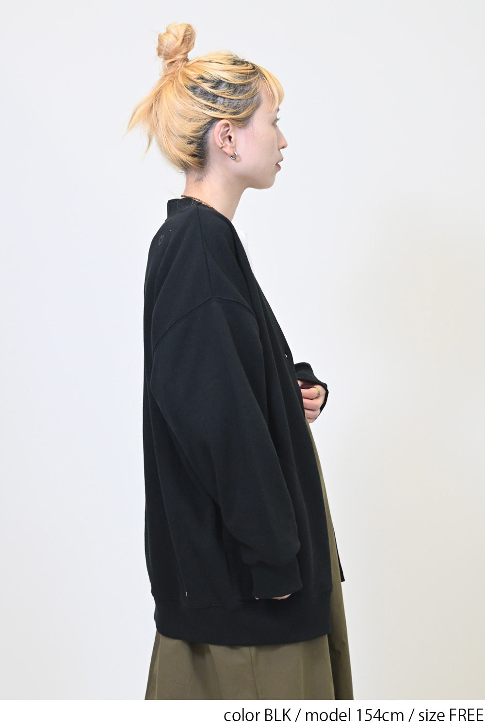 シンプルなデザインで汎用性が高く、 様々なスタイルに合わせられる裏毛カーディガンです。
