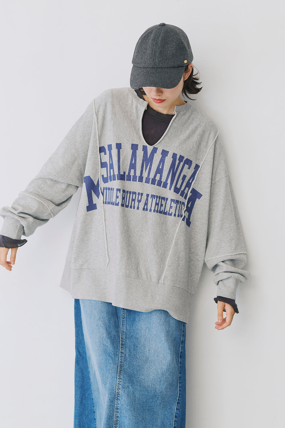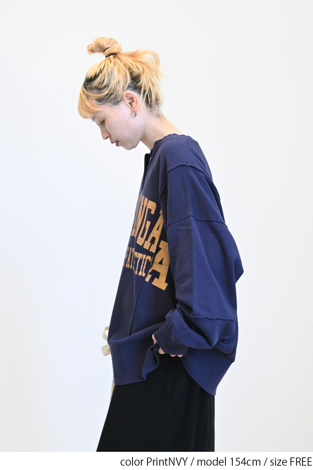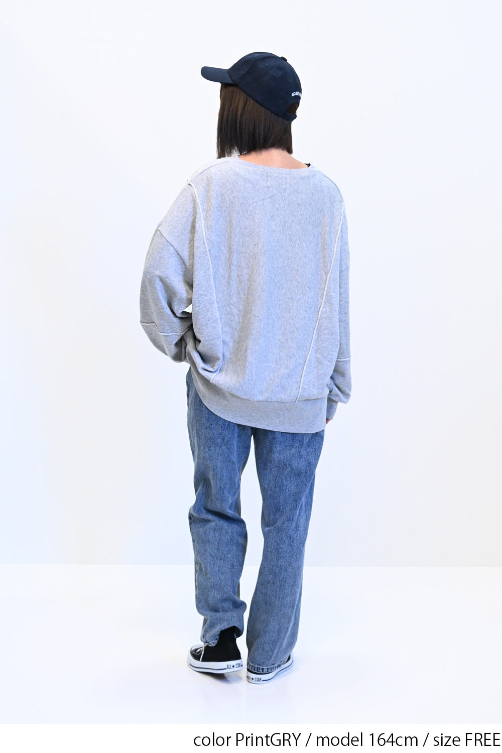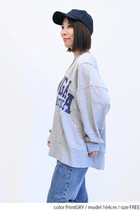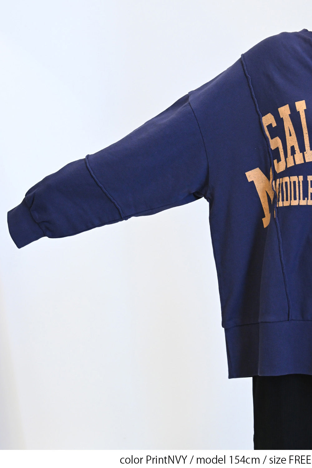フロントはロゴプリント部分をあえてずらして切り替え、遊び心のあるデザインに。