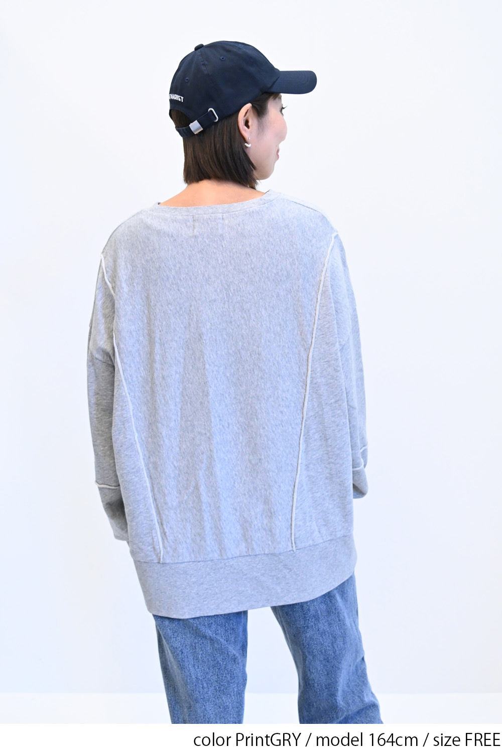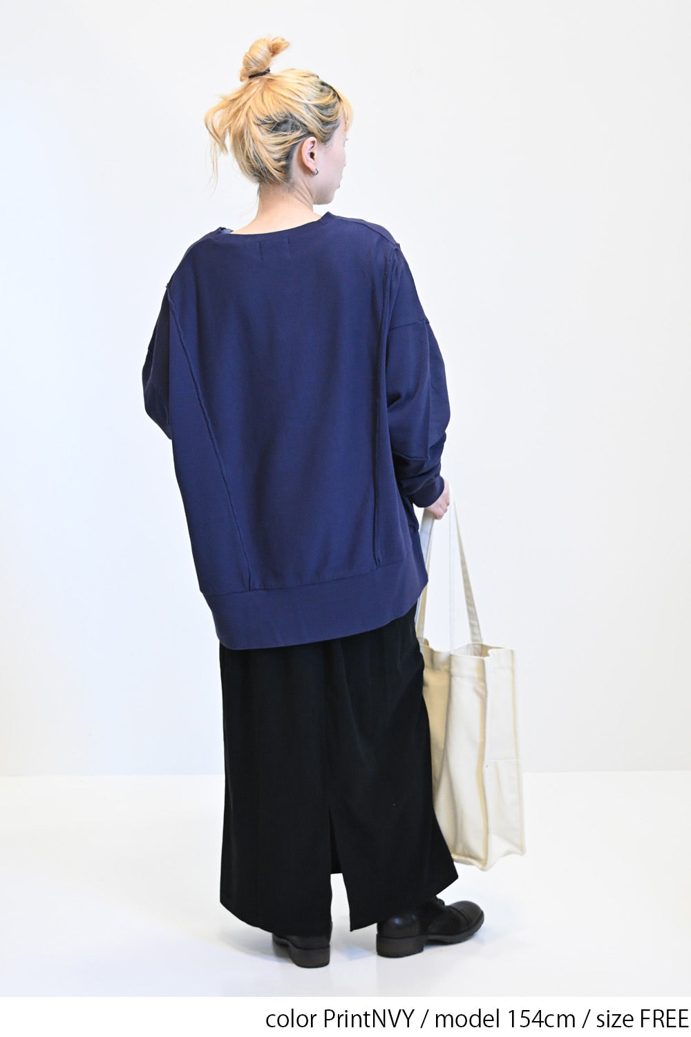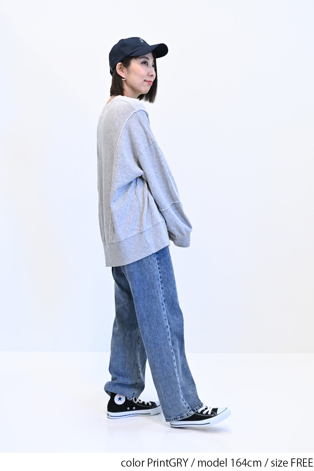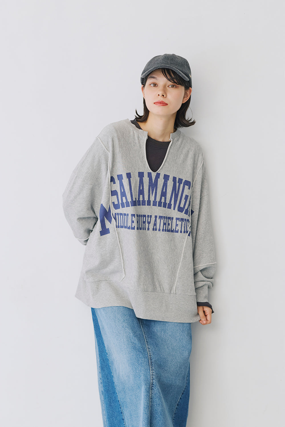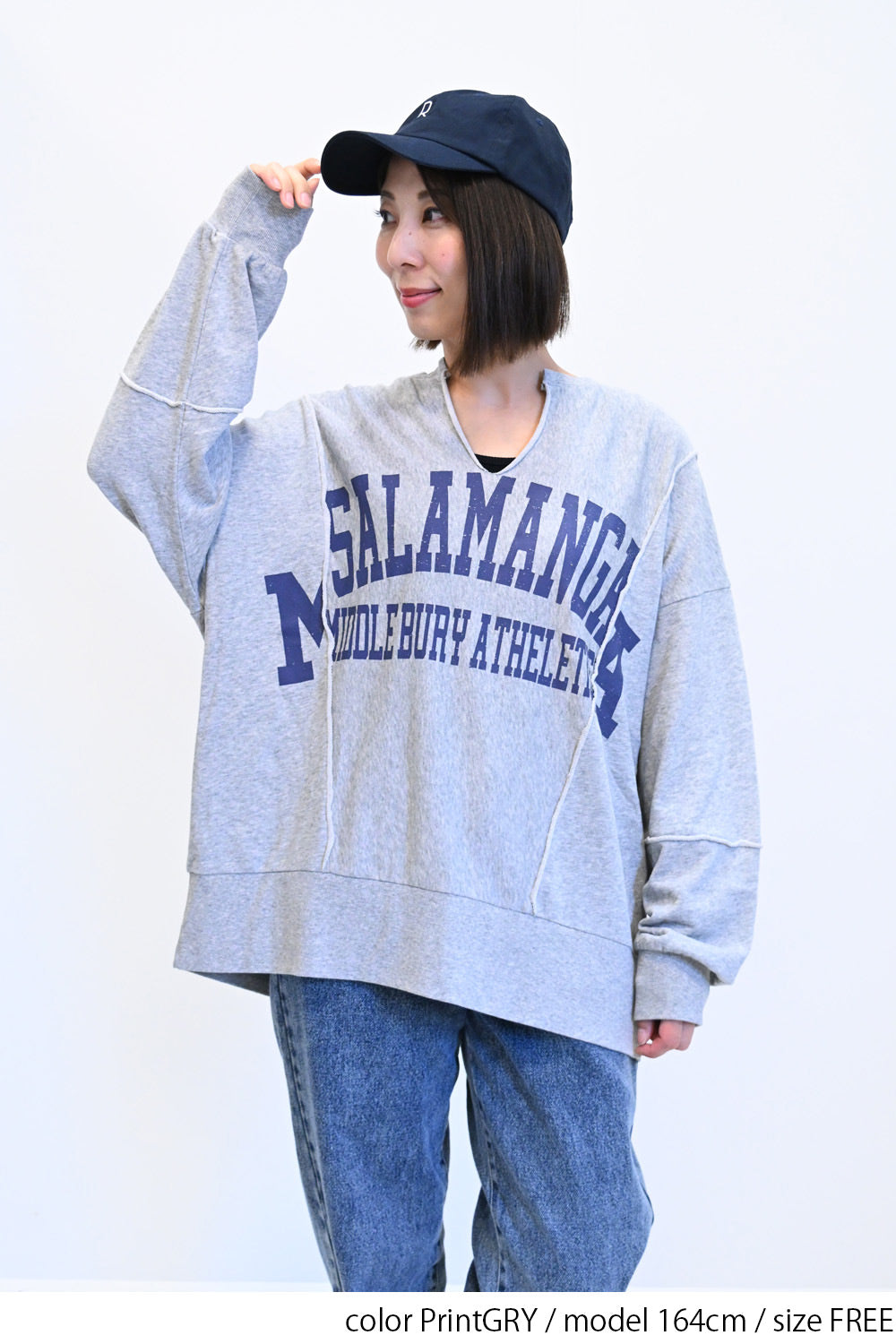 フロントはロゴプリント部分をあえてずらして切り替え、遊び心のあるデザインに。