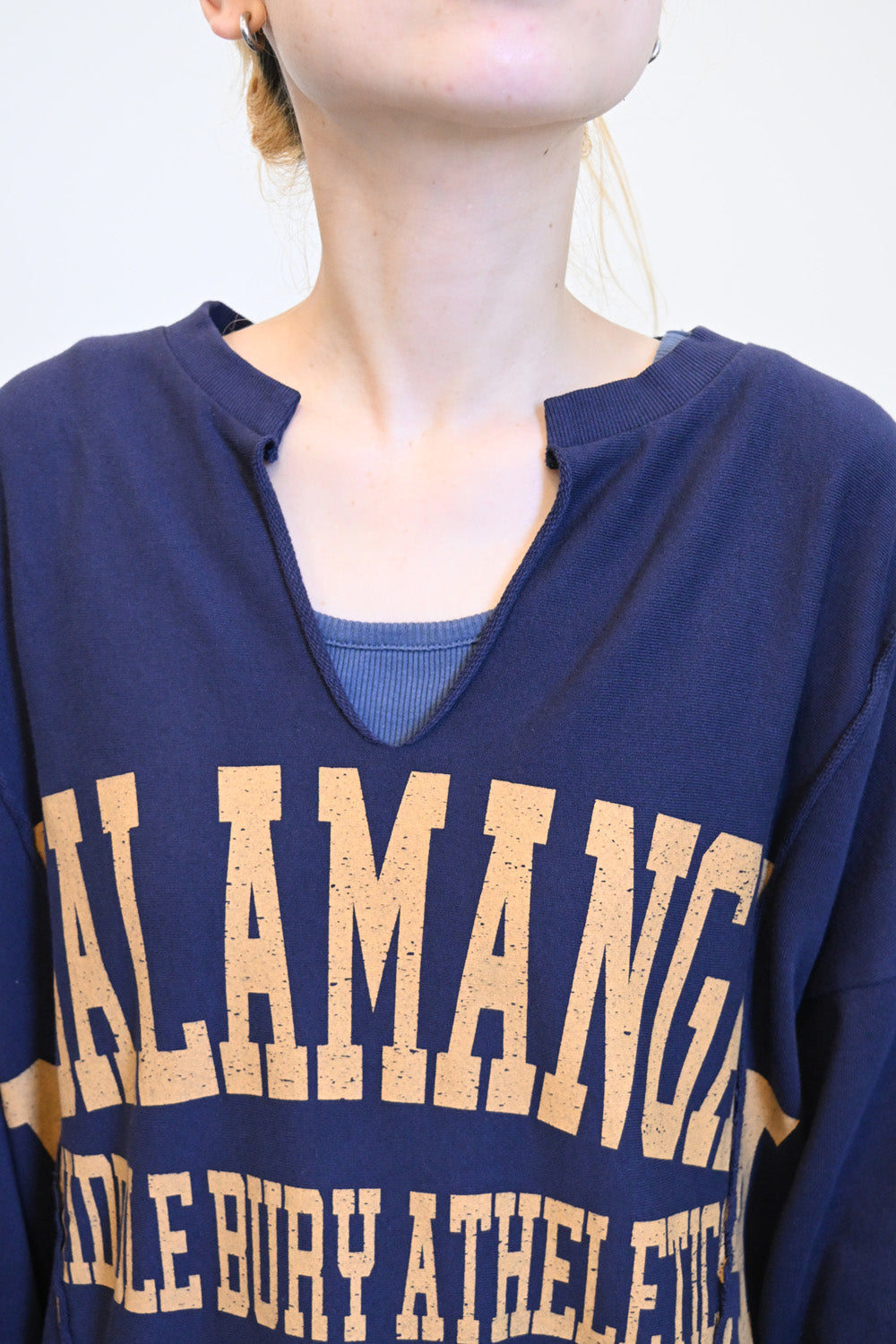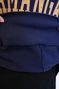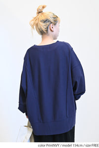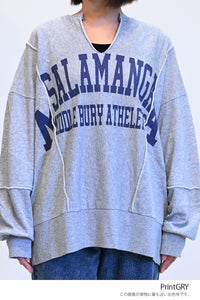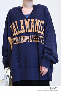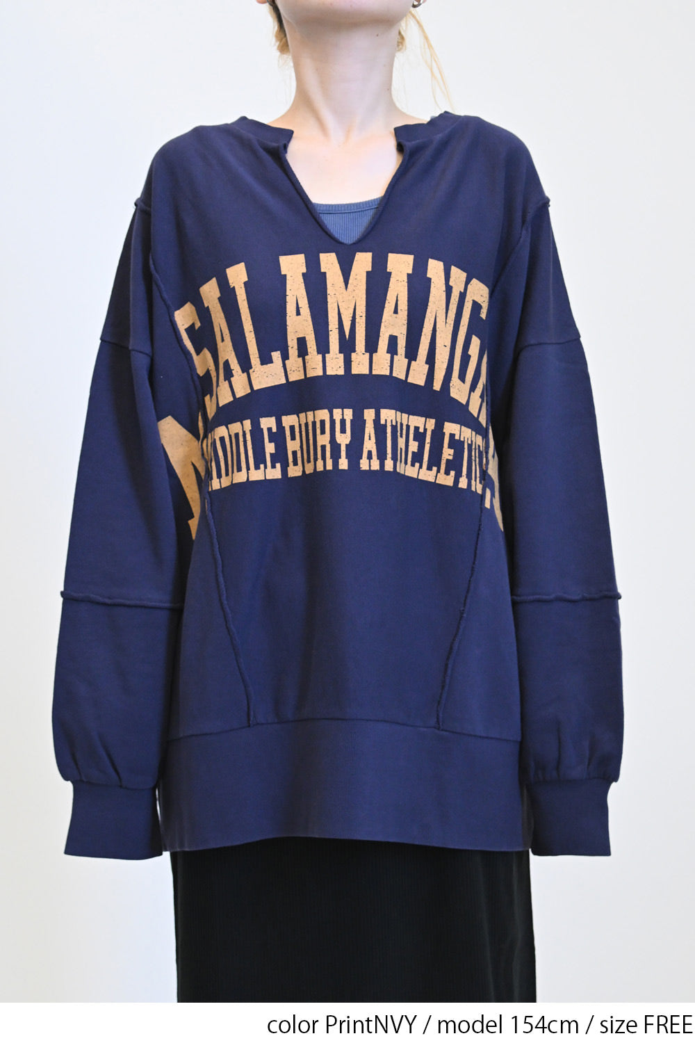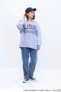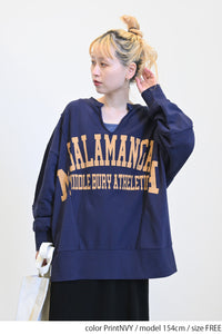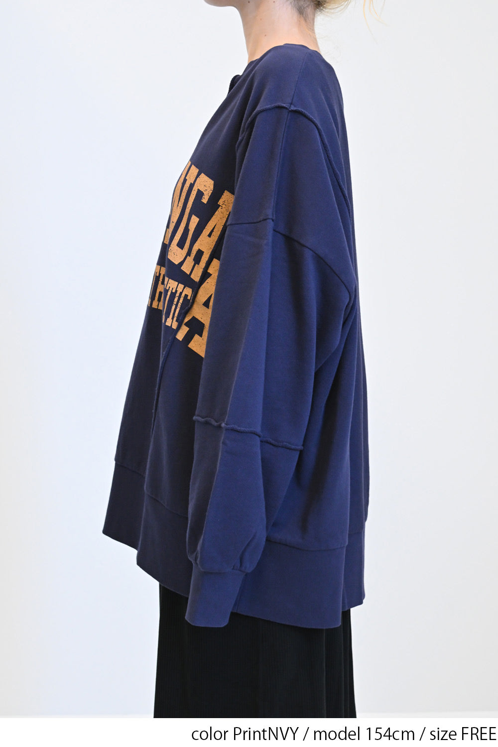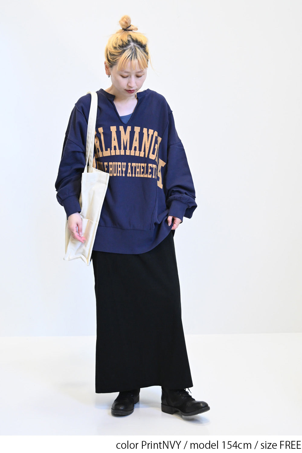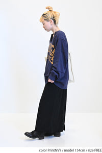 フロントはロゴプリント部分をあえてずらして切り替え、遊び心のあるデザインに。