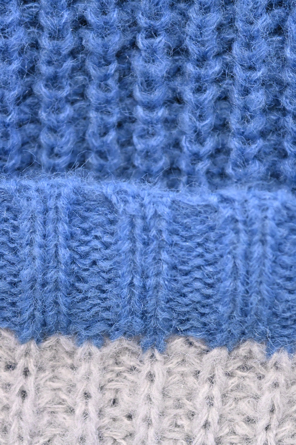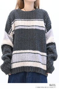 存在感のある配色と、袖部分のポコポコとした編地が可愛らしいアクセントになっています。