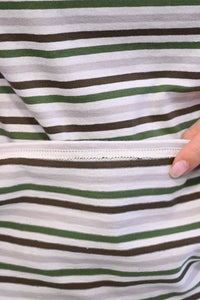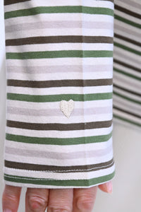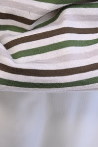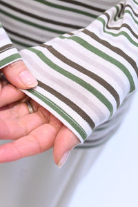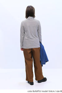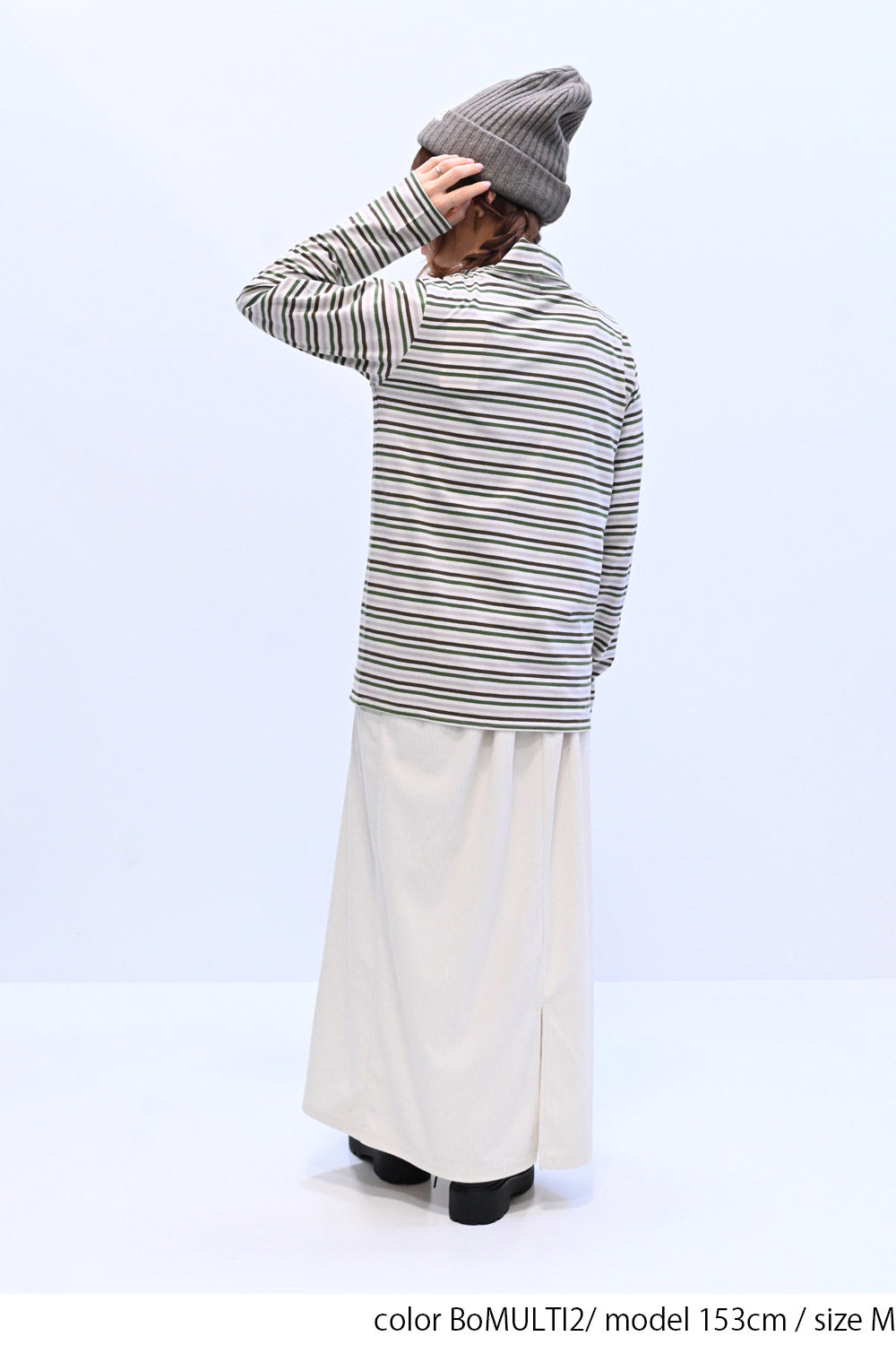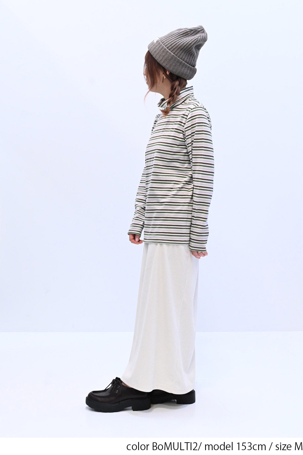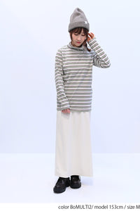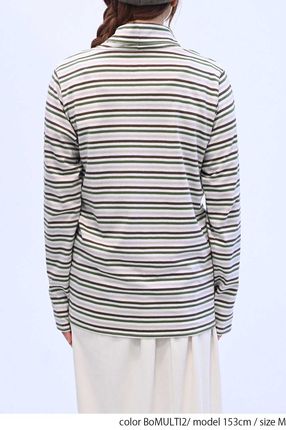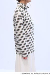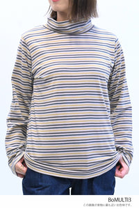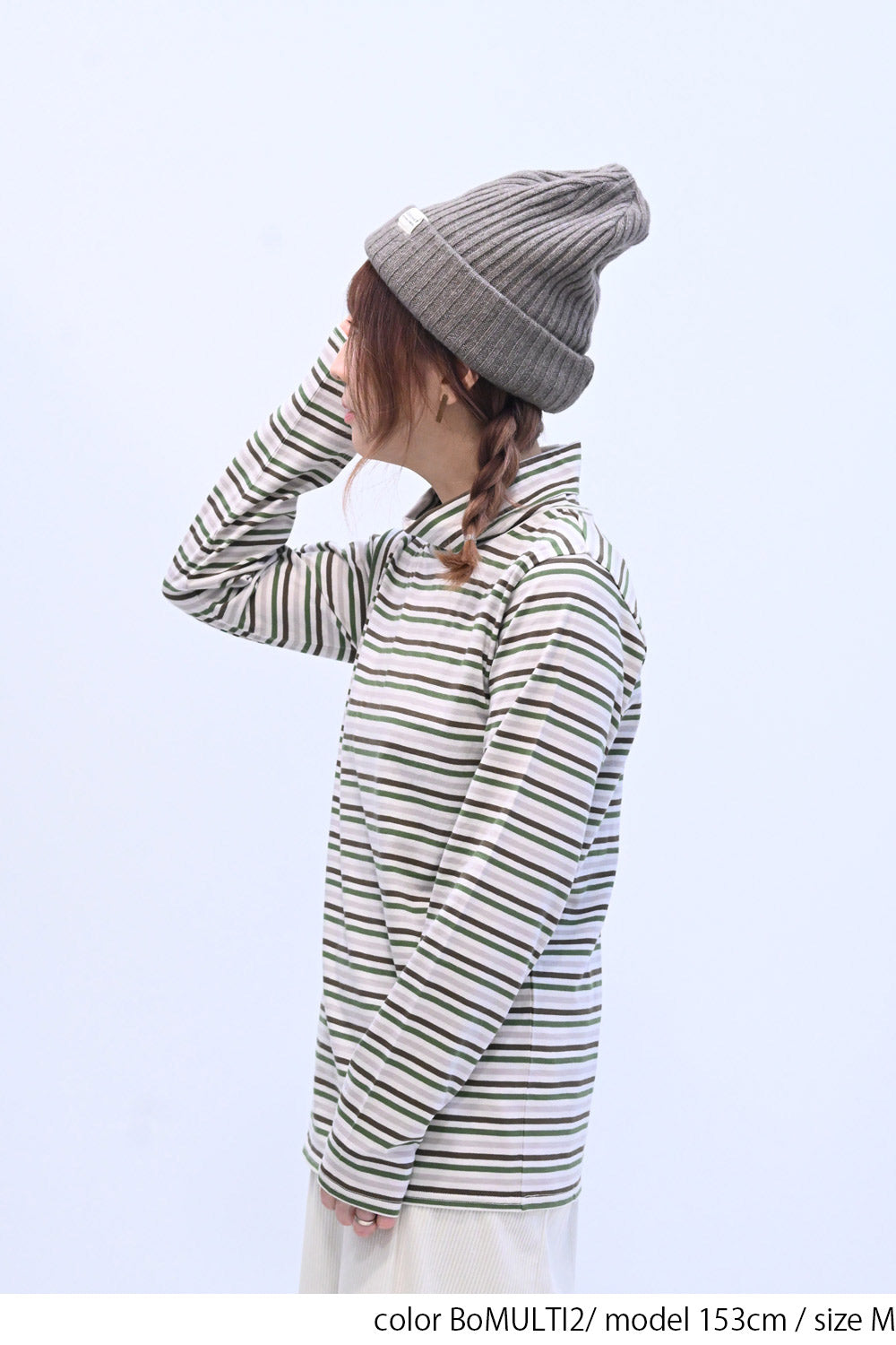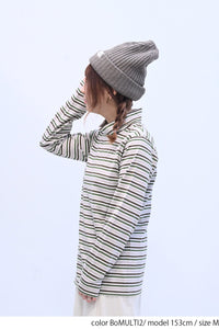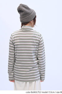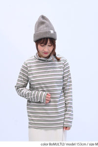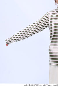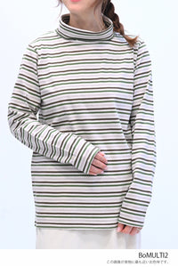 シンプルなボーダー柄ながら、一枚で着ても重ね着してもコーディネートのアクセントになります。他にはないこだわりの配色もポイント。