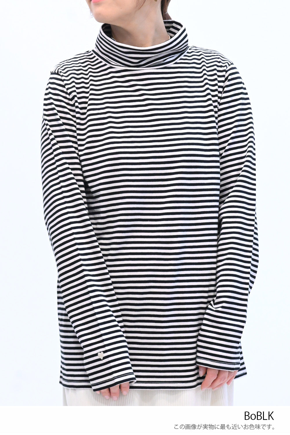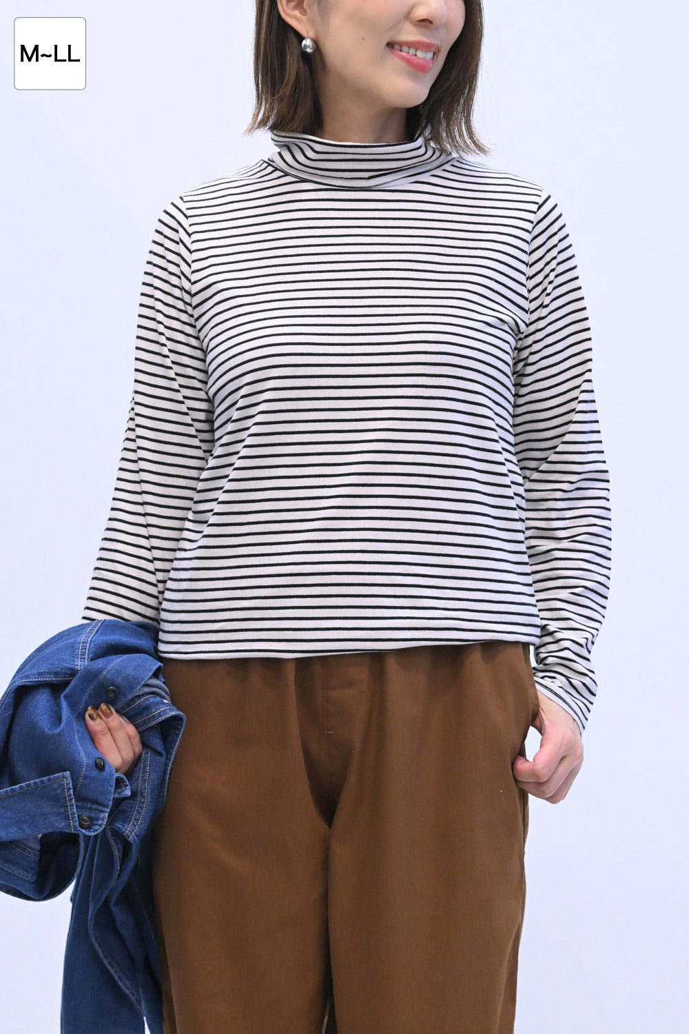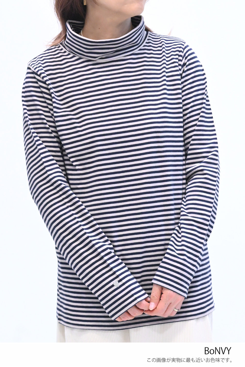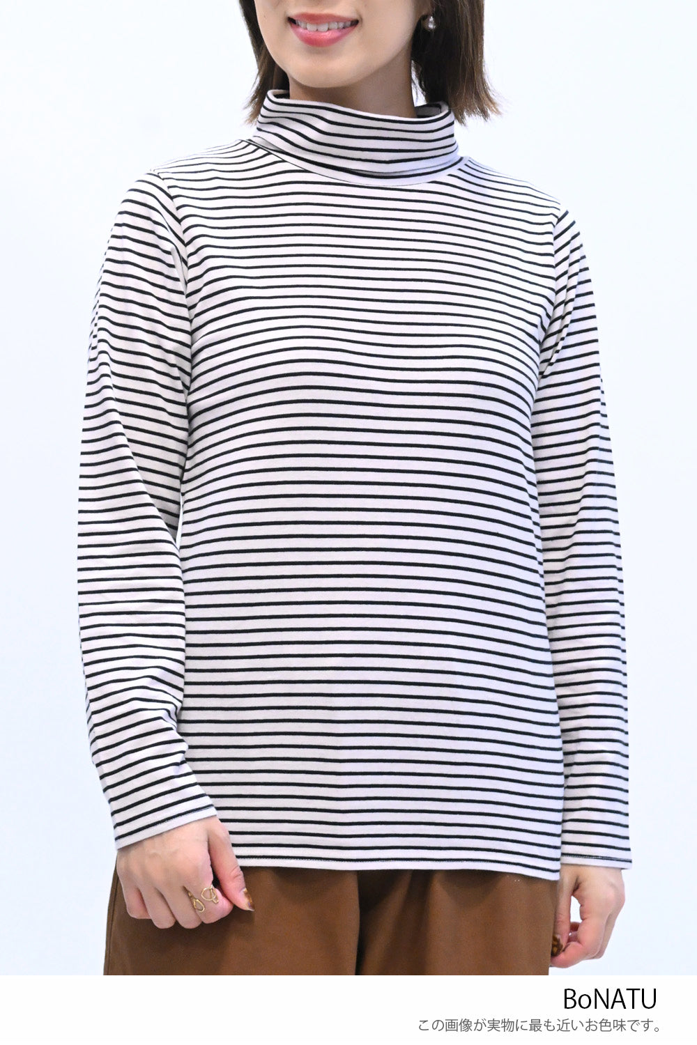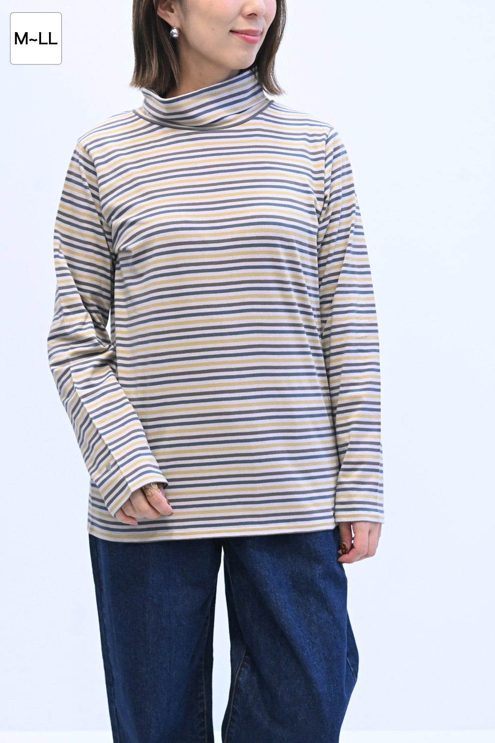 毎日のコーデに取り入れやすい、綿100%のボーダータートル。