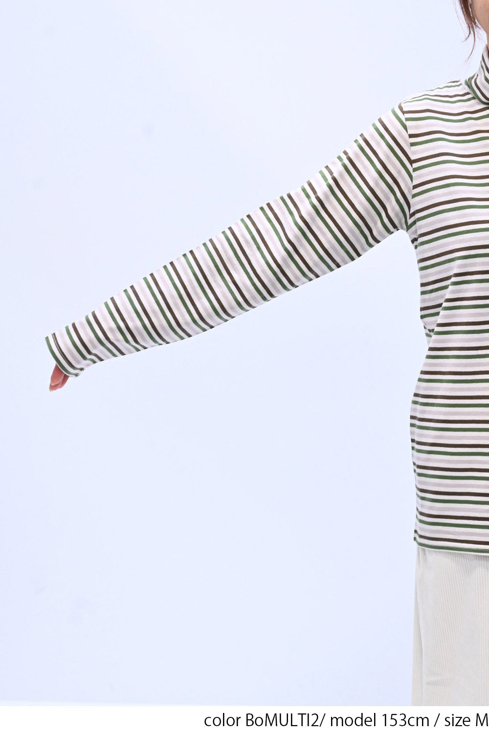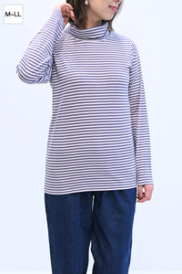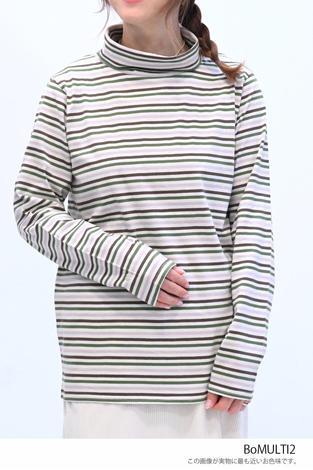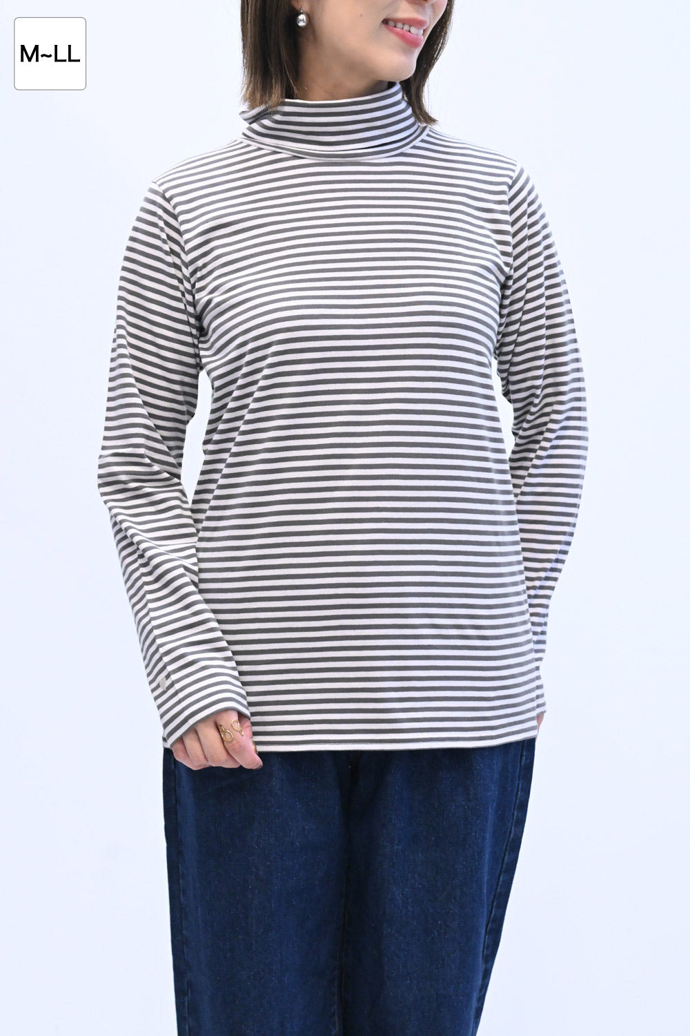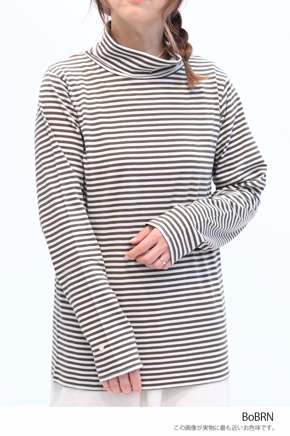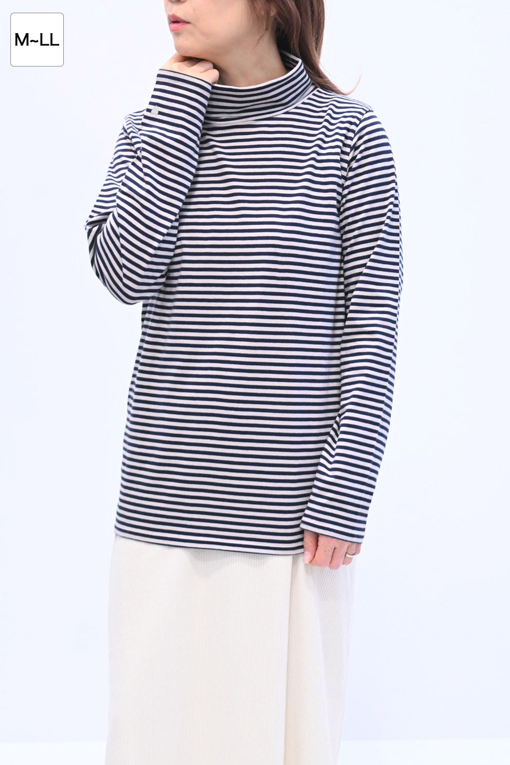 毎日のコーデに取り入れやすい、綿100%のボーダータートル。