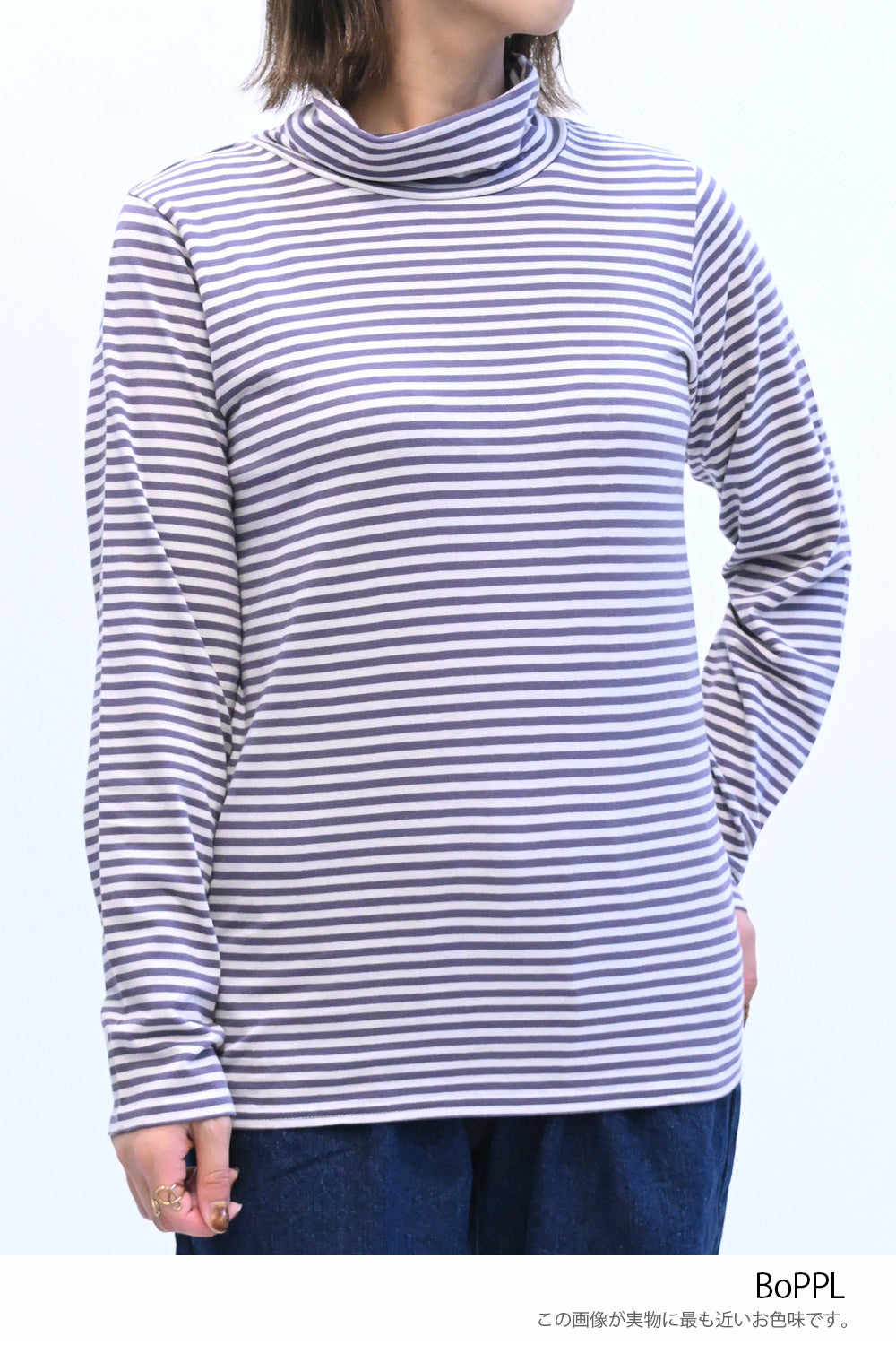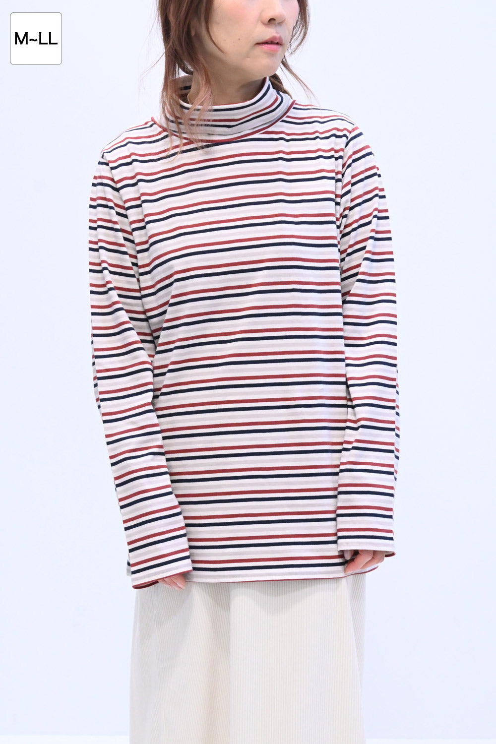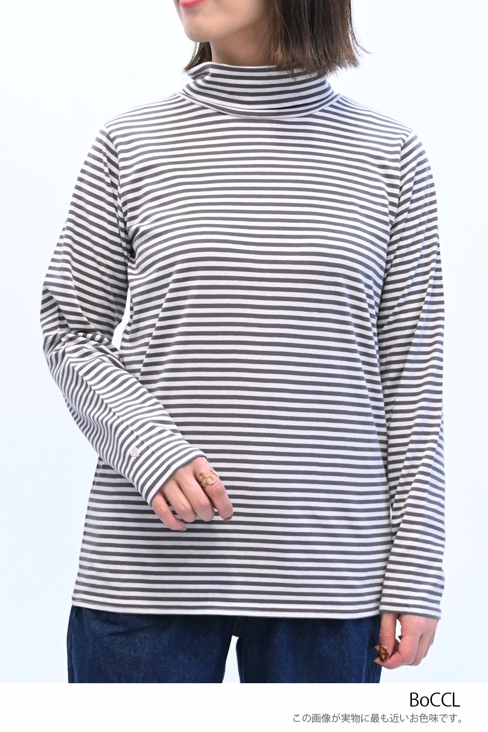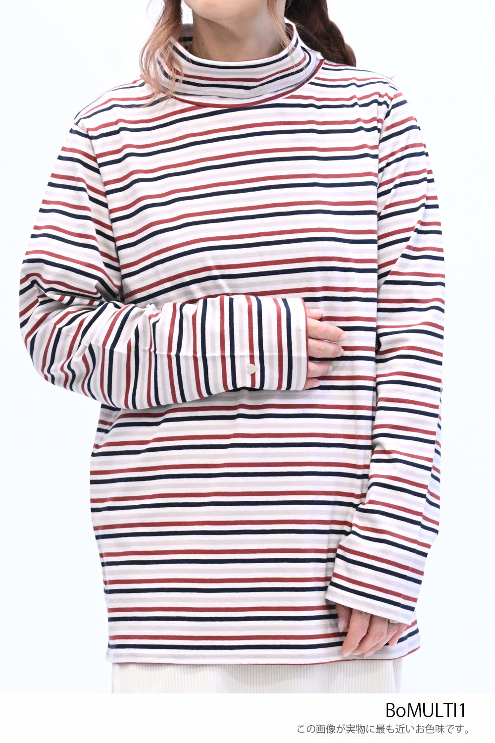 毎日のコーデに取り入れやすい、綿100%のボーダータートル。