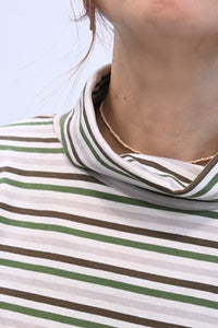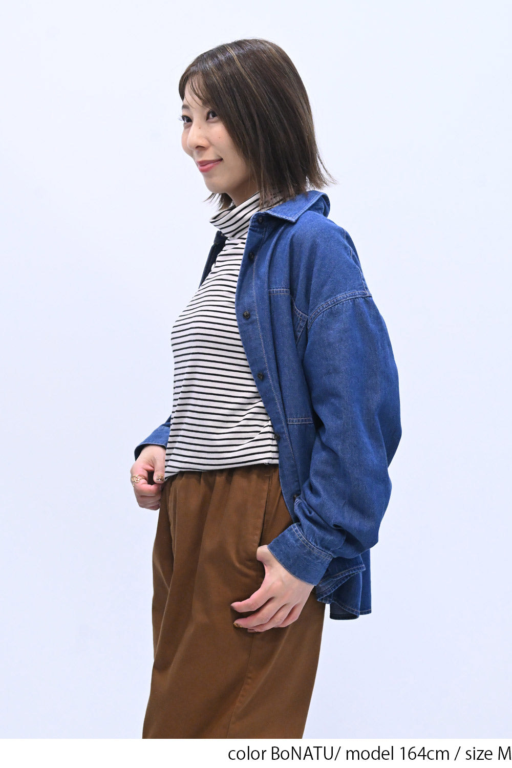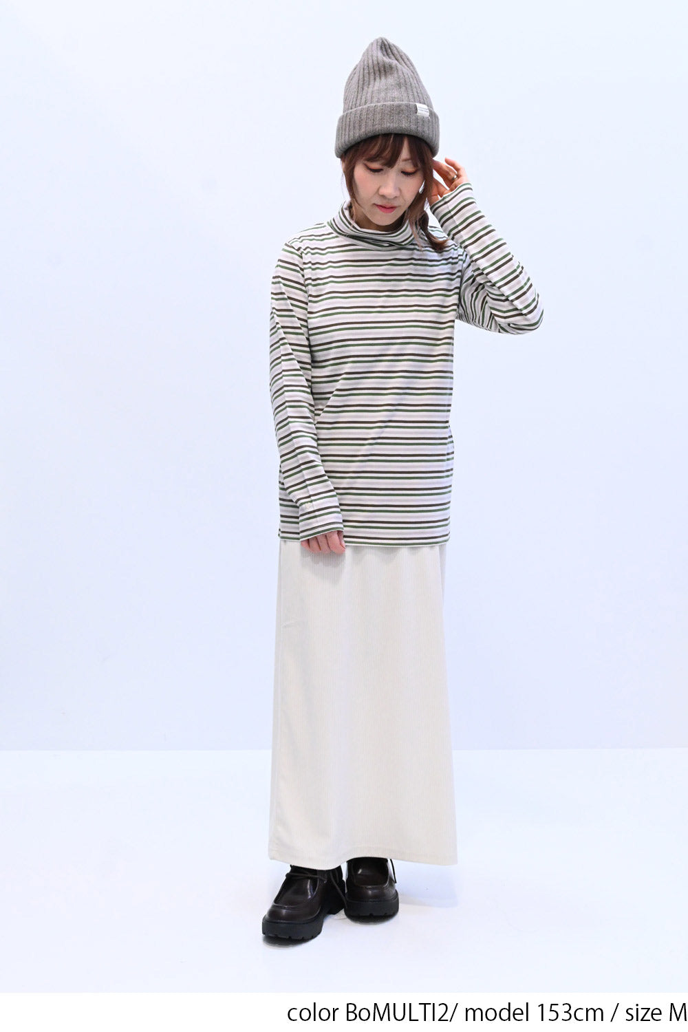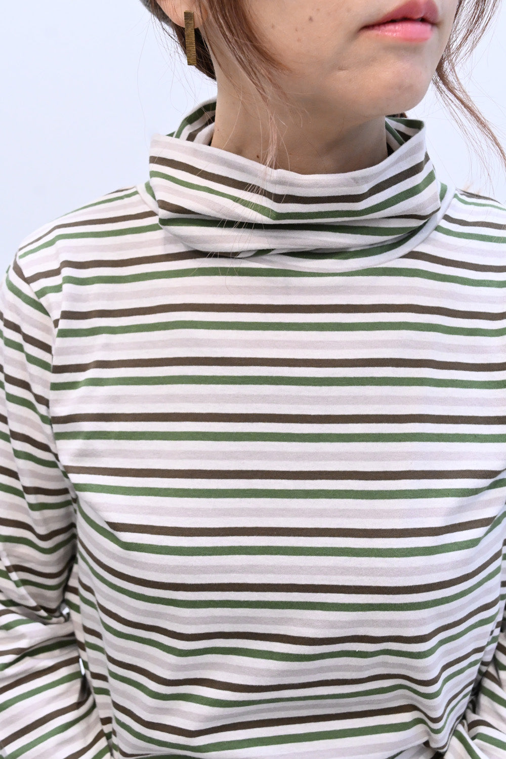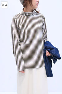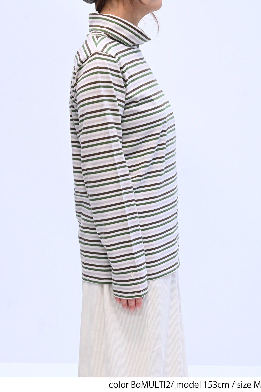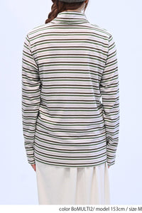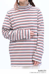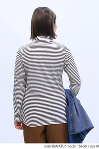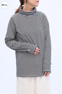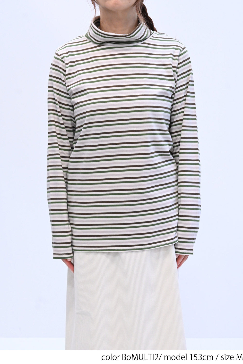 毎日のコーデに取り入れやすい、綿100%のボーダータートル。