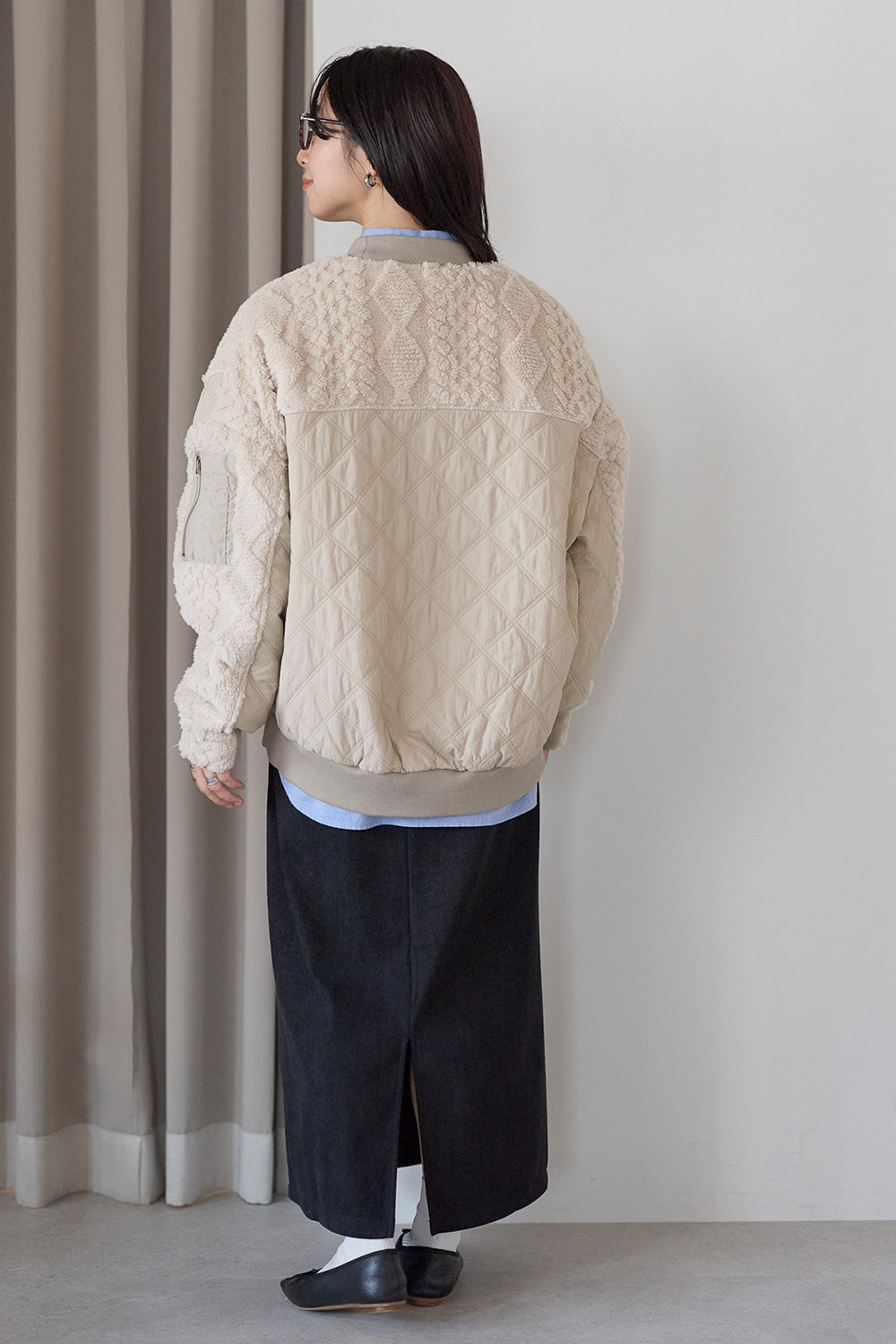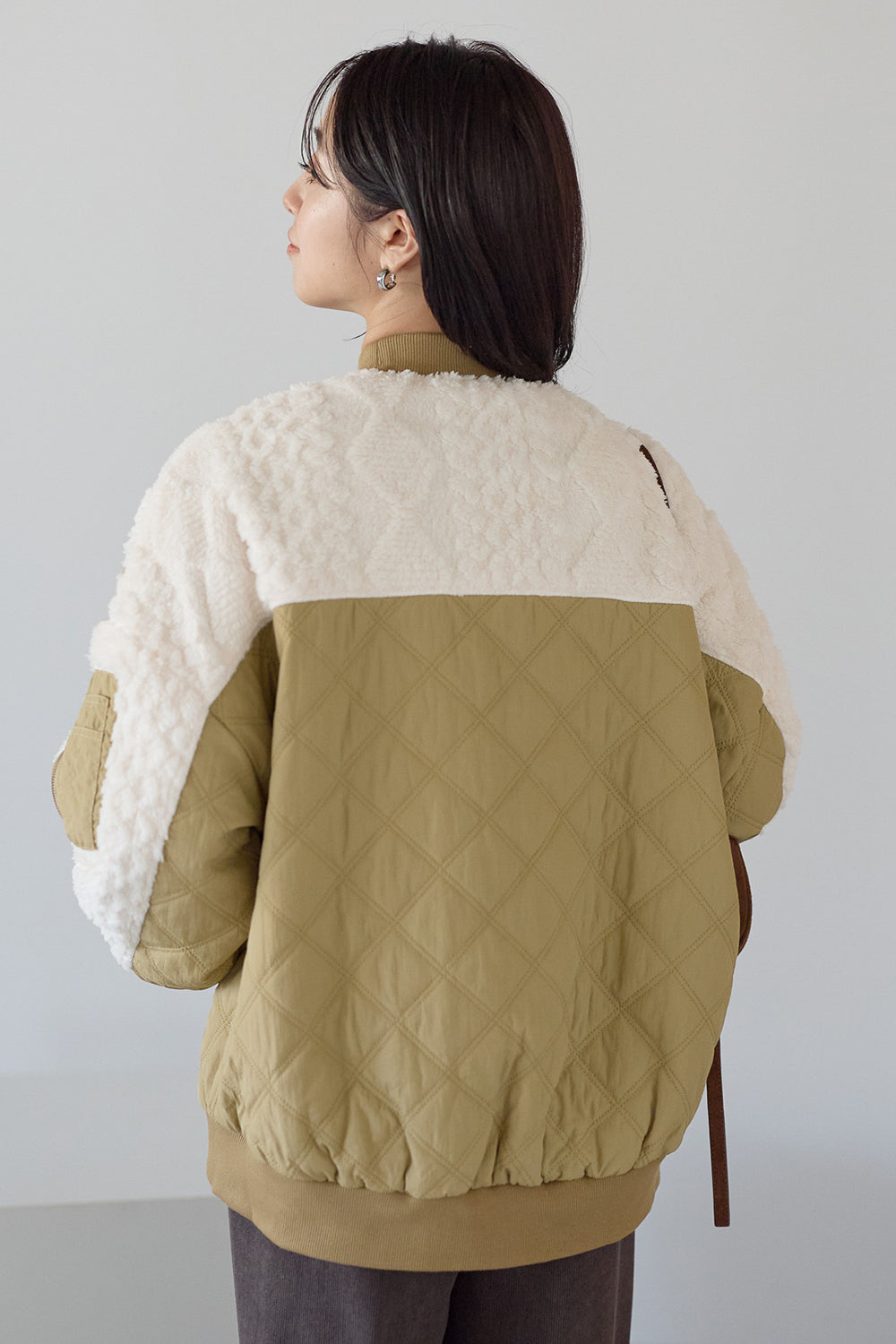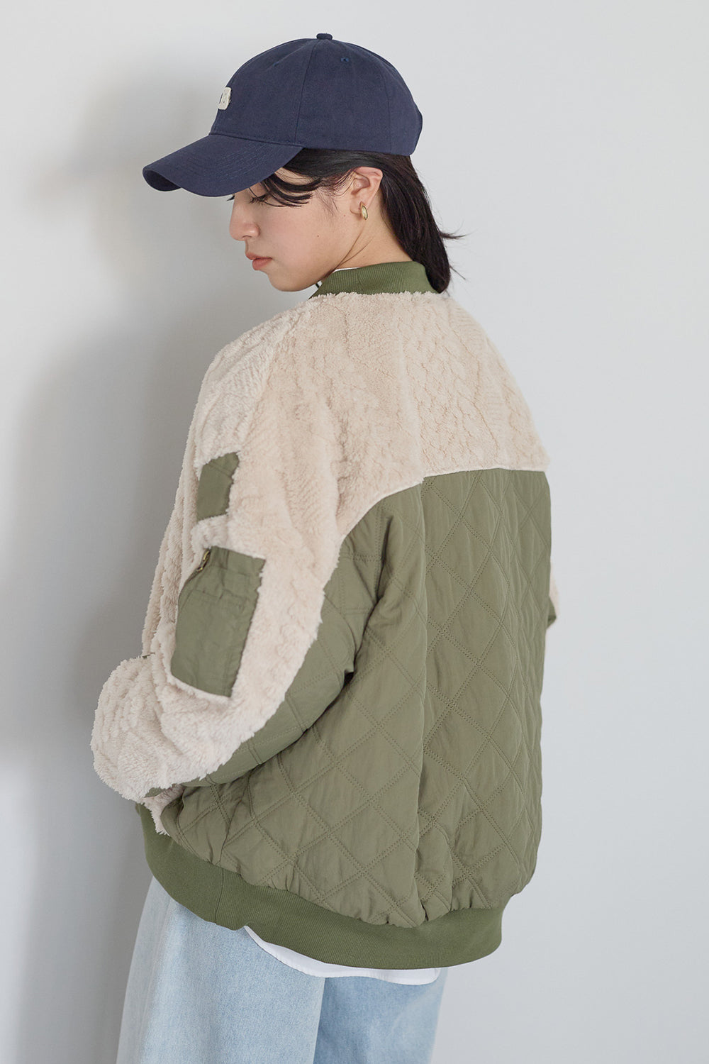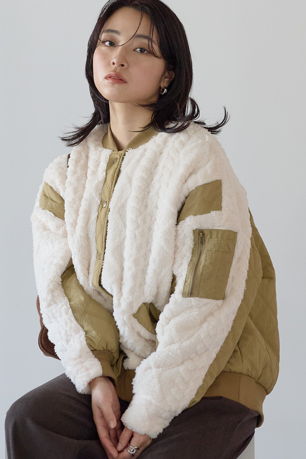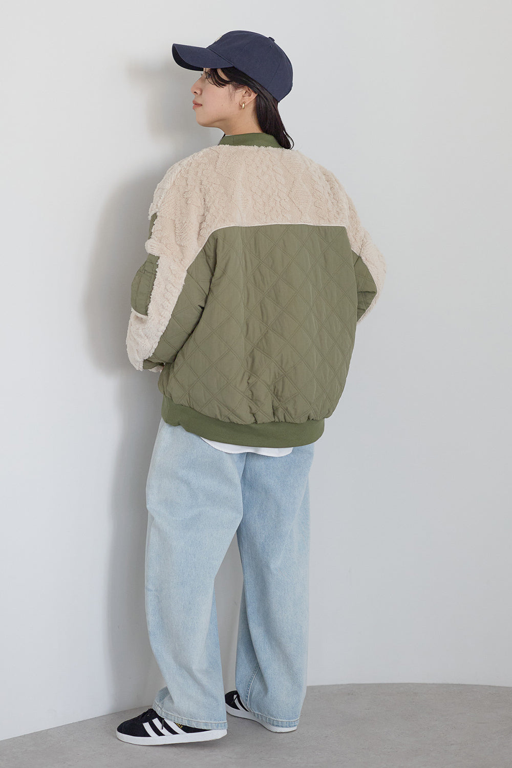 異素材切り替えが目を惹く、ボア×キルティングのMA-1ブルゾン。