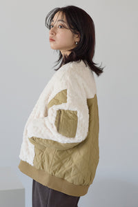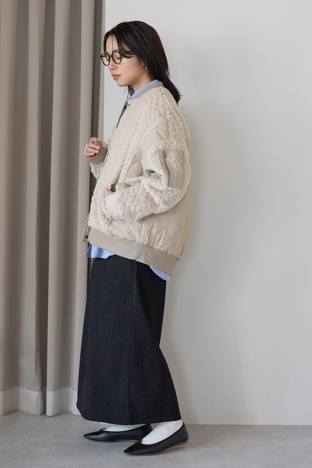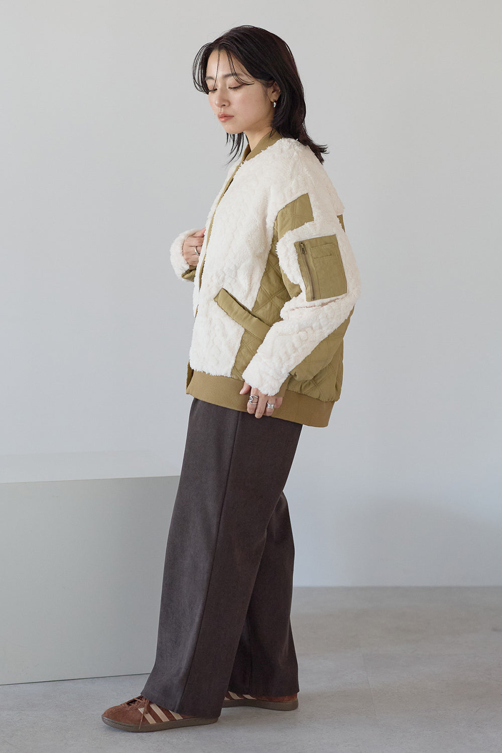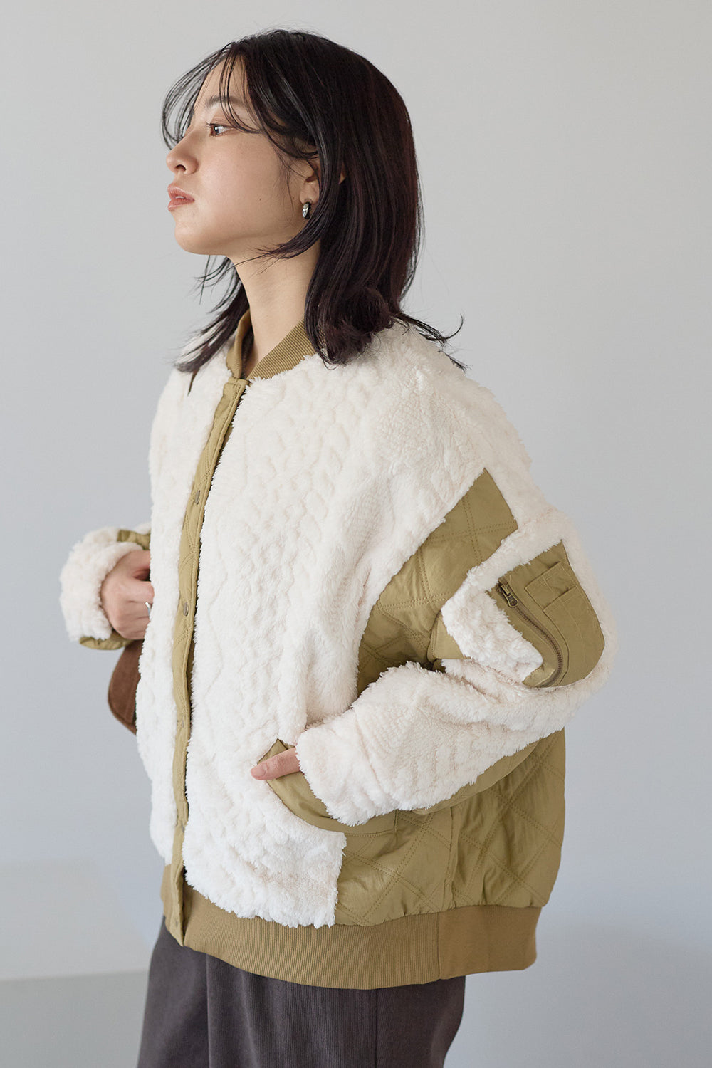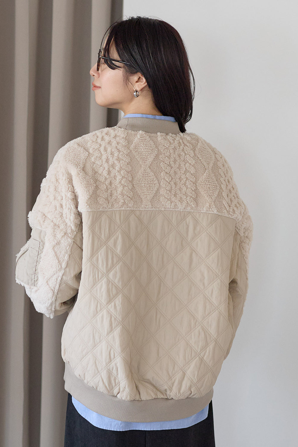 異素材切り替えが目を惹く、ボア×キルティングのMA-1ブルゾン。