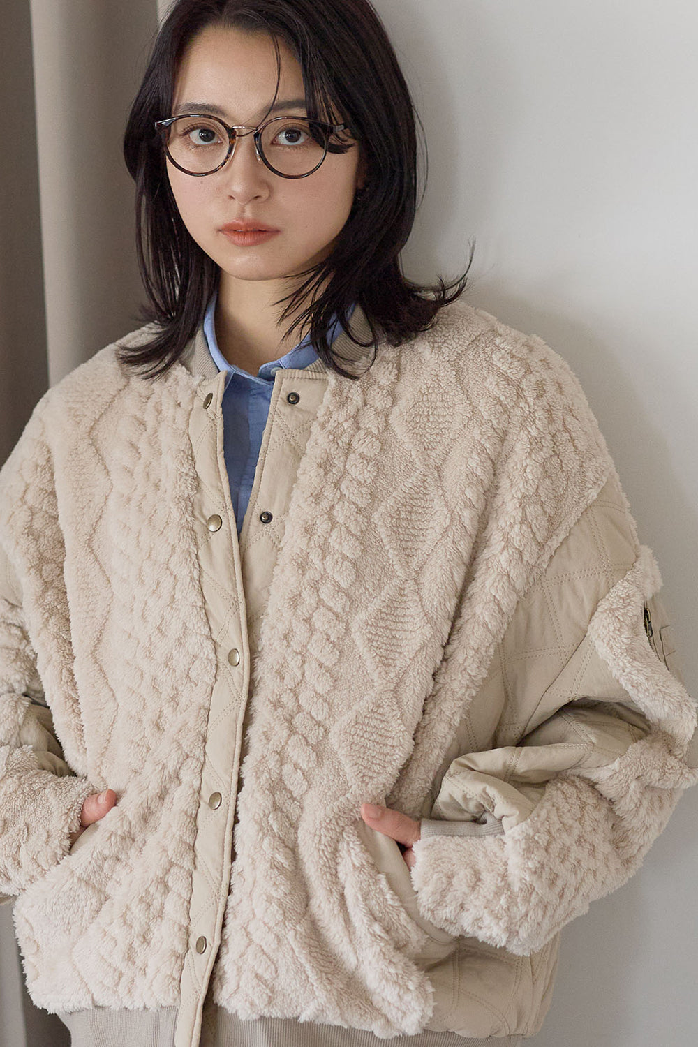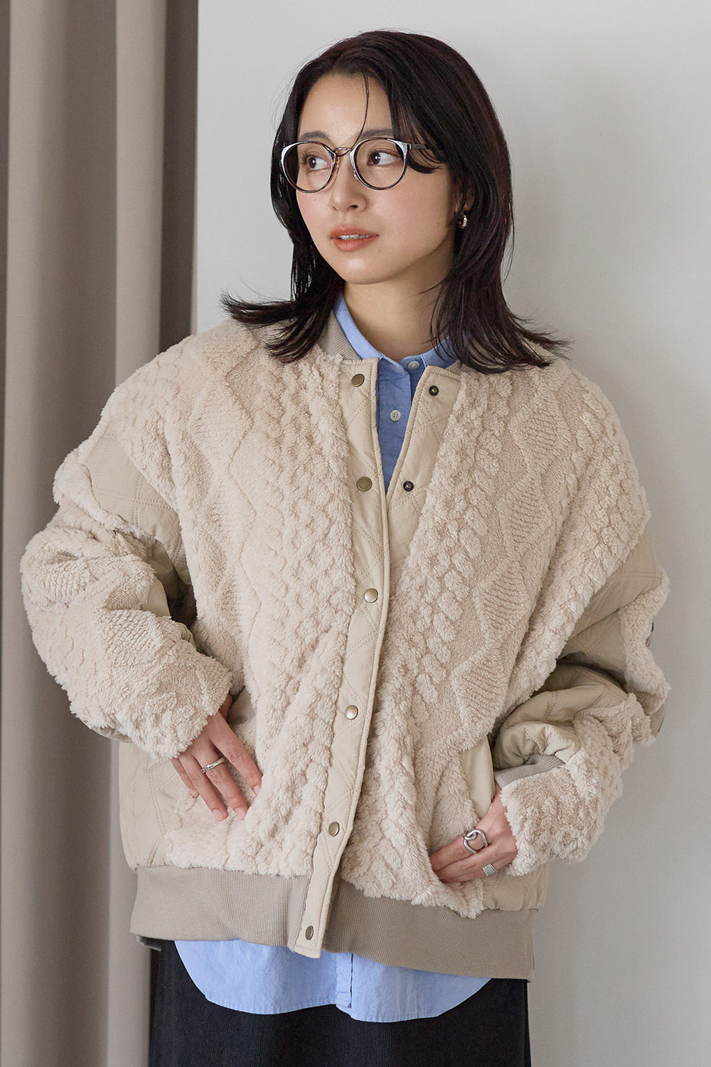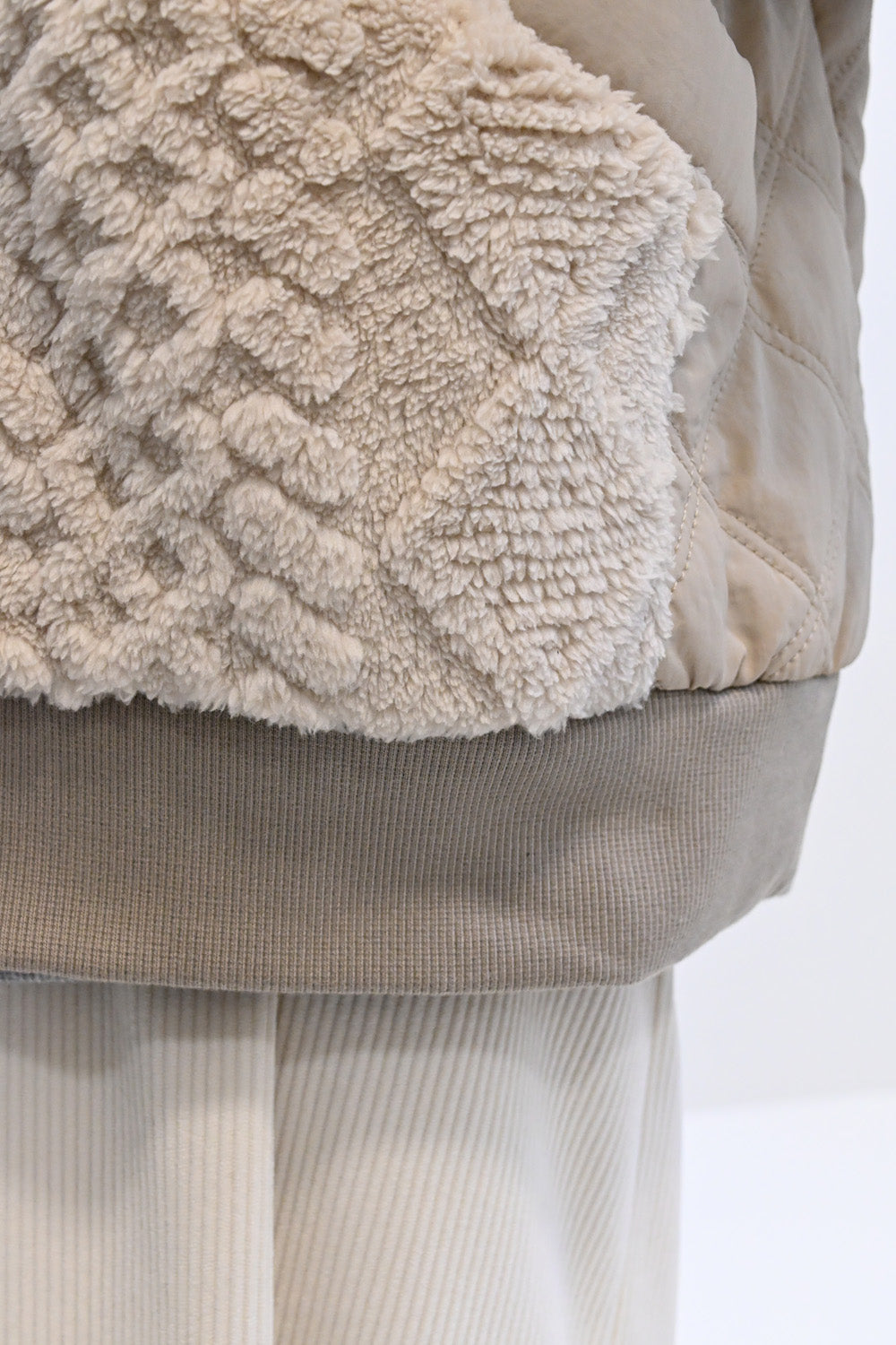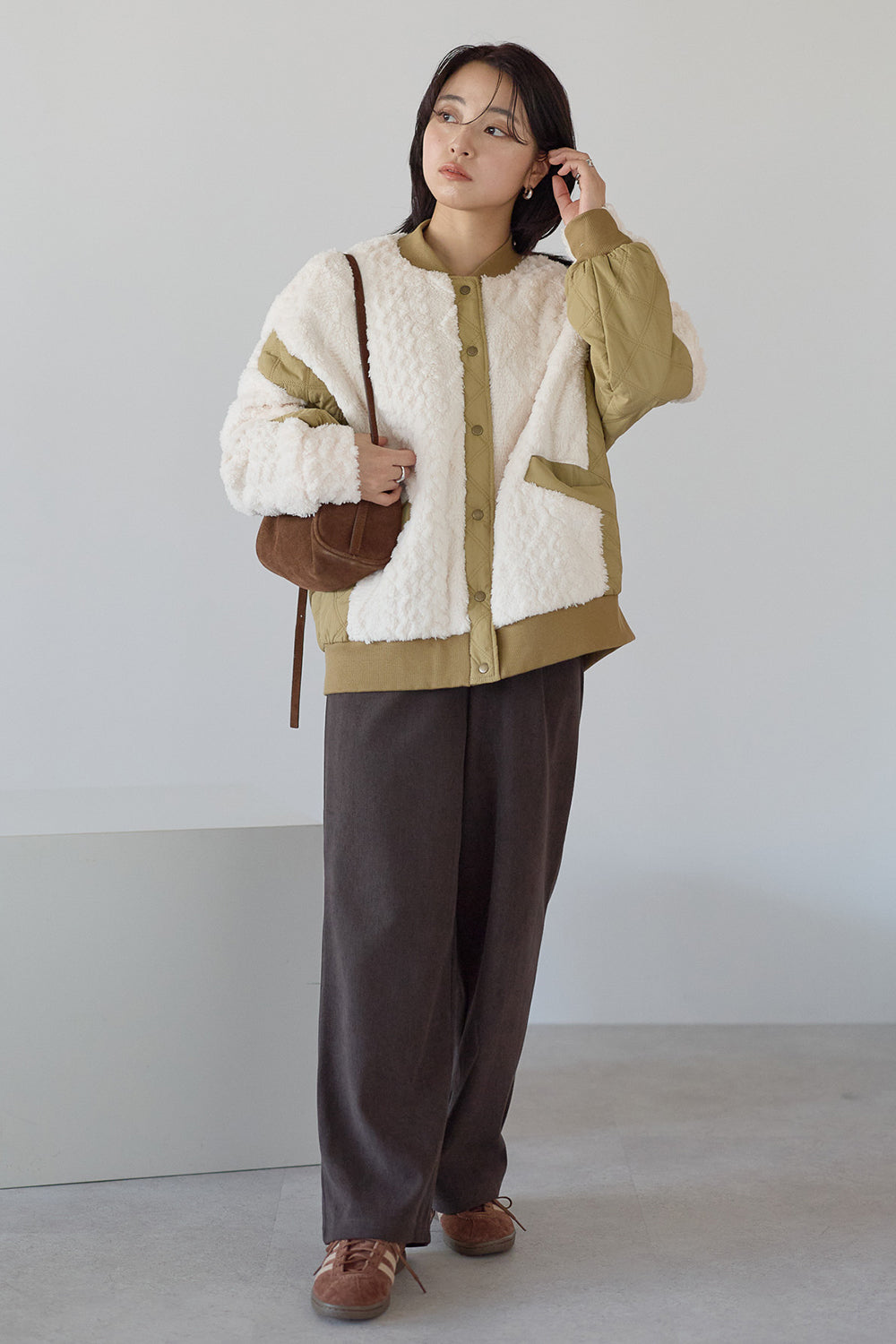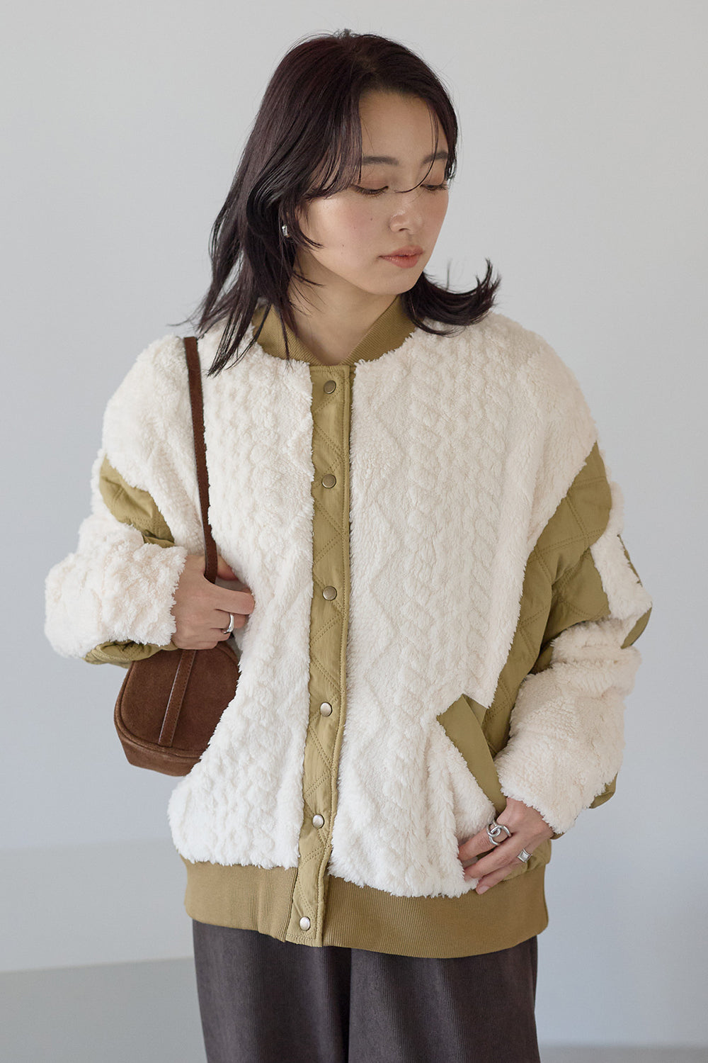 異素材切り替えが目を惹く、ボア×キルティングのMA-1ブルゾン。