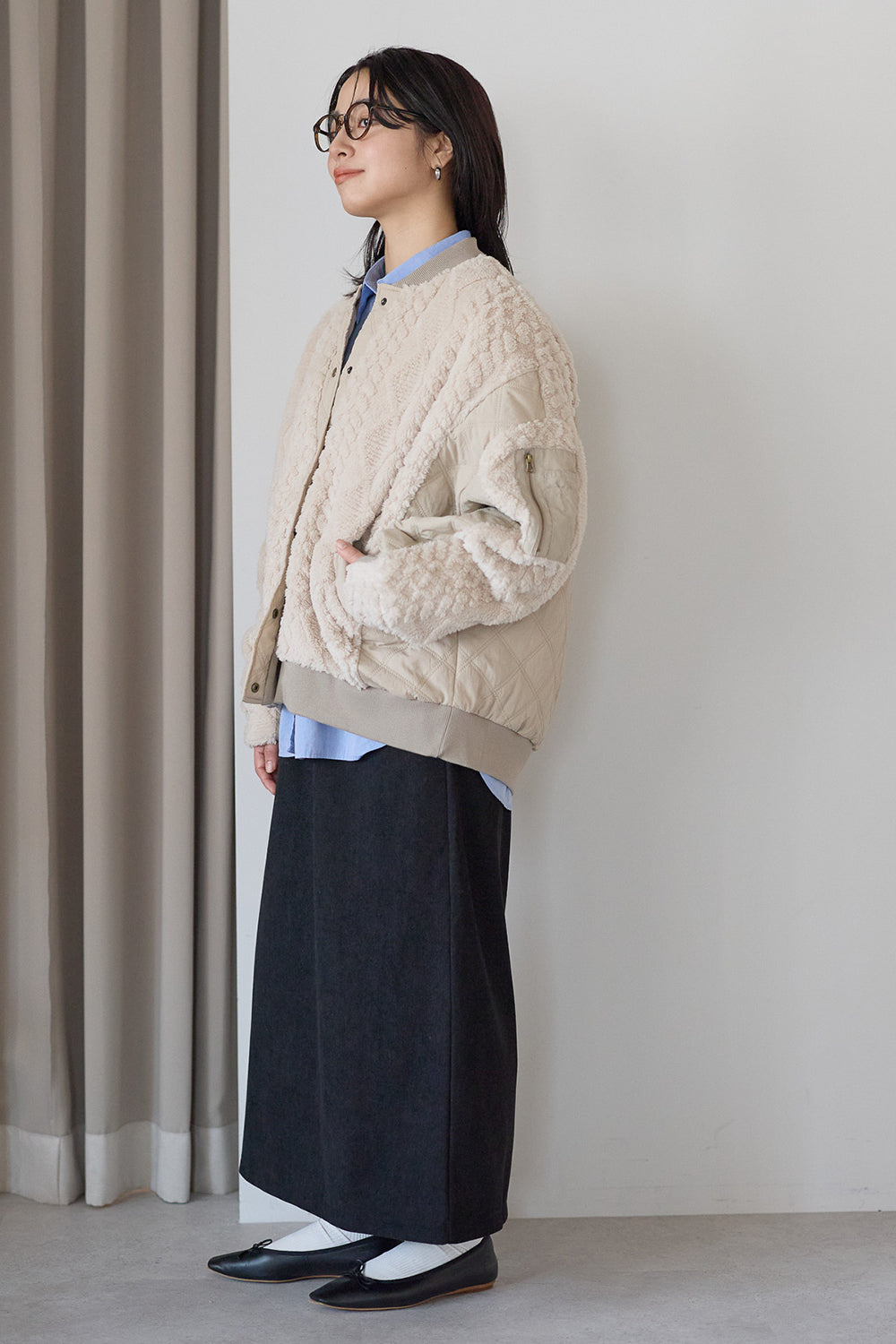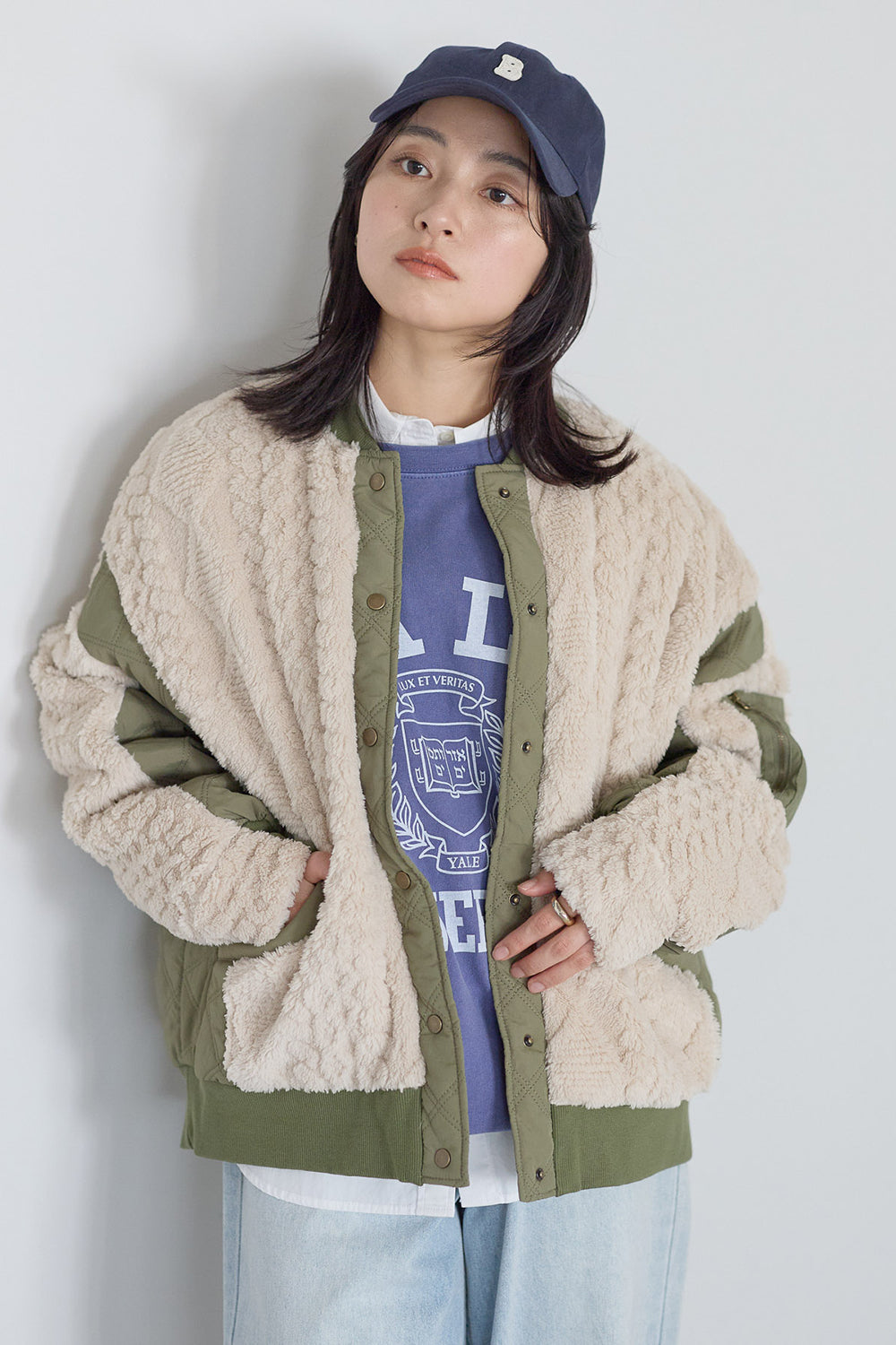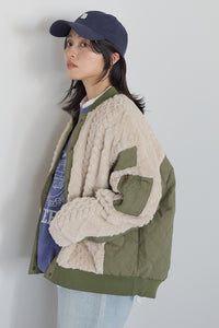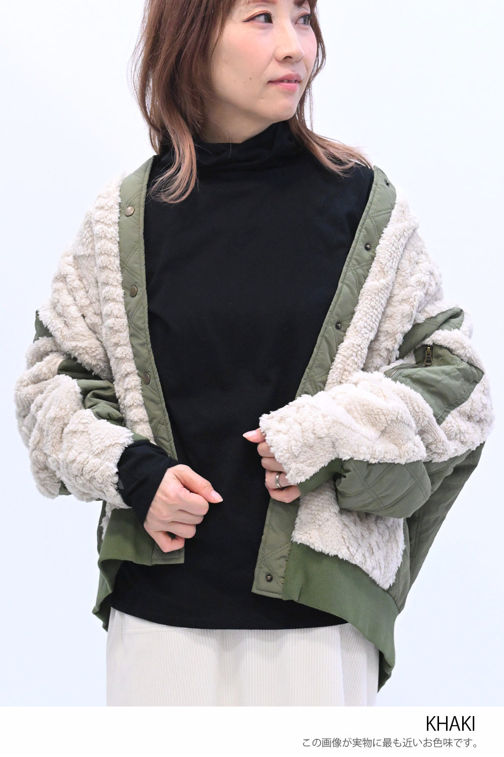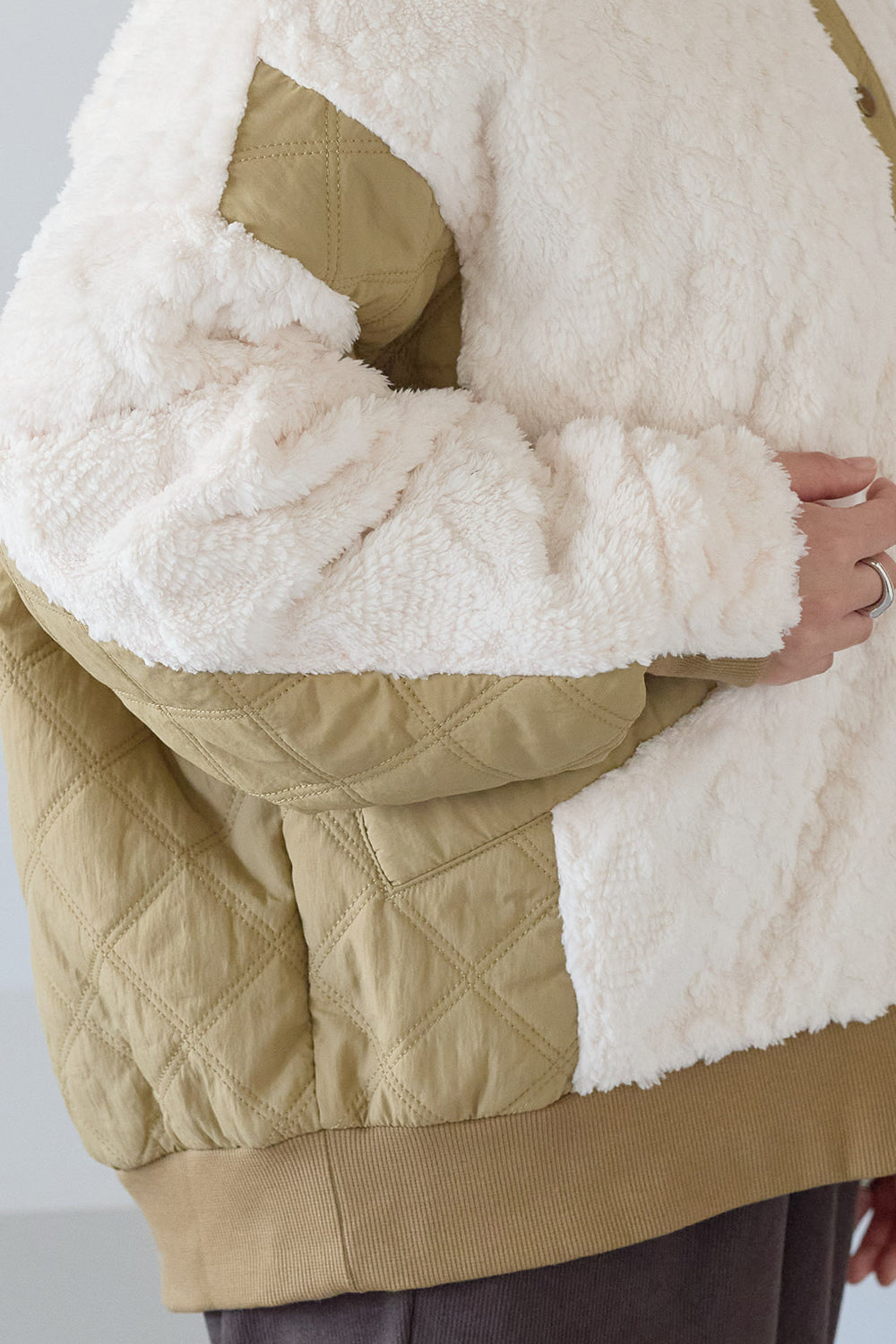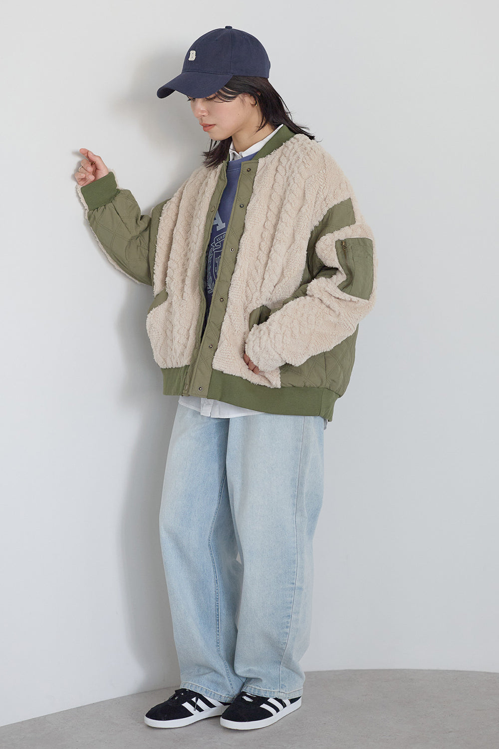 異素材切り替えが目を惹く、ボア×キルティングのMA-1ブルゾン。