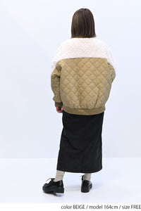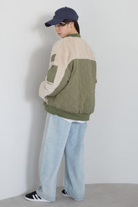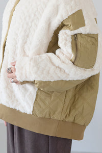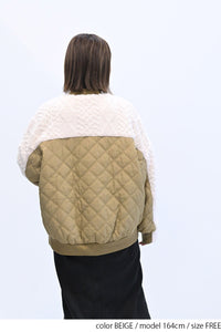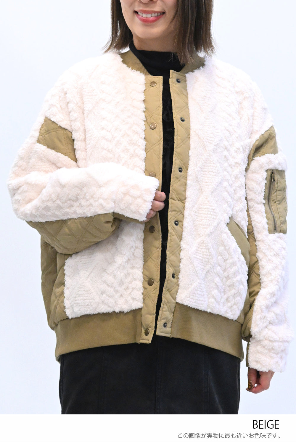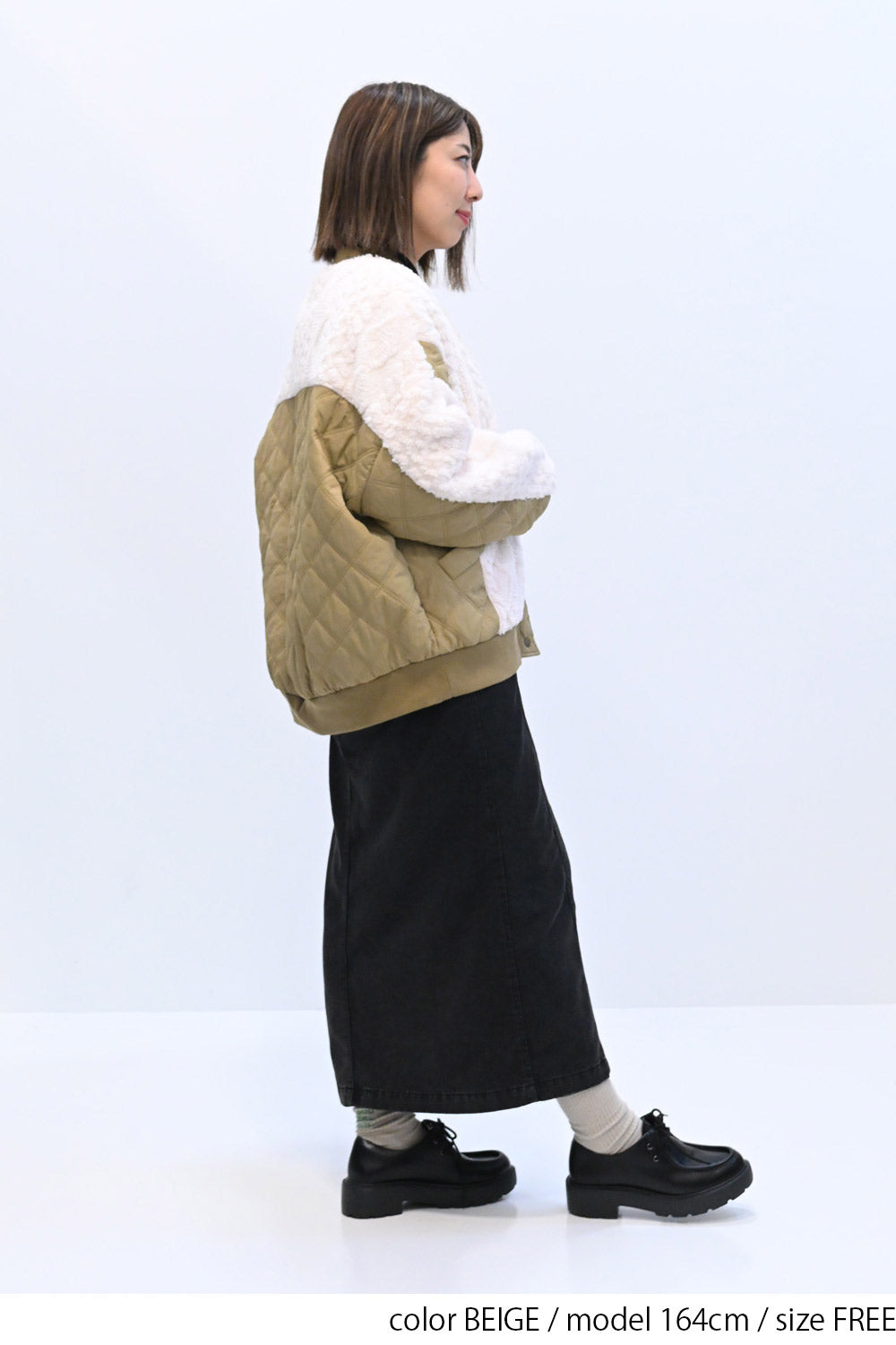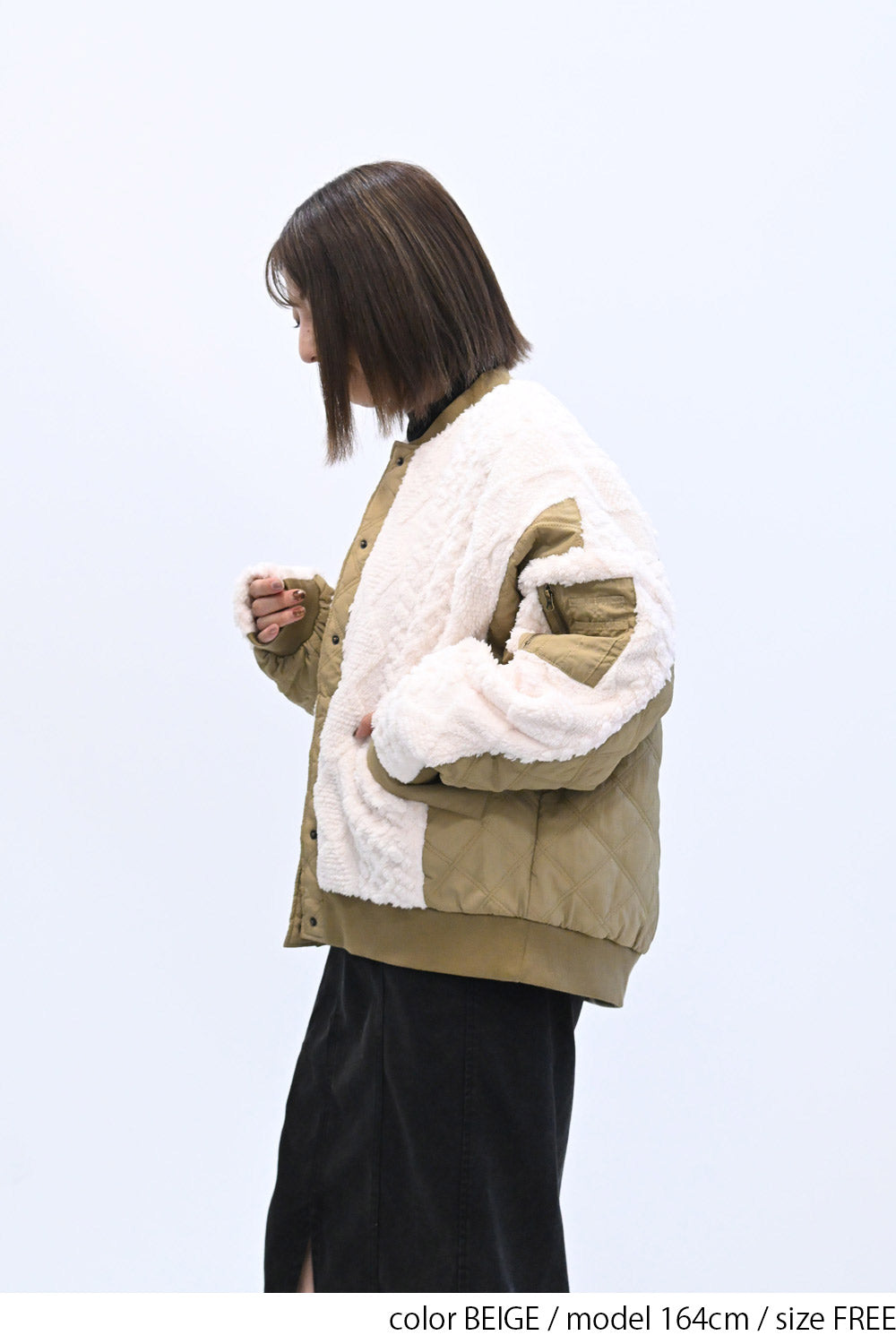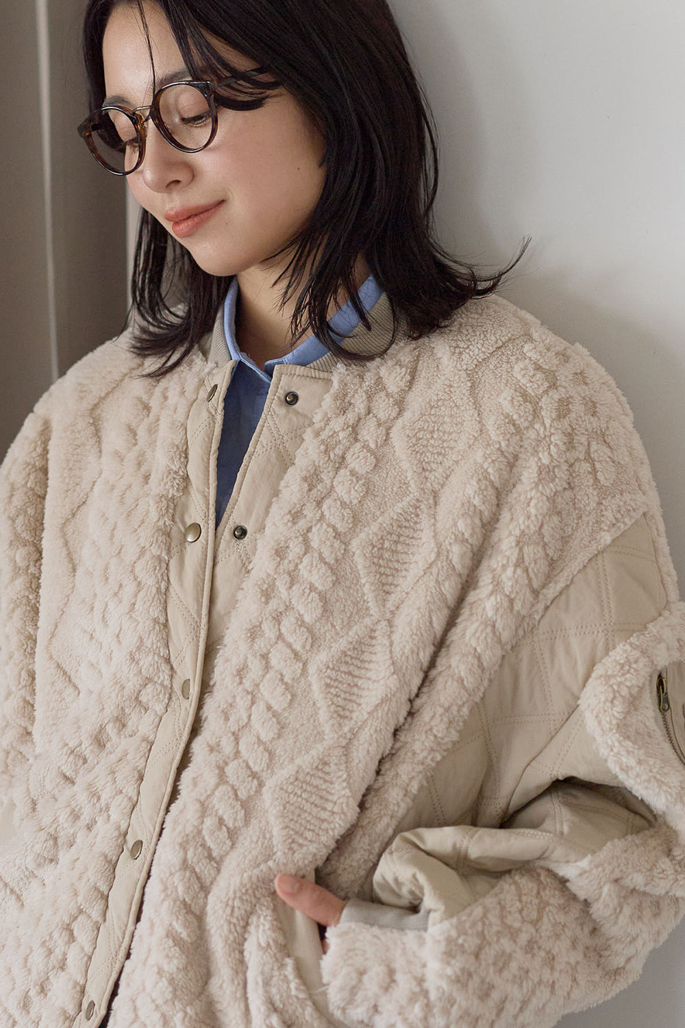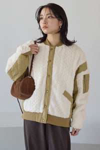 異素材切り替えが目を惹く、ボア×キルティングのMA-1ブルゾン。