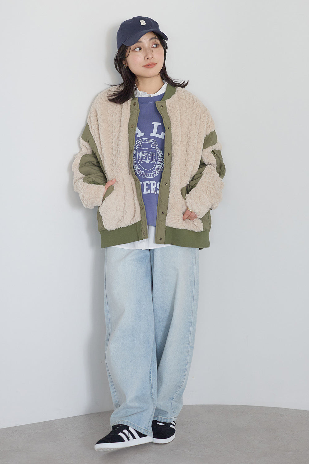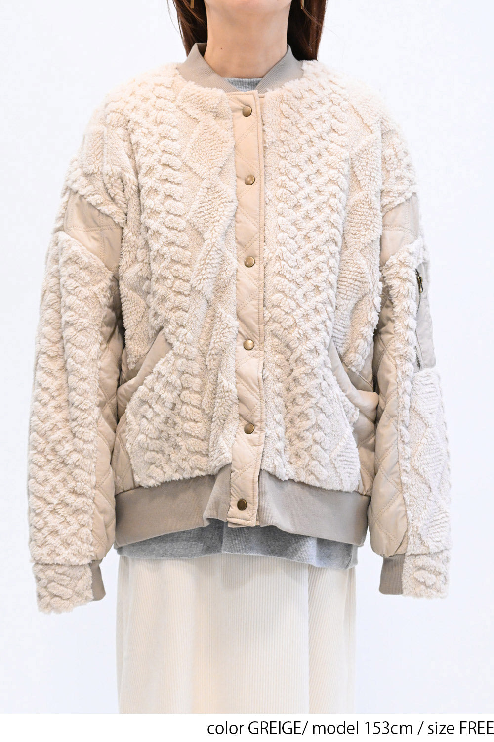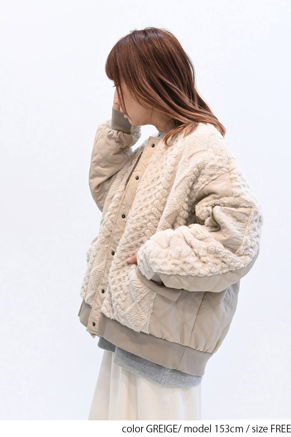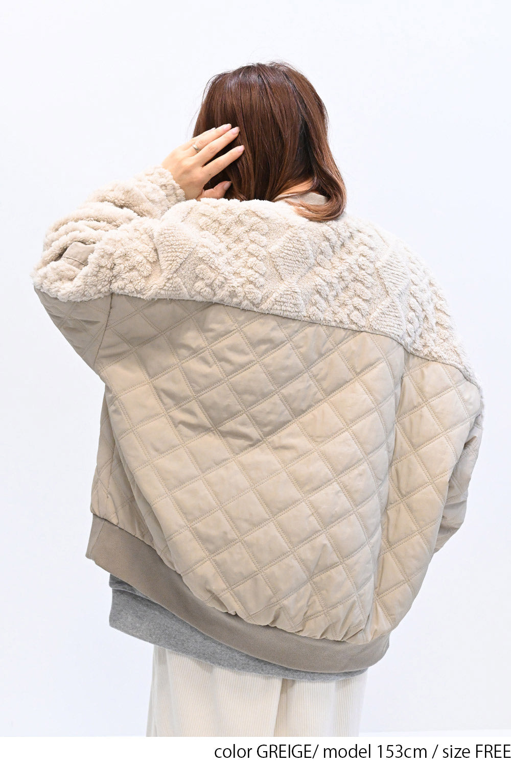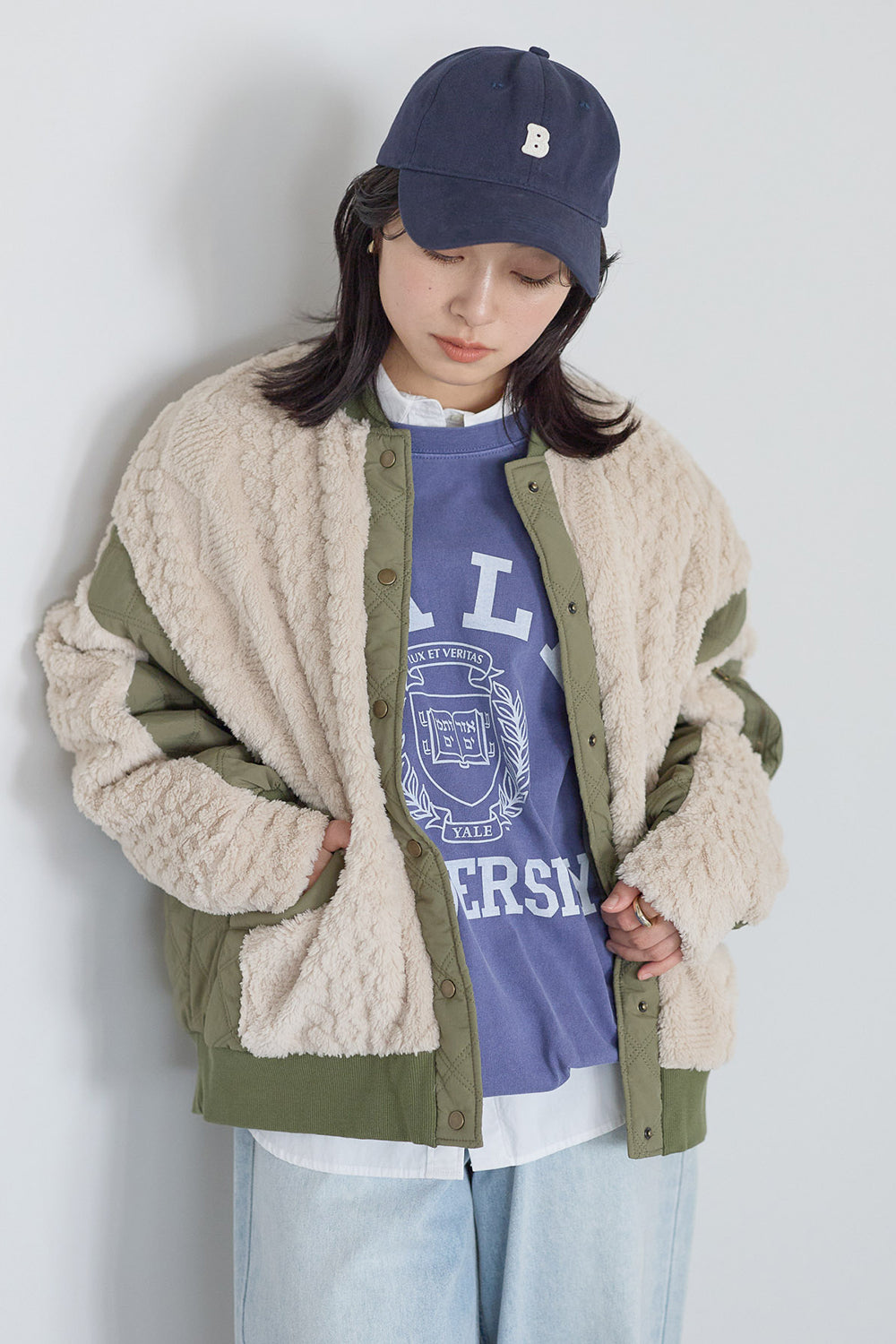 異素材切り替えが目を惹く、ボア×キルティングのMA-1ブルゾン。