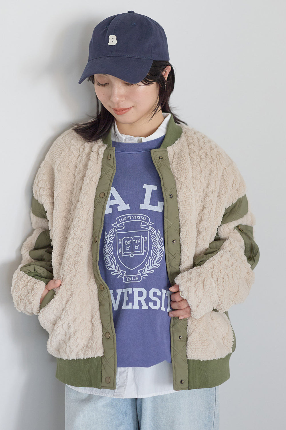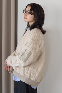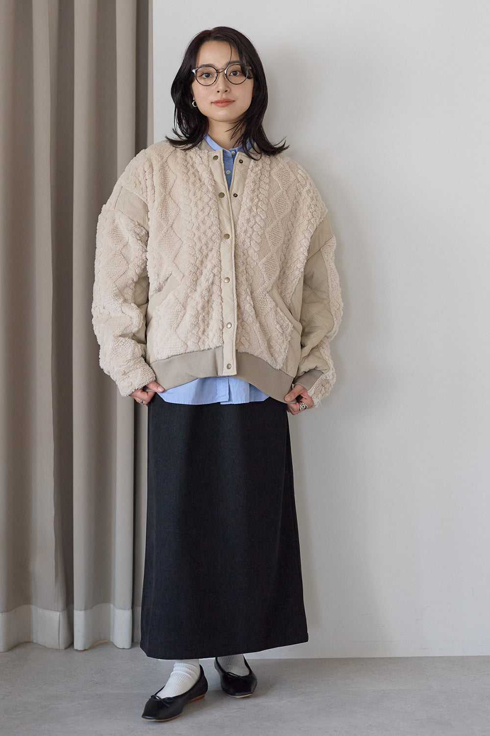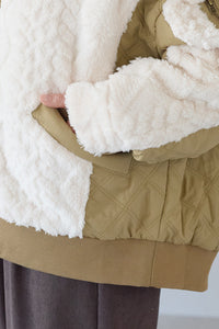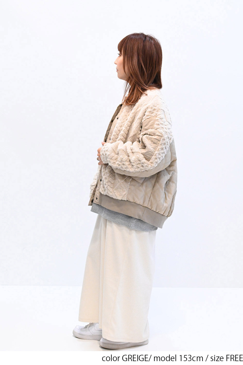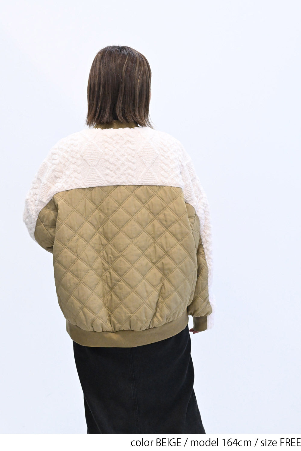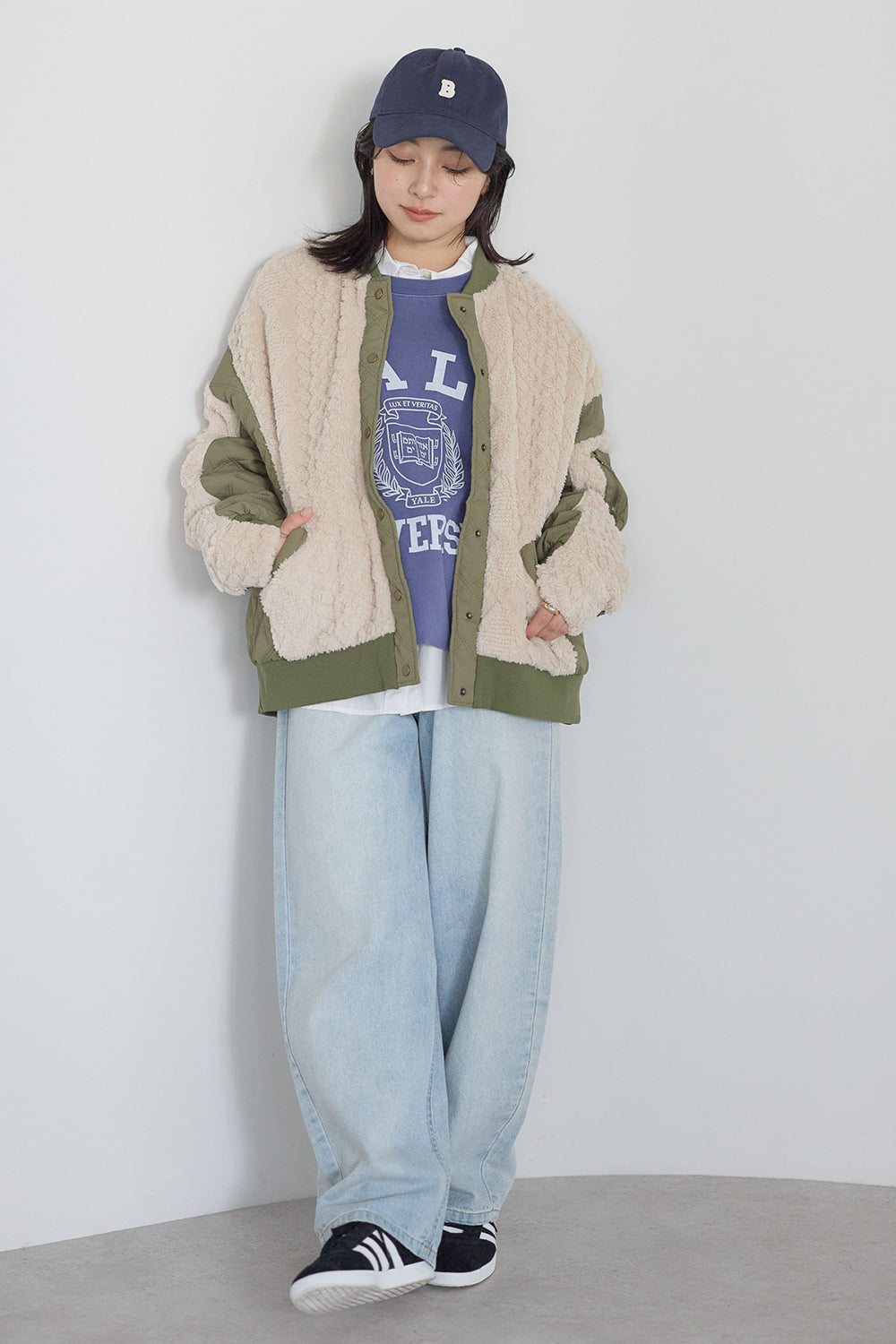 異素材切り替えが目を惹く、ボア×キルティングのMA-1ブルゾン。