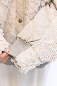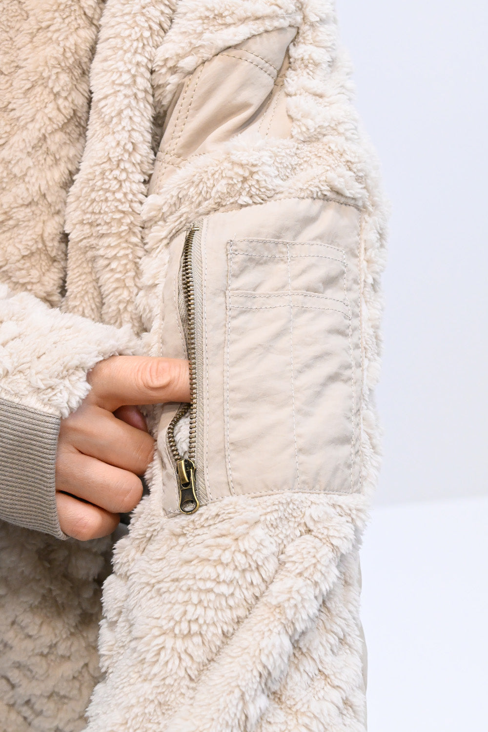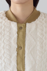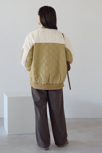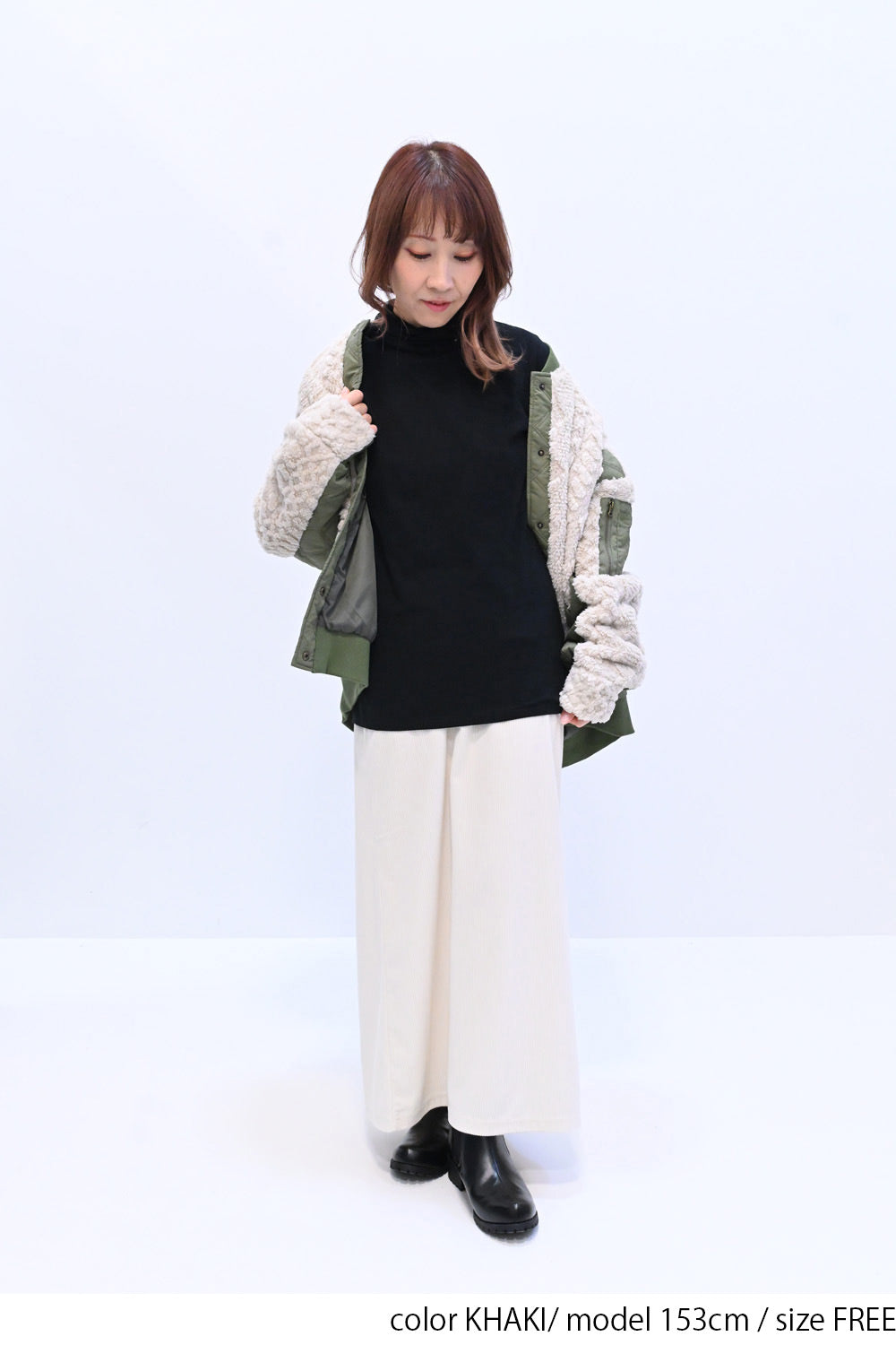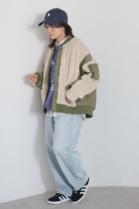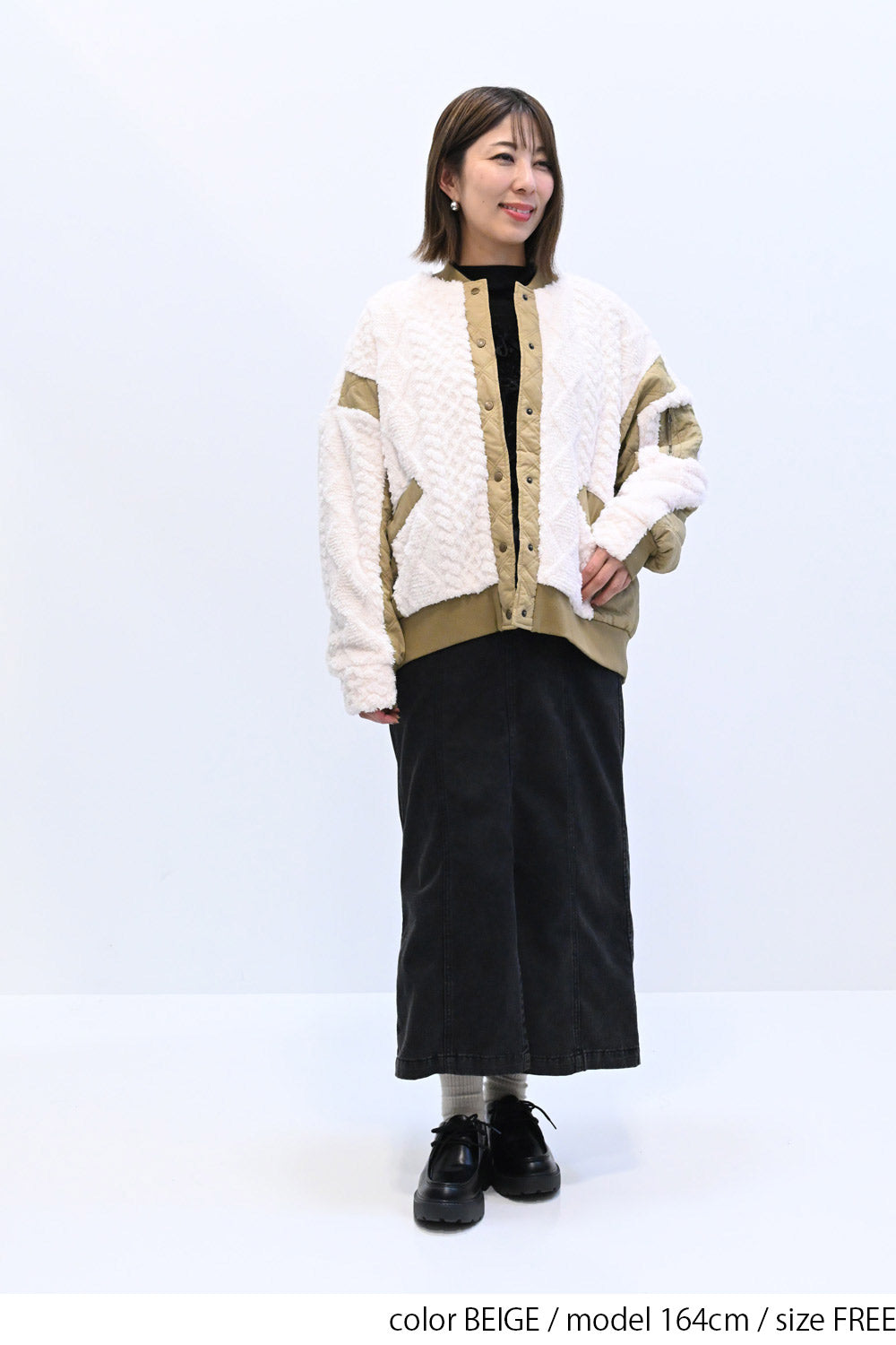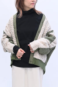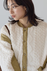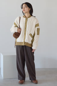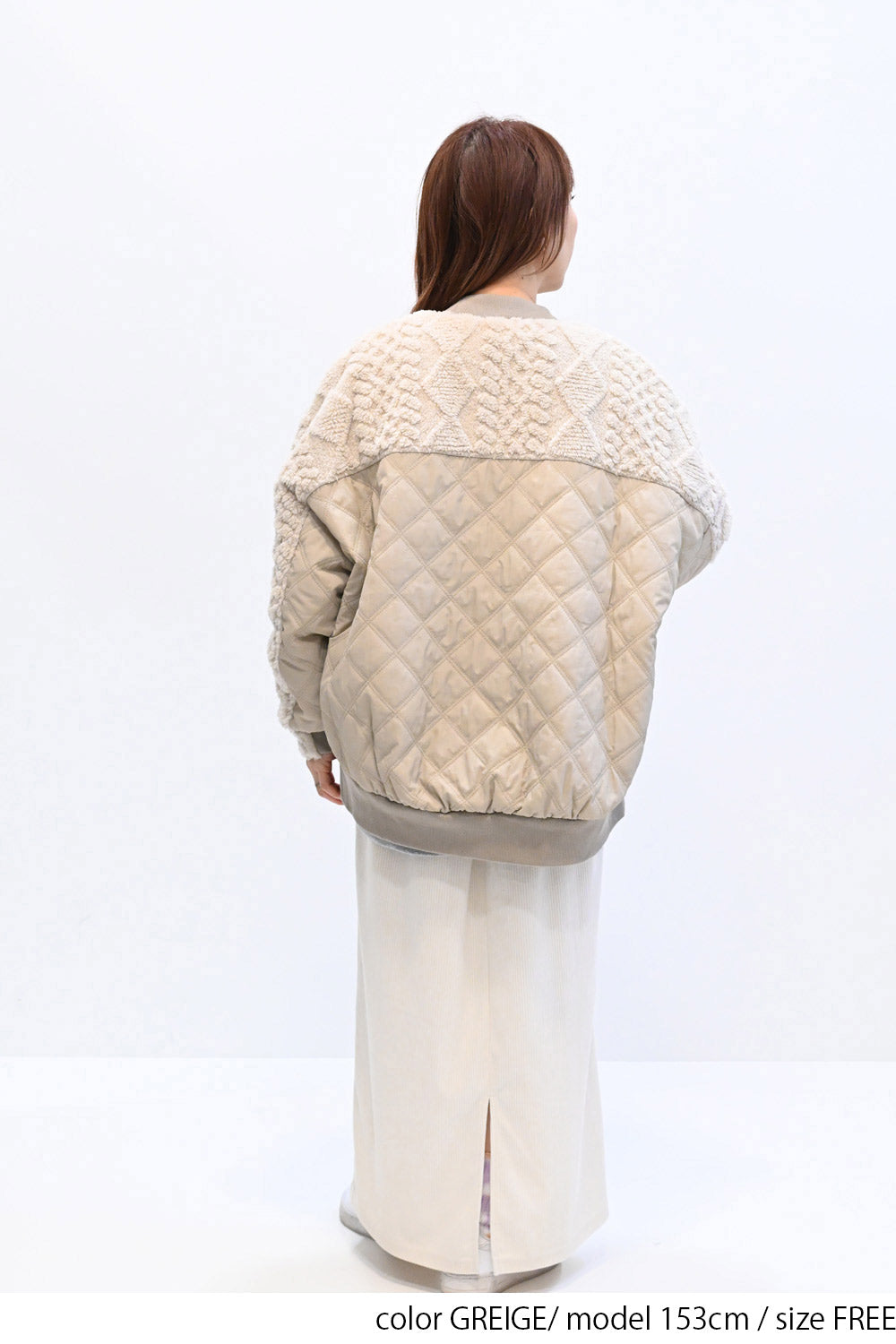 異素材切り替えが目を惹く、ボア×キルティングのMA-1ブルゾン。
