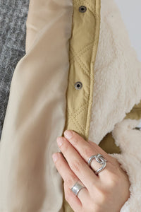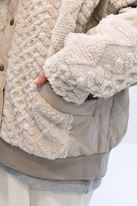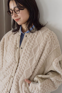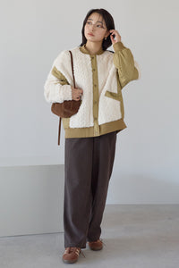 もこもことしたボアと微光沢のキルティングの組み合わせが、ほどよいボリュームと季節感を演出します。