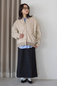 スカートやワンピースに羽織って、フェミニンさをほどよく引き締めるのもおすすめ。