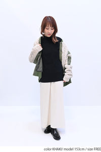 | 素材 | 表地 キルティング部分:ナイロン 100% 中わた:ポリエステル 100% ボア:ポリエステル 100% 裏地:ポリエステル 100% リブ:ポリエステル 100% |