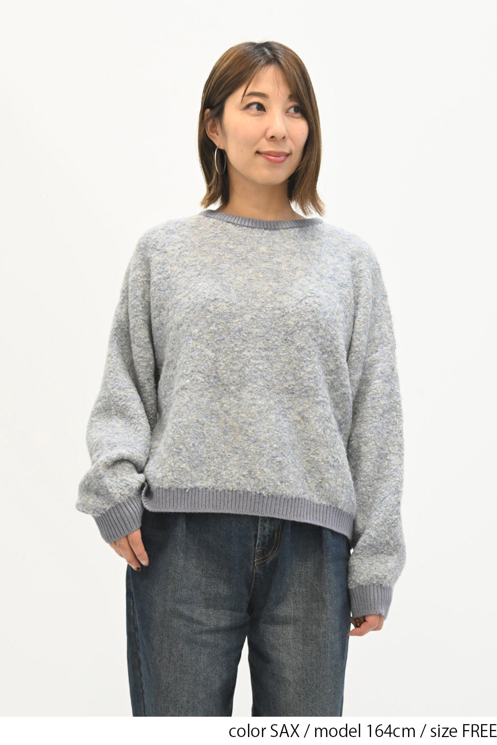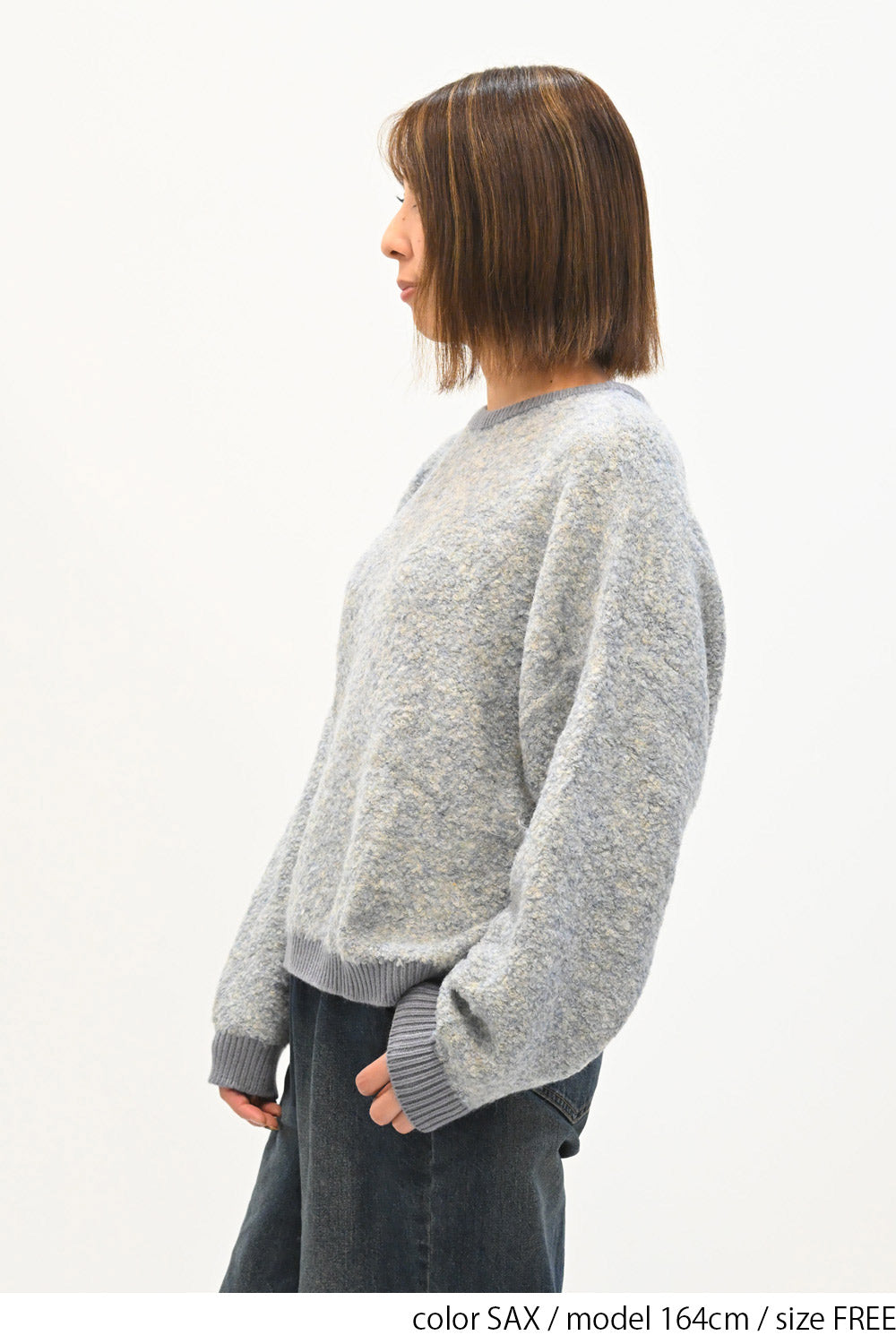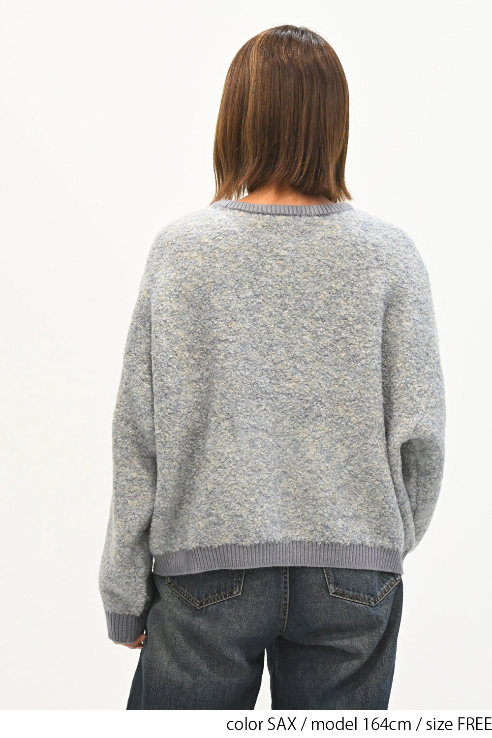 ノスタルジックな雰囲気漂う、ミックスヤーンの表情が魅力のニットプルオーバー。