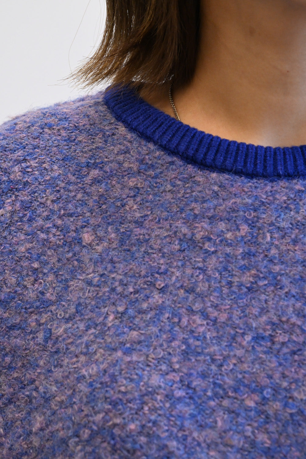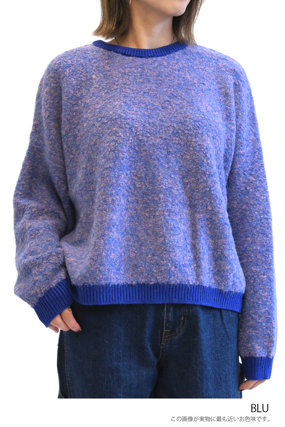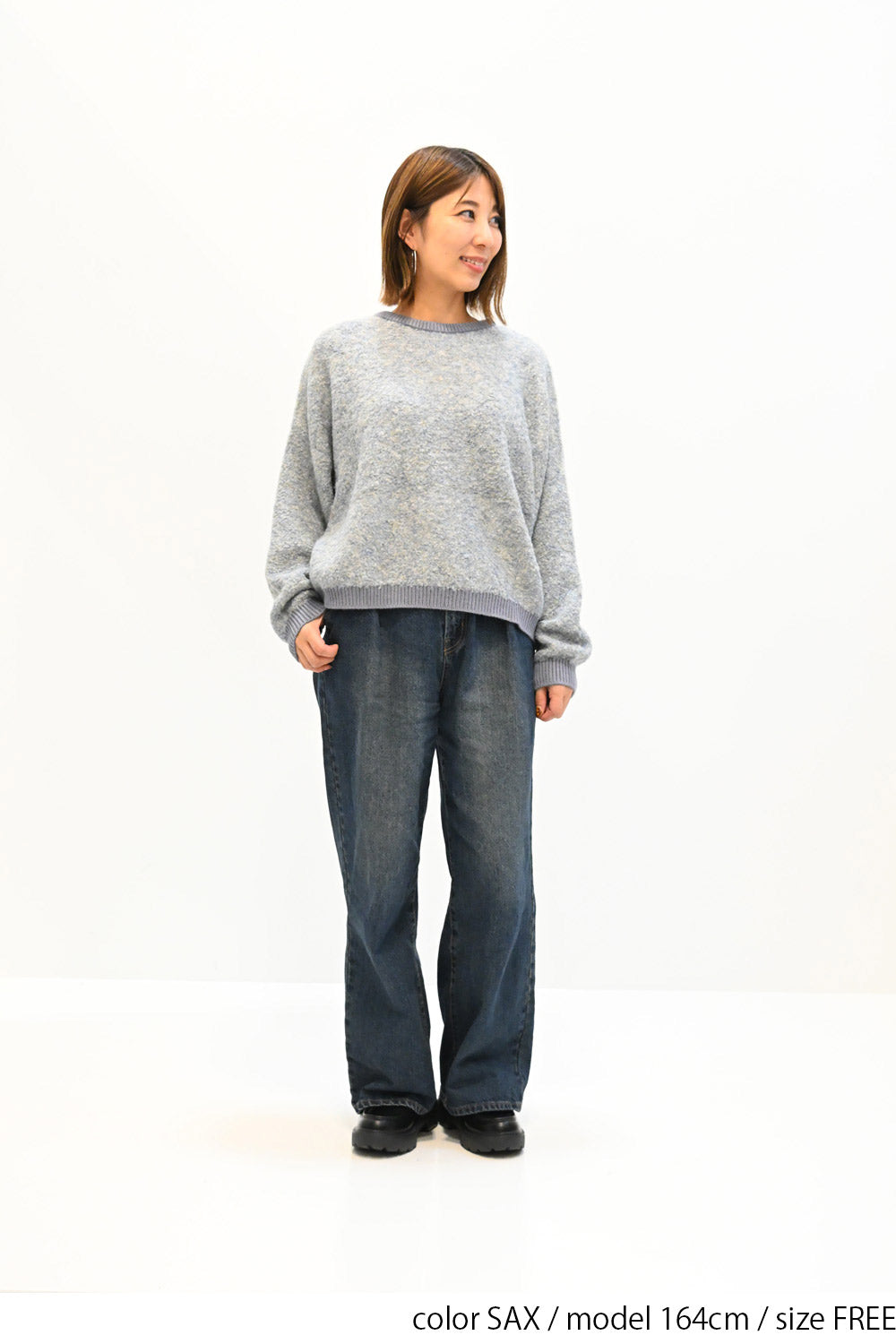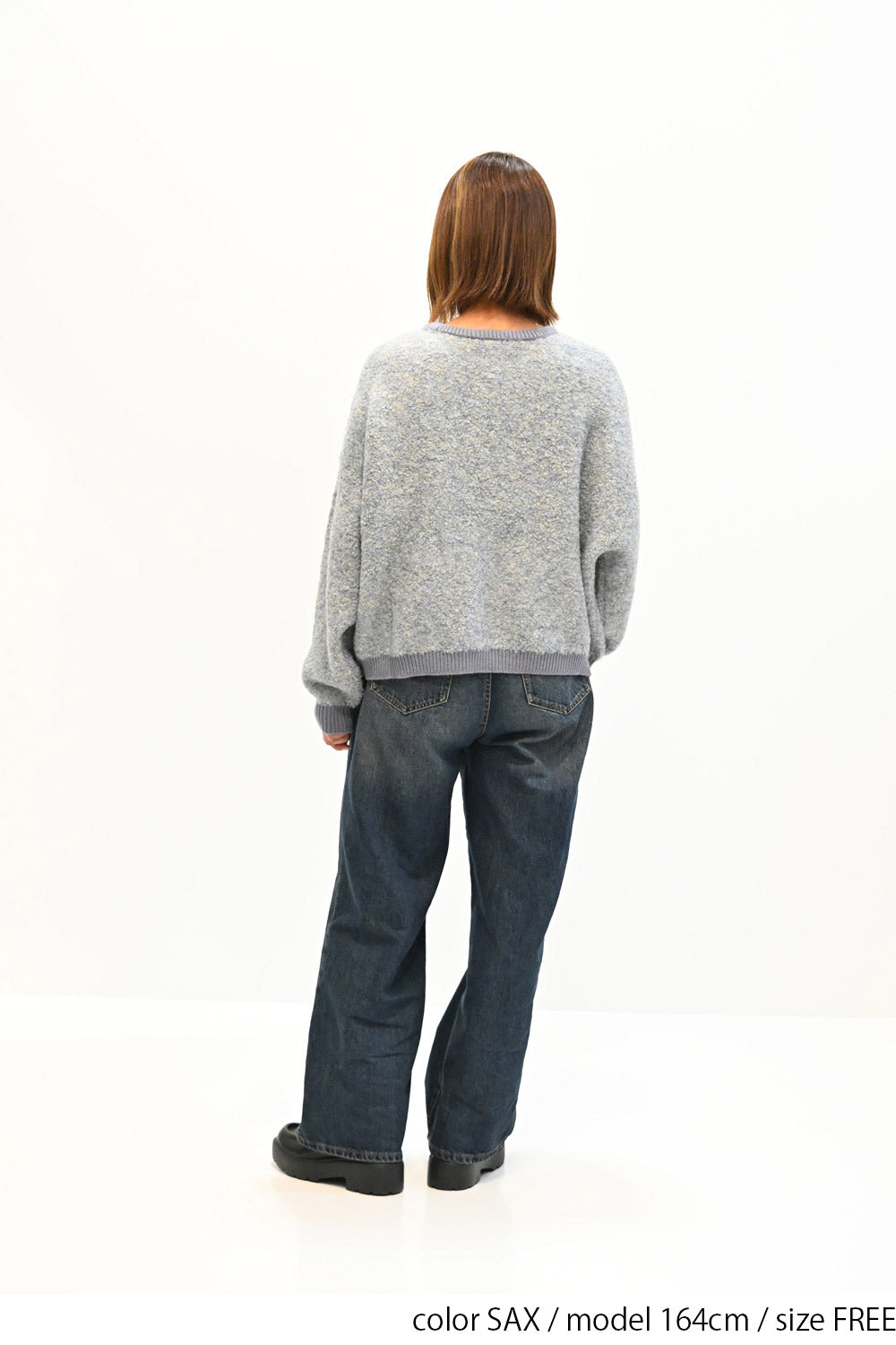 ノスタルジックな雰囲気漂う、ミックスヤーンの表情が魅力のニットプルオーバー。