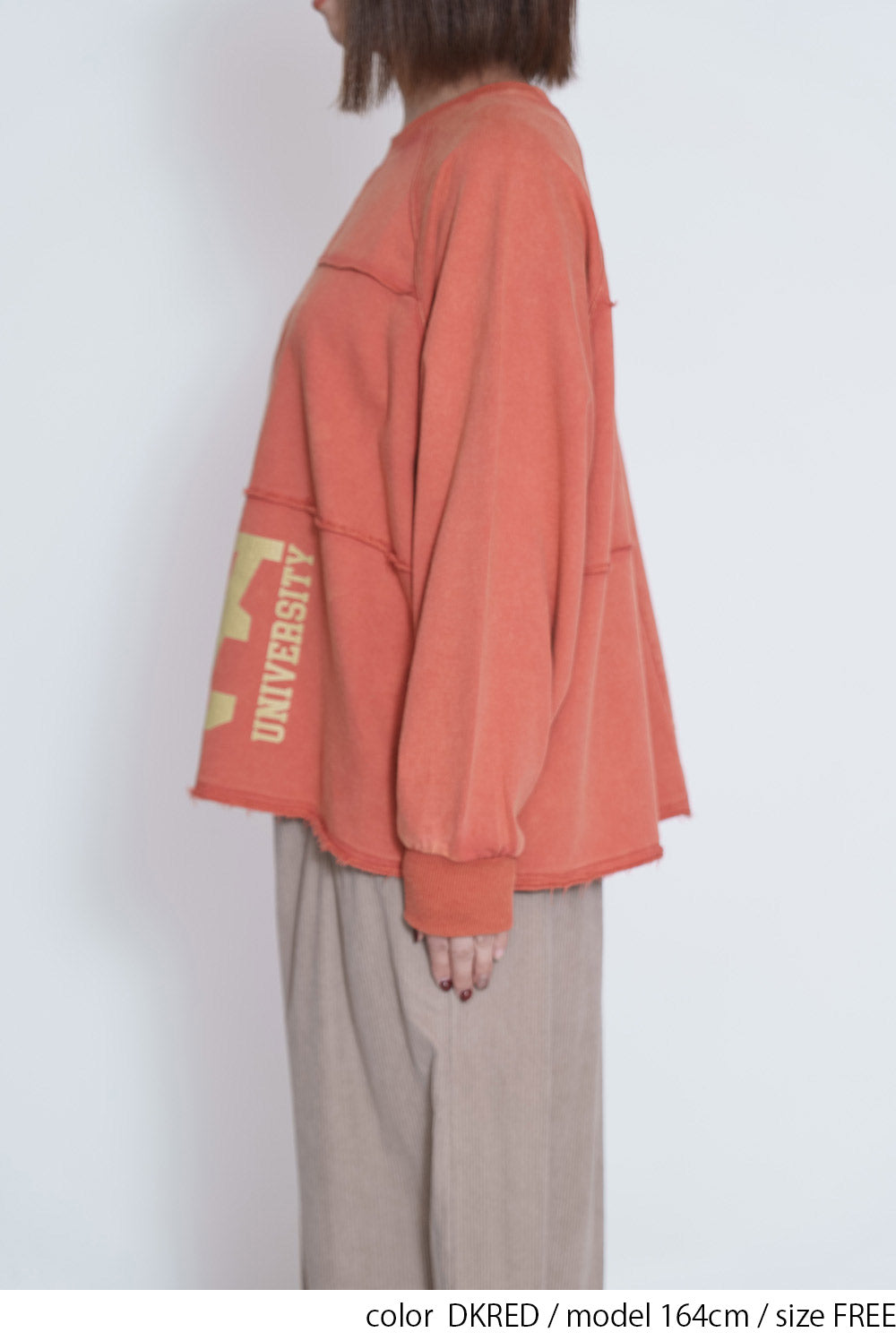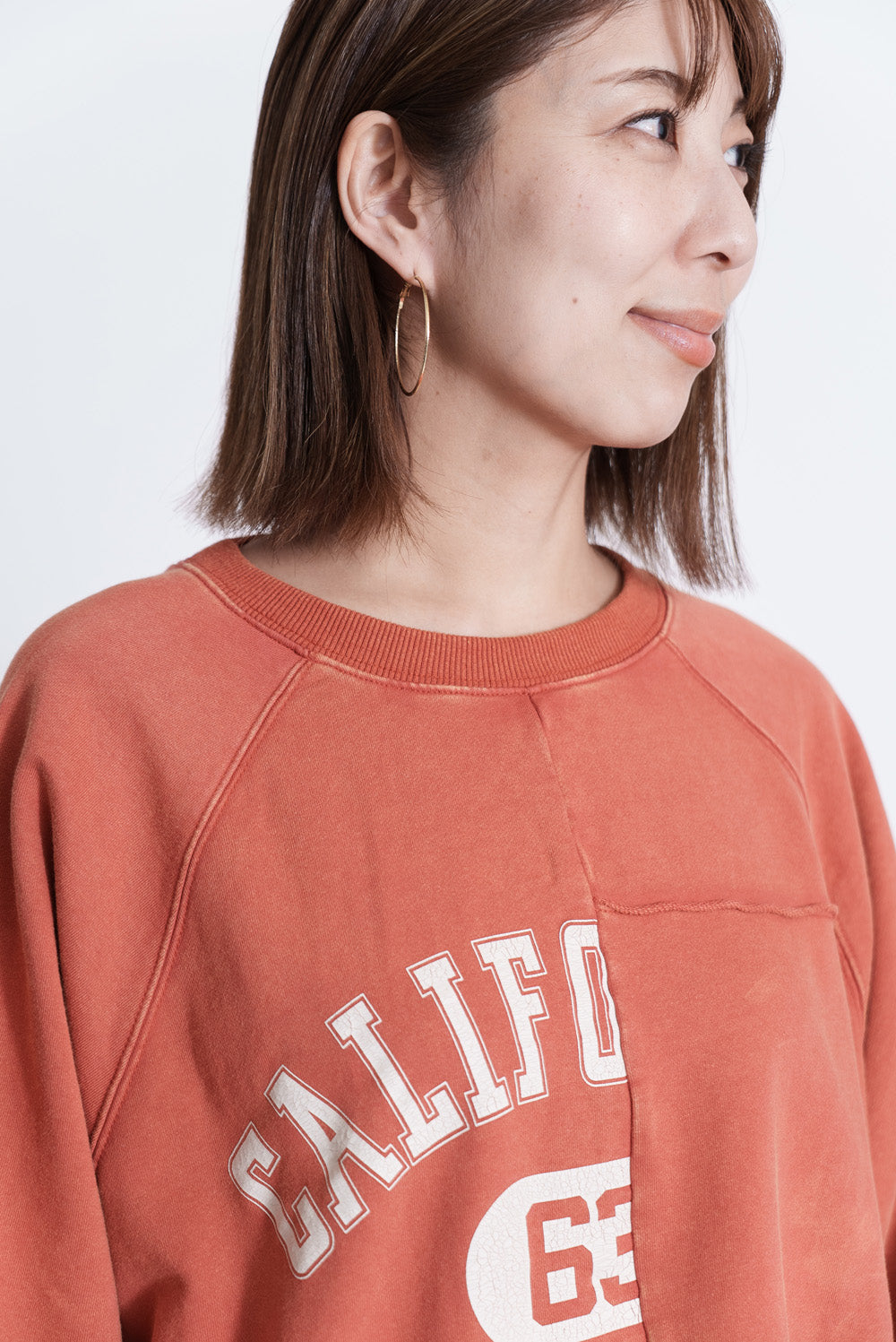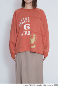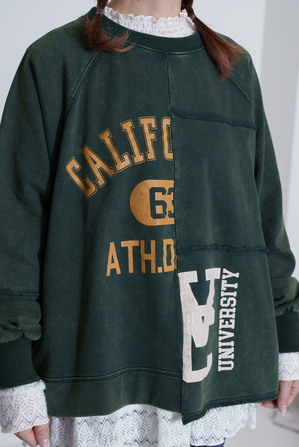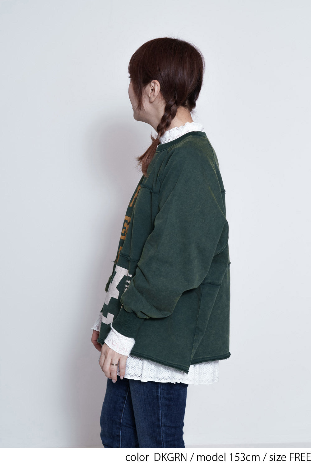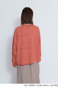 裏面を活かしたようなパッチワーク風の切替デザインが印象的で、1枚でスタイリングが決まる存在感のあるアイテム。