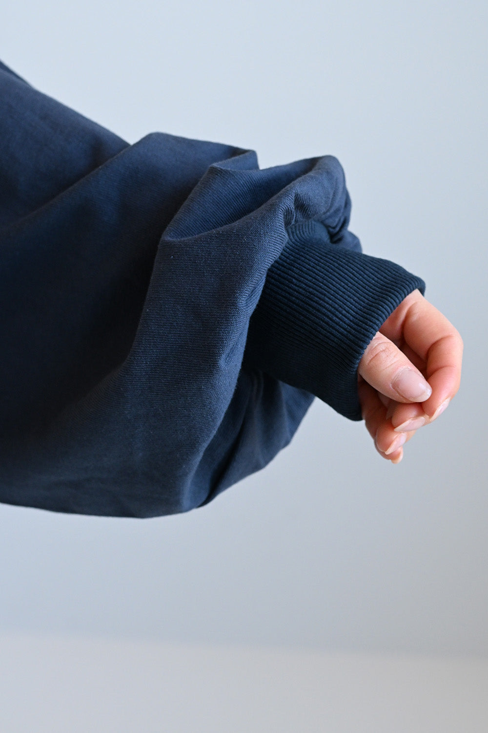 ショート丈と幅広の身幅が生み出す、ニュアンスのあるシルエットが魅力のボリュームプルオーバー。