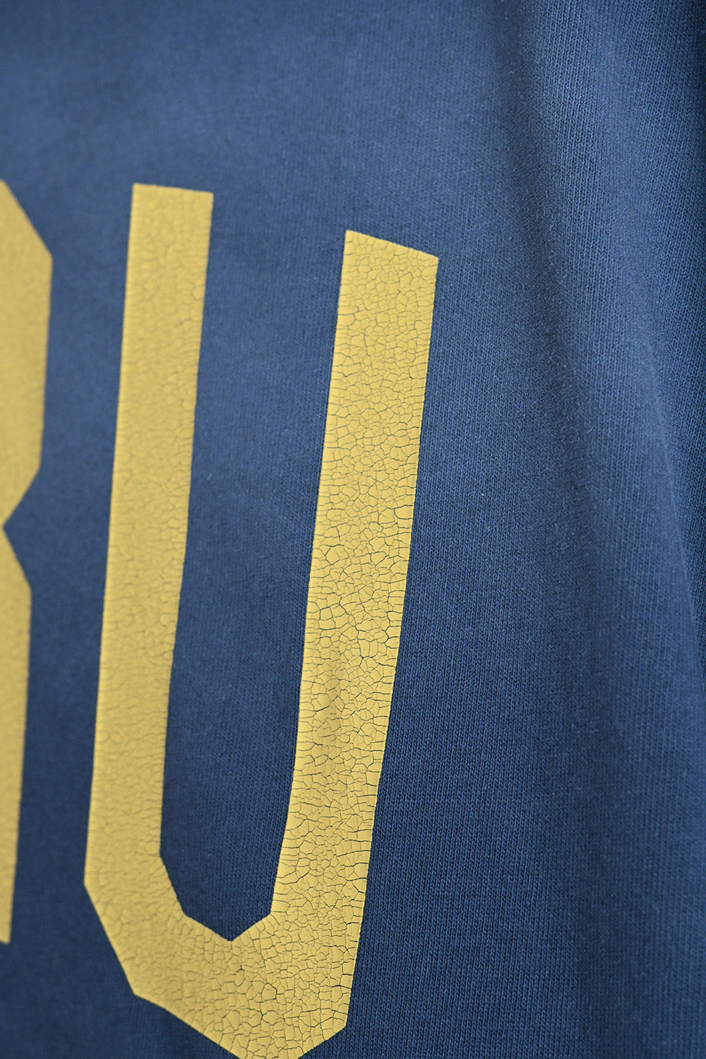 ヴィンテージライクな表情のロゴが、シンプルなコーディネートに程よい存在感をプラスしてくれます。
