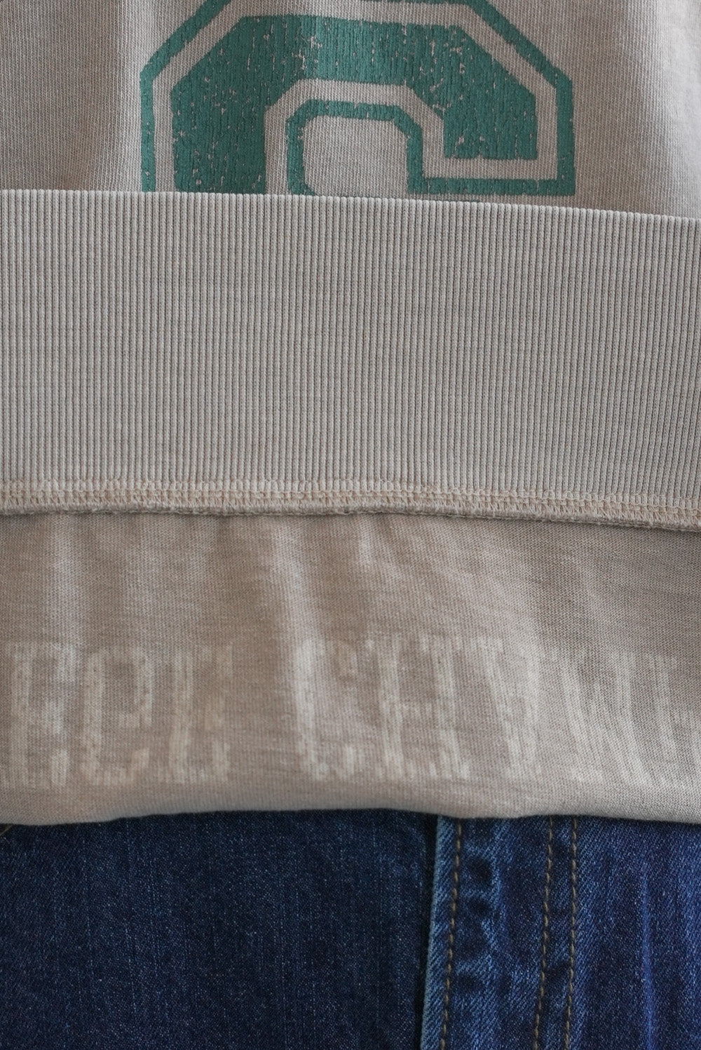 ピグメント加工ならではの色あせたような表情が、こなれ感たっぷりの一枚です。