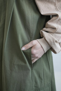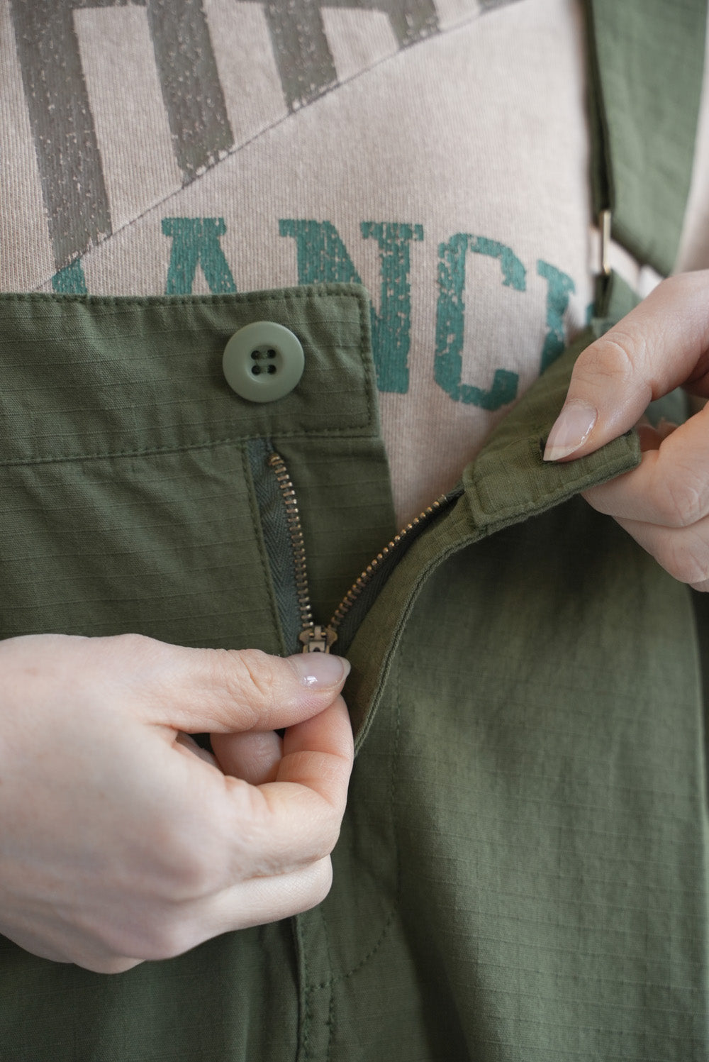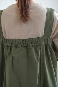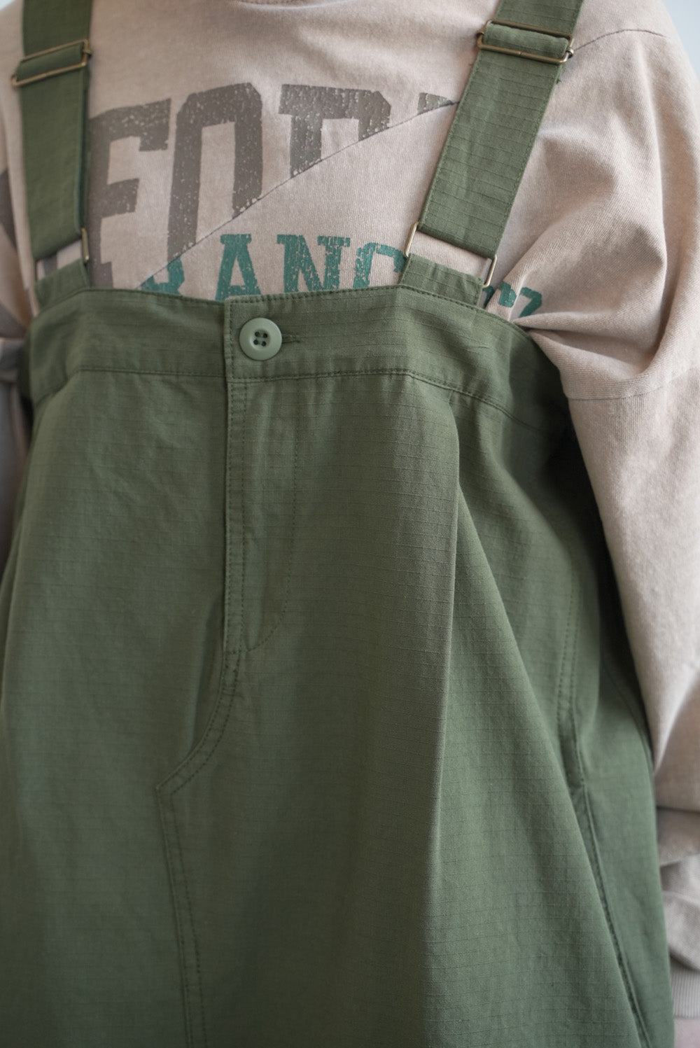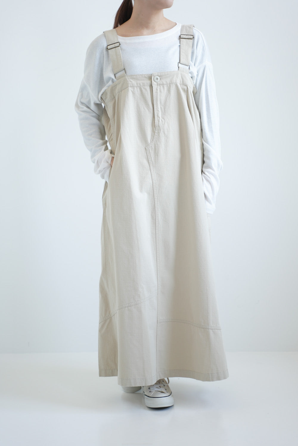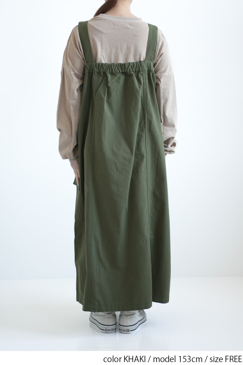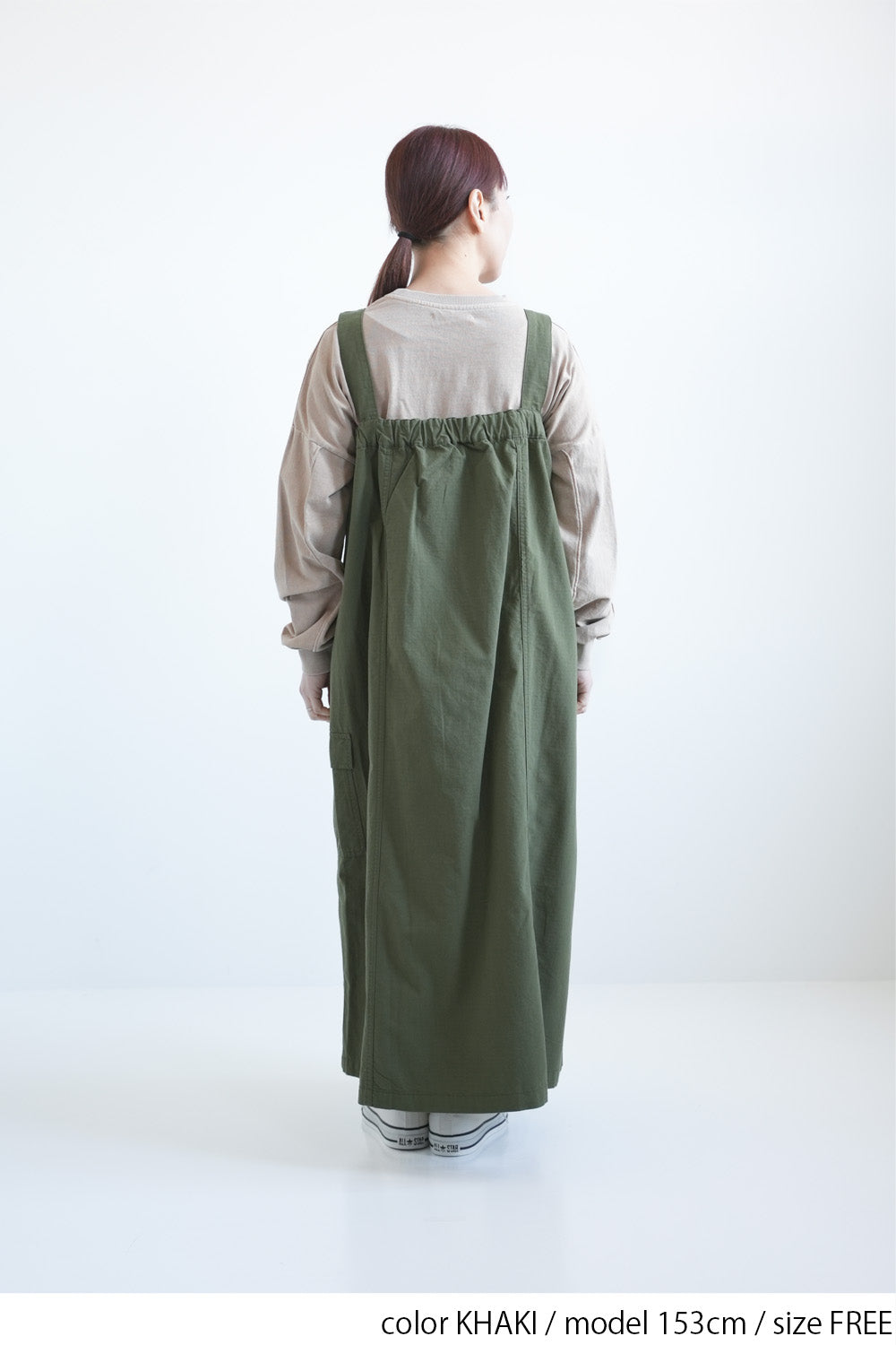 丈夫で軽やかなリップストップ素材を使用し、ポケット付きなのでデイリーに頼れるジャンパースカートです。