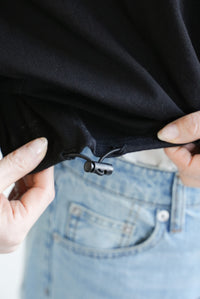 サイドの紐をキュッと絞ることで立体感のあるシルエットに。