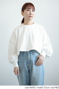 さらに、袖がクシュっとしたボリューム袖が女性らしい柔らかさをプラス。