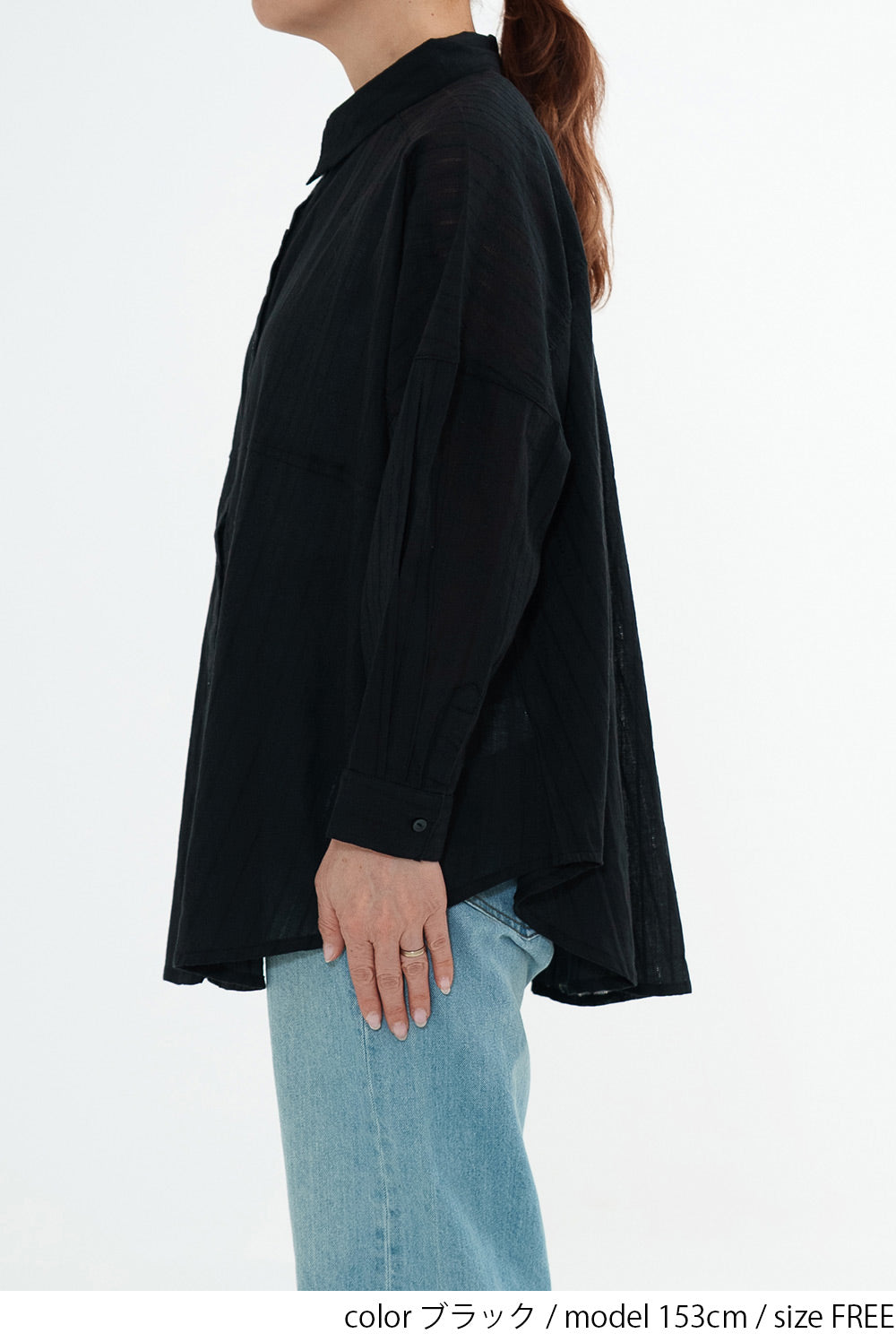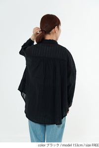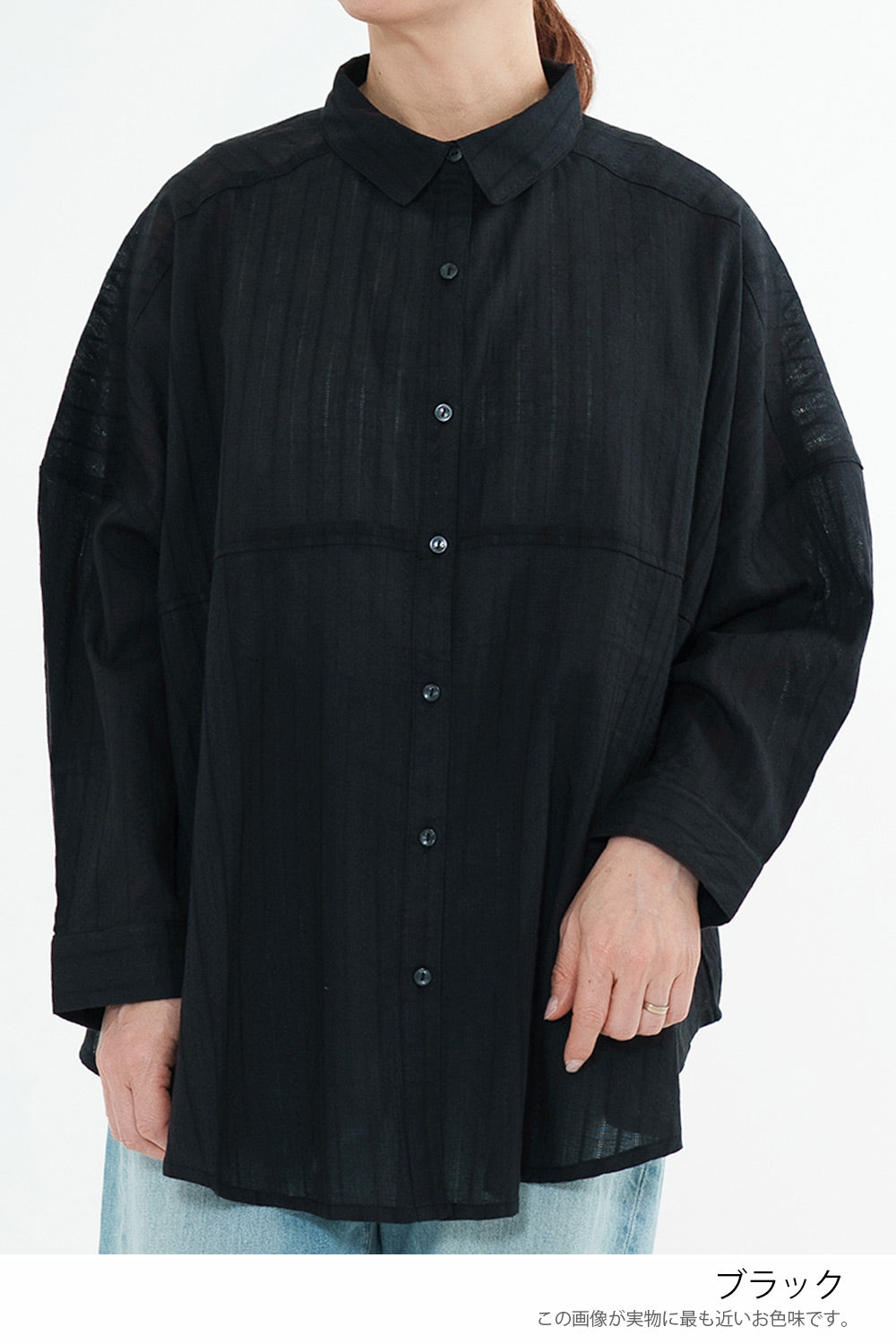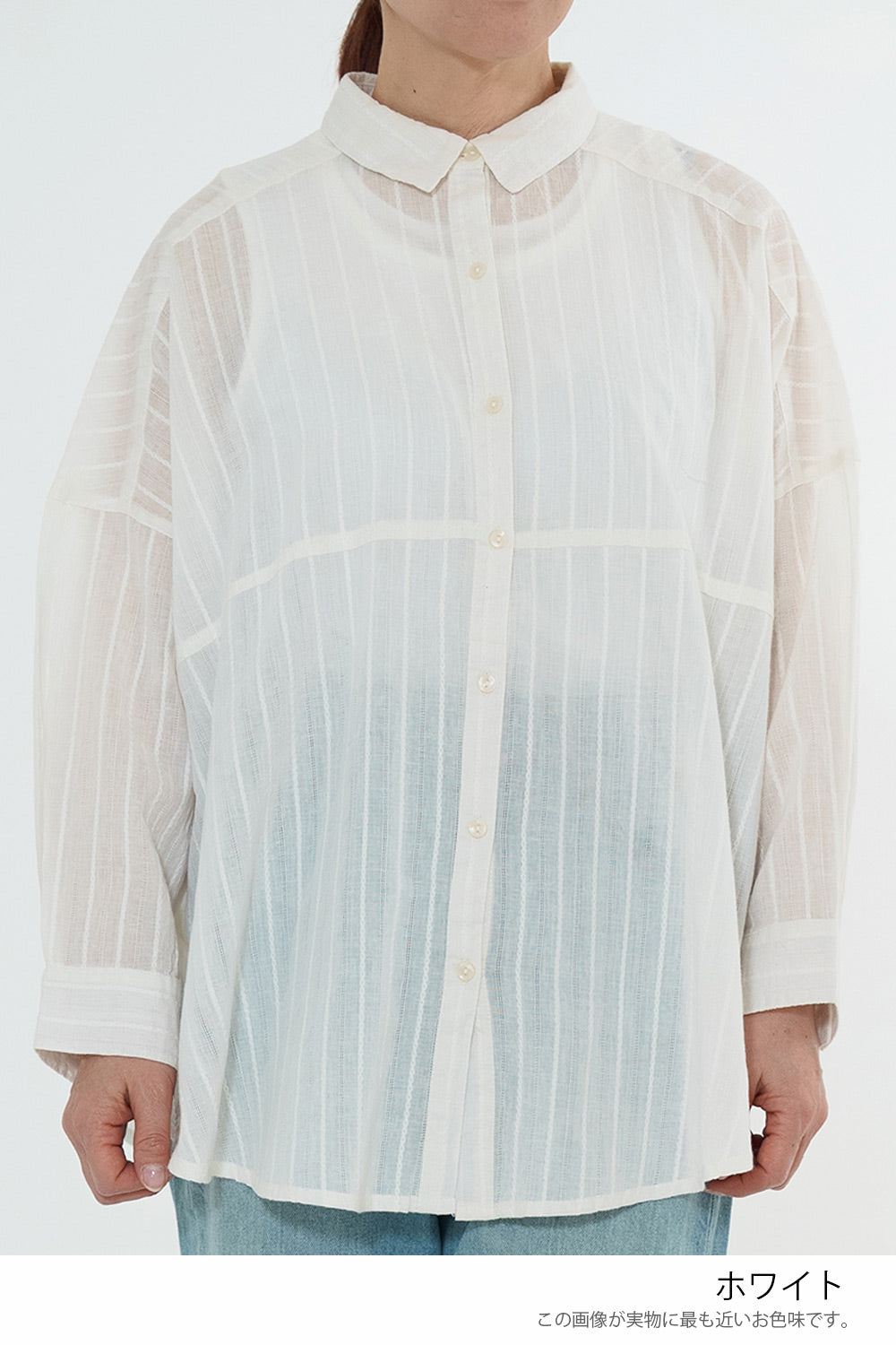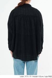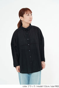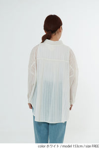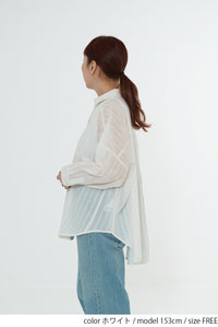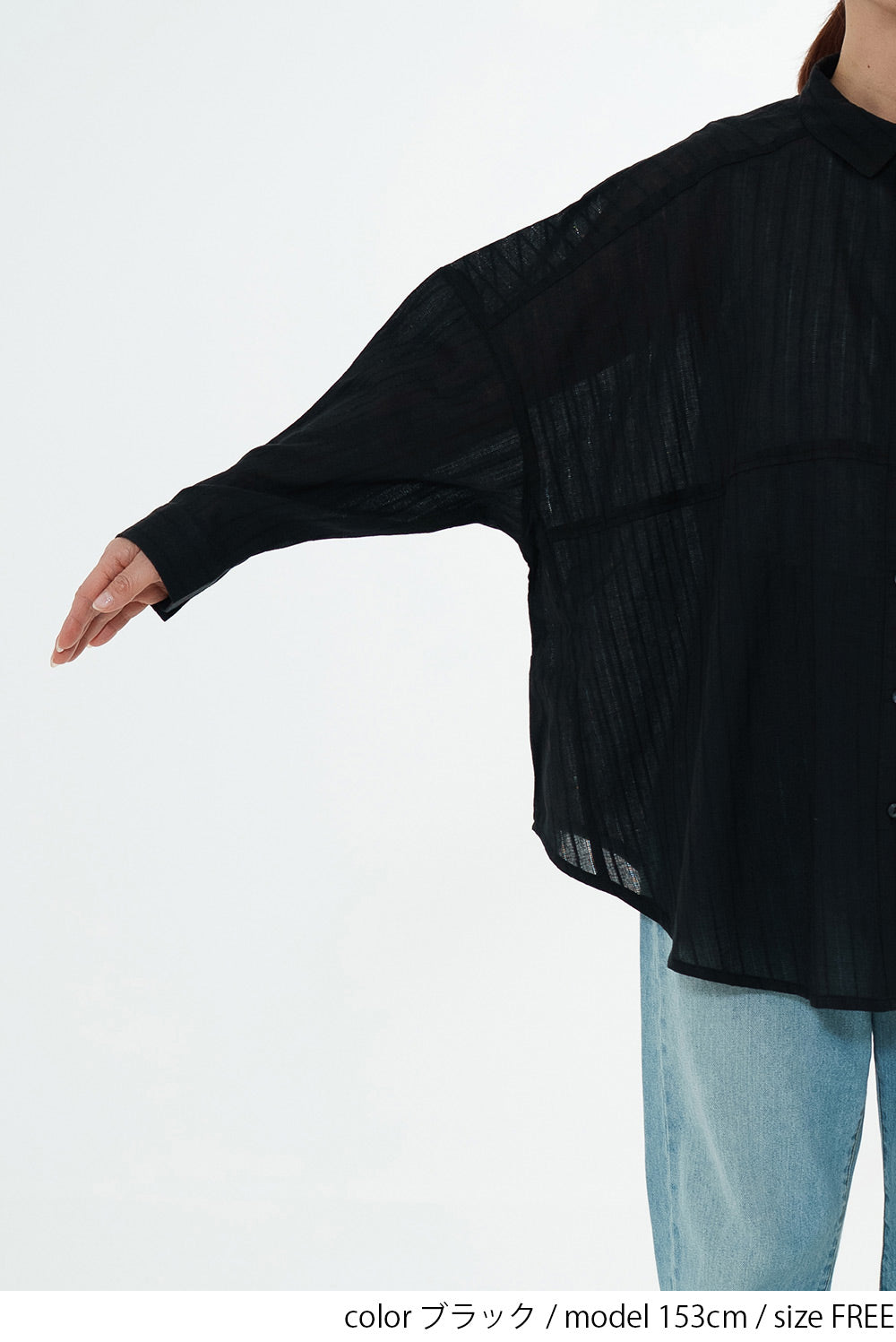 ほんのり透け感のある生地が、コーディネートに抜け感と涼しげな印象をプラス。
