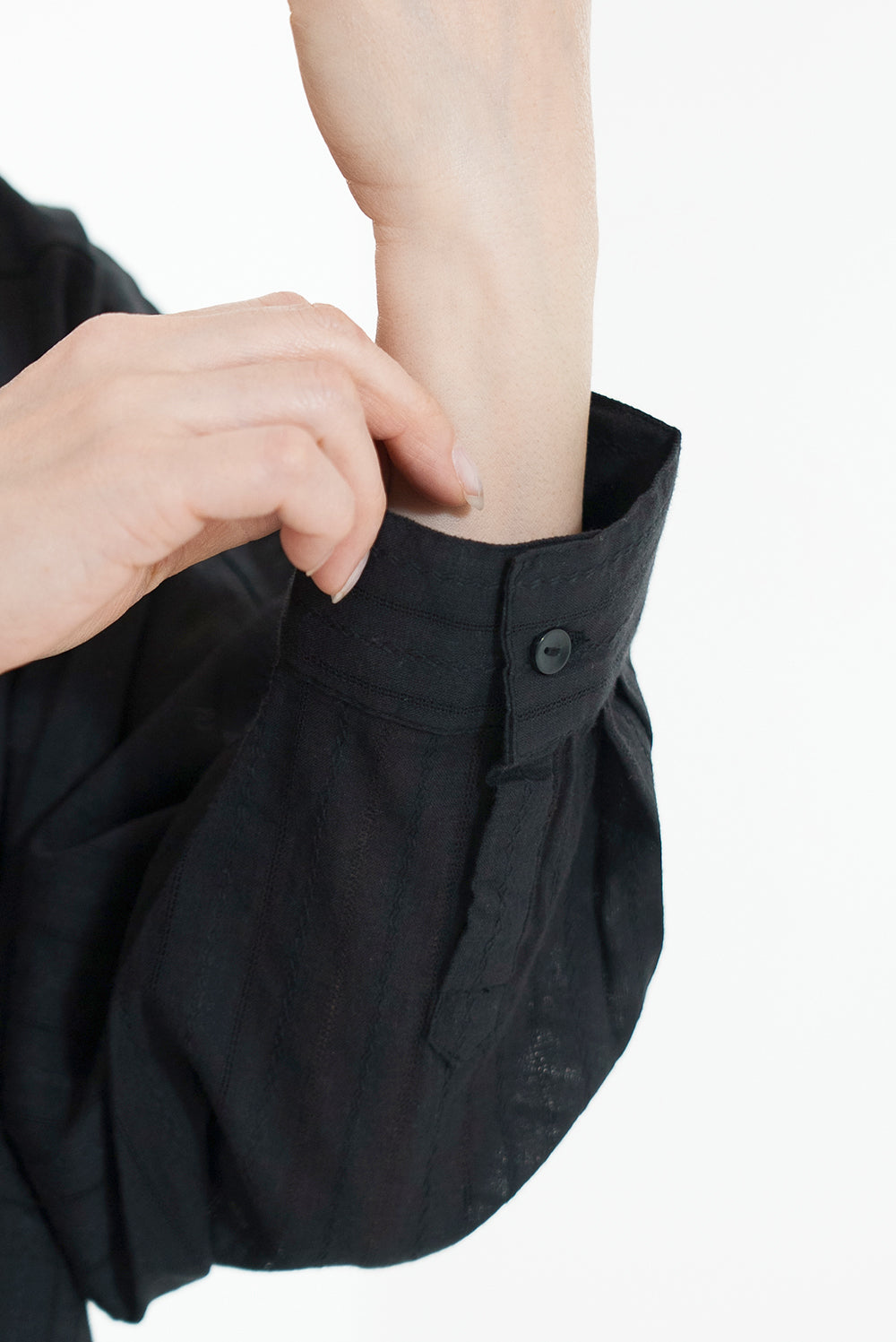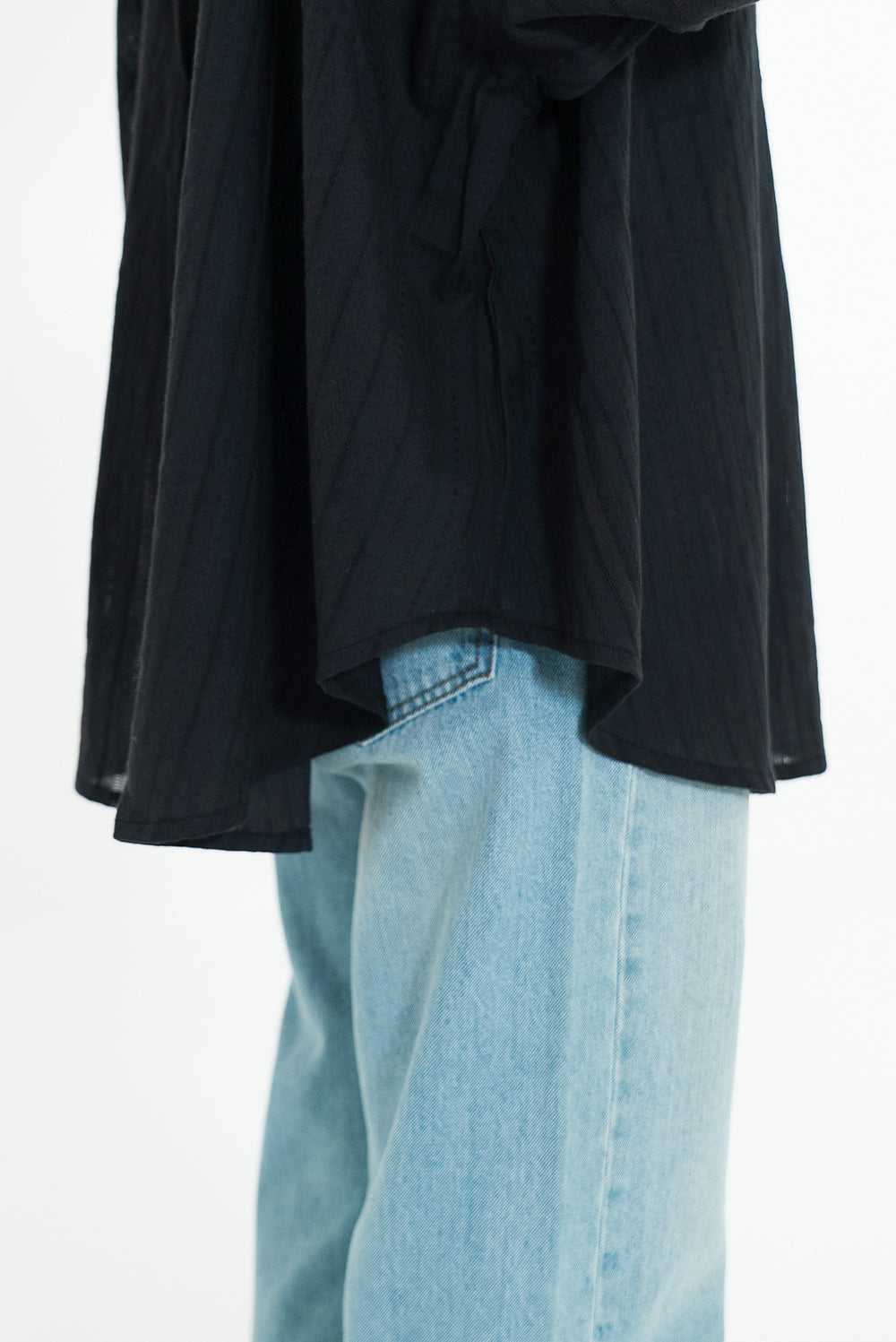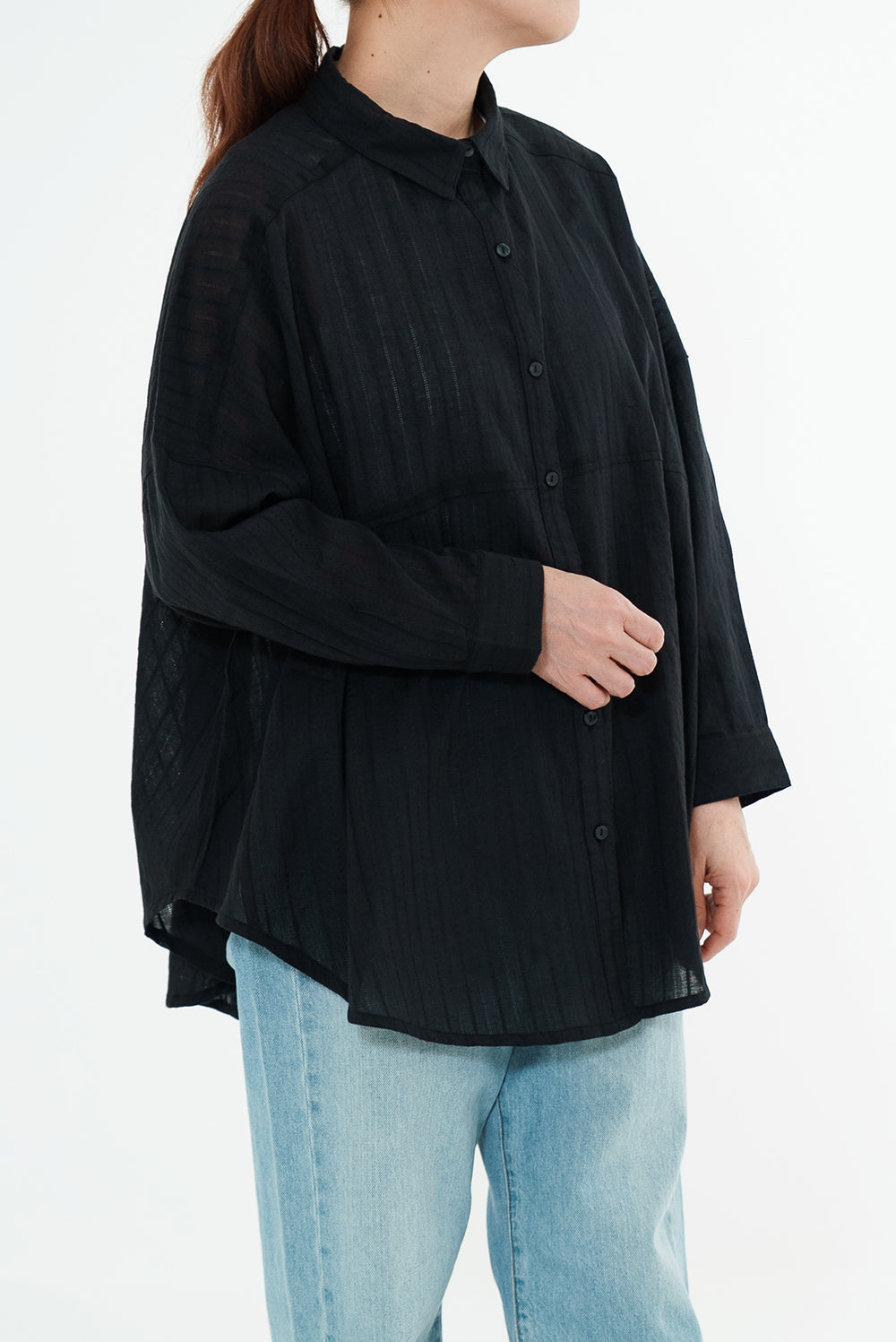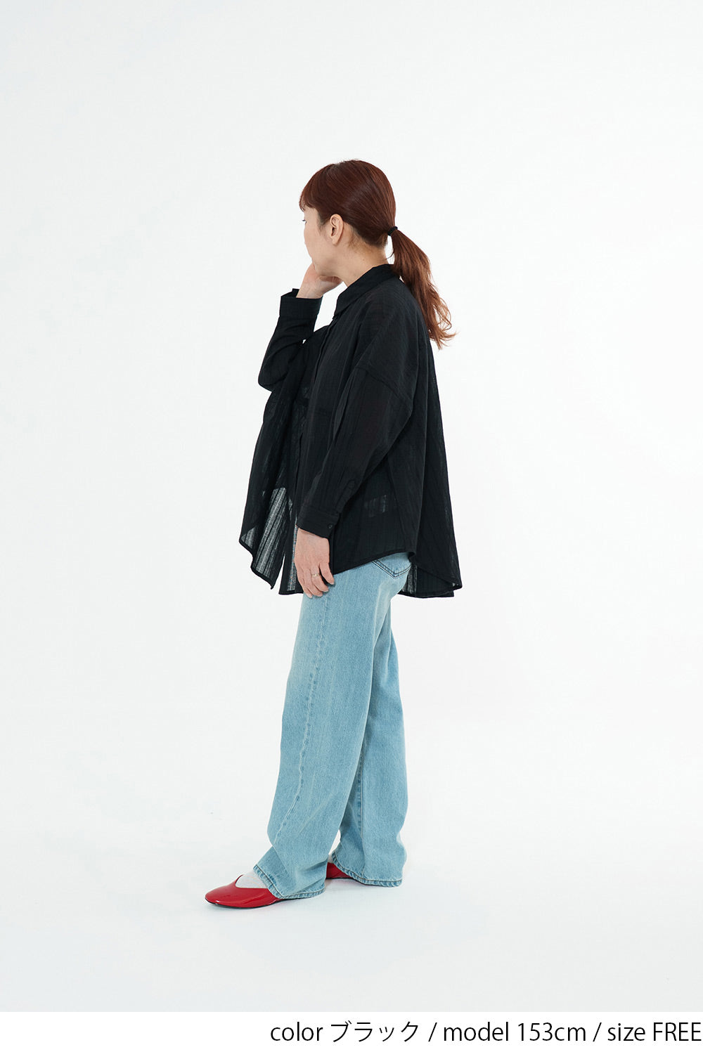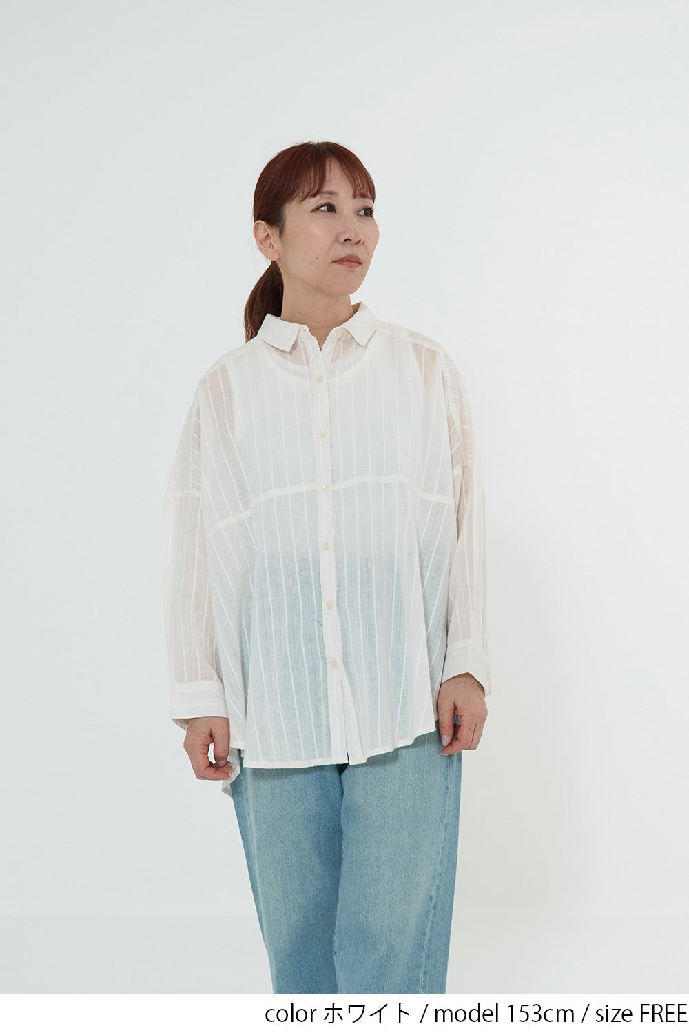 ほんのり透け感のある生地が、コーディネートに抜け感と涼しげな印象をプラス。