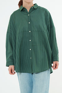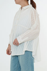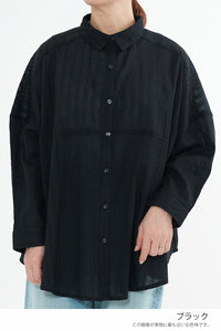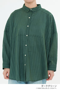 やわらかなコットン素材に、ドビー織りのストライプ柄をあしらった軽やかなロングスリーブシャツ。