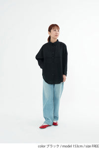 ボタンを少し開けて抜け感を出せば、こなれた大人のリラックスコーデが完成します。
