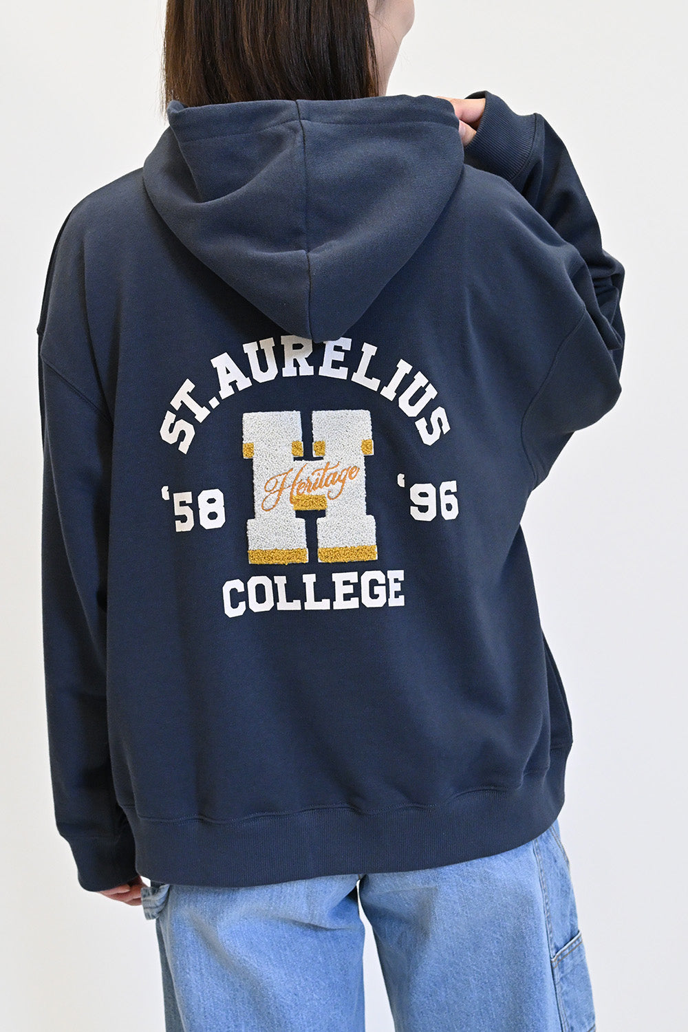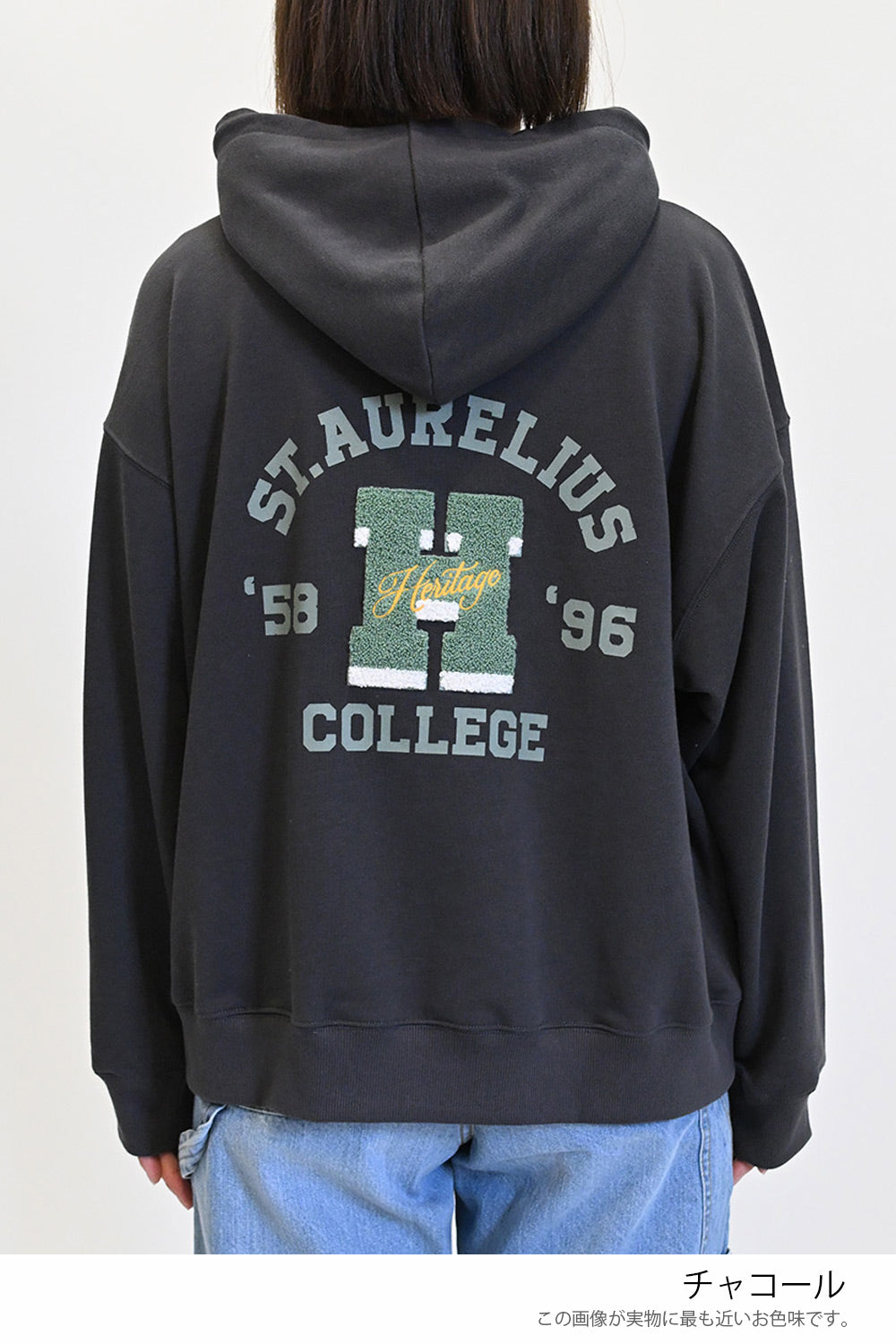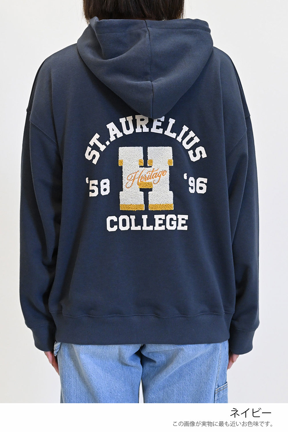バックの“H”ロゴがアクセントになった、カジュアルなフード付きプルオーバー。
