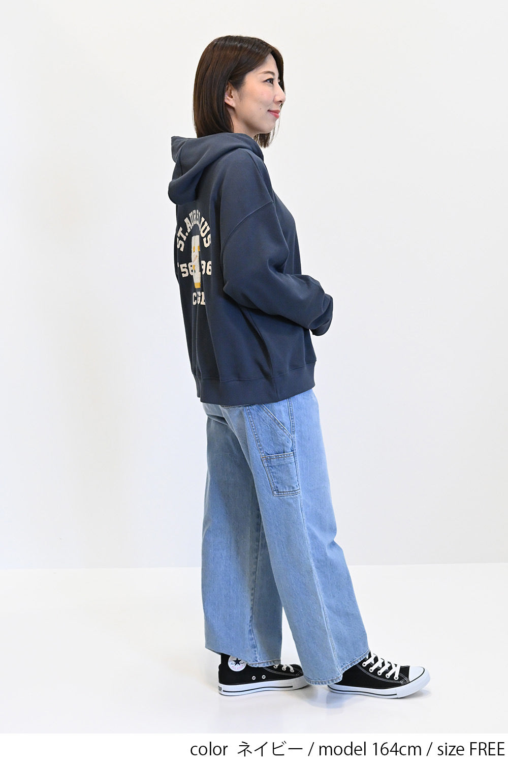 スキニーデニムやレギンスと合わせて、ラフで動きやすいカジュアルスタイルに。