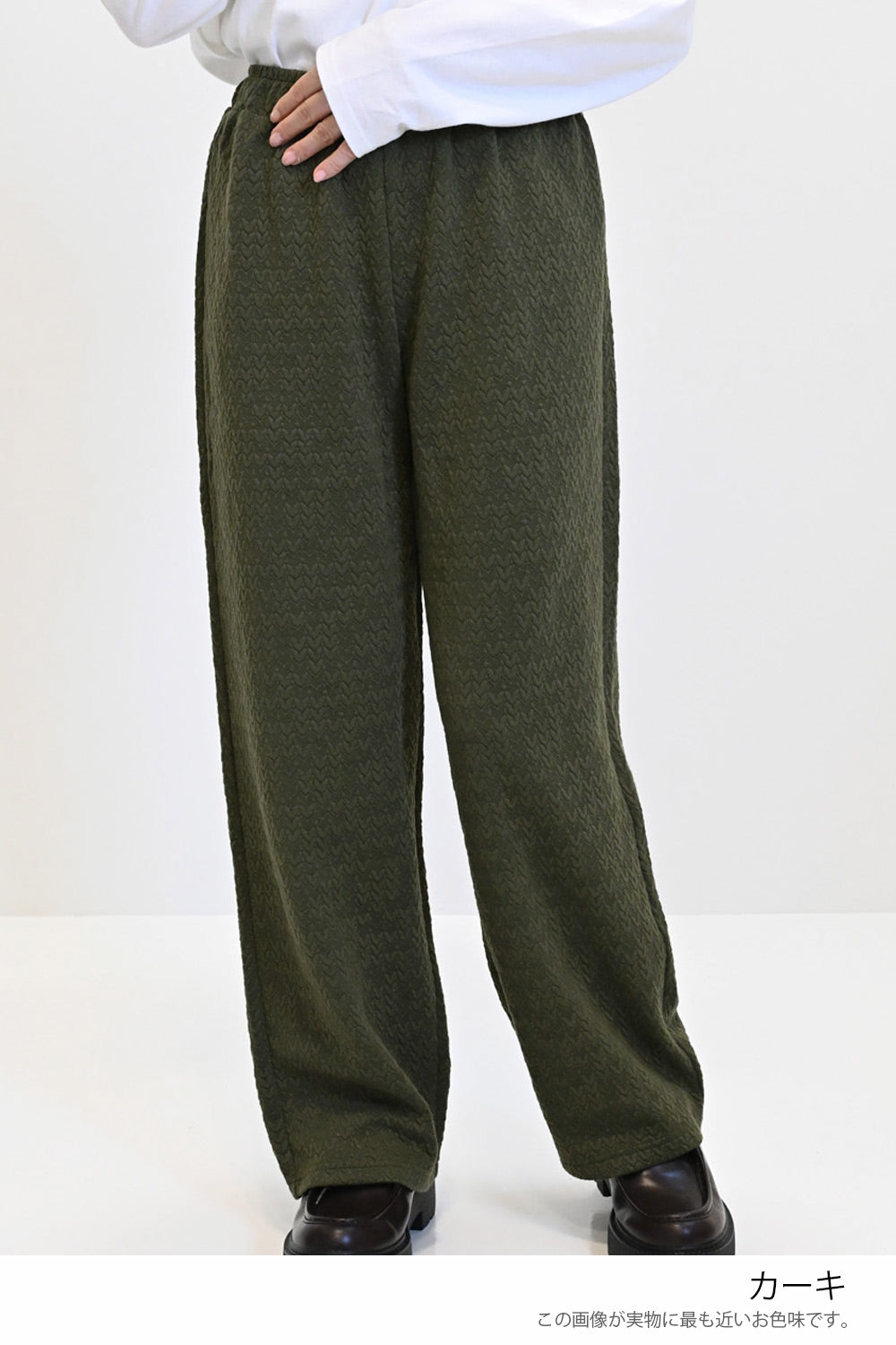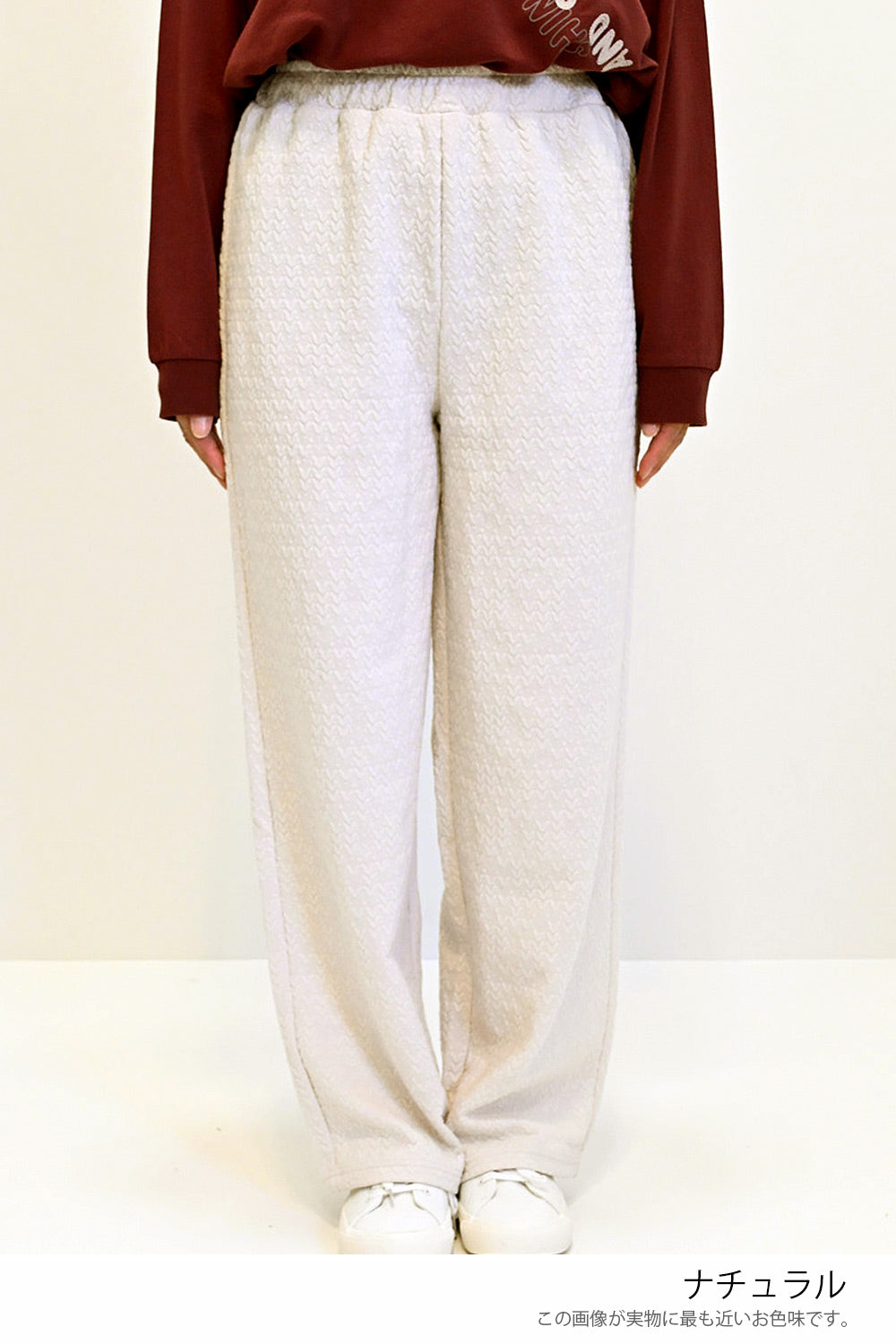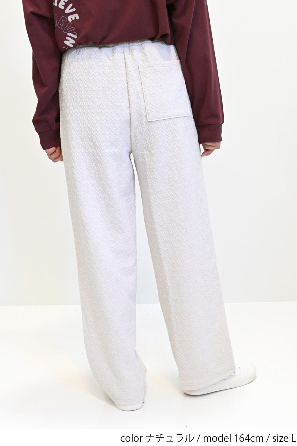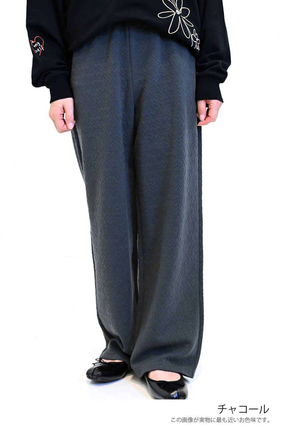 さりげないハート柄の凹凸生地が可愛いワイドリブパンツ。