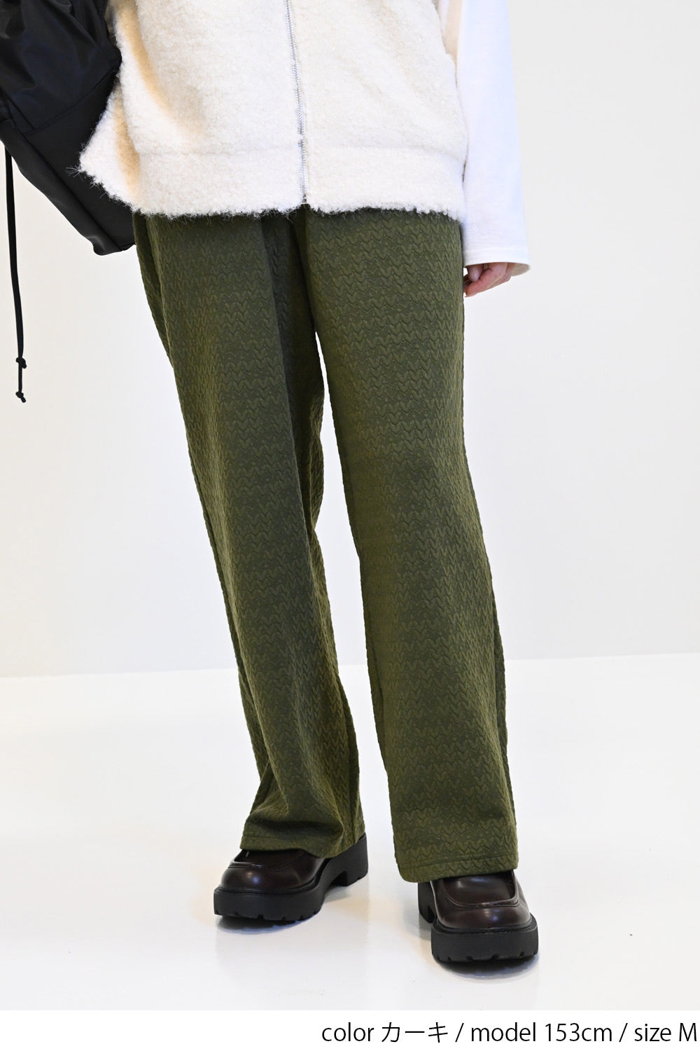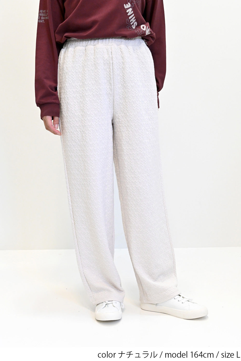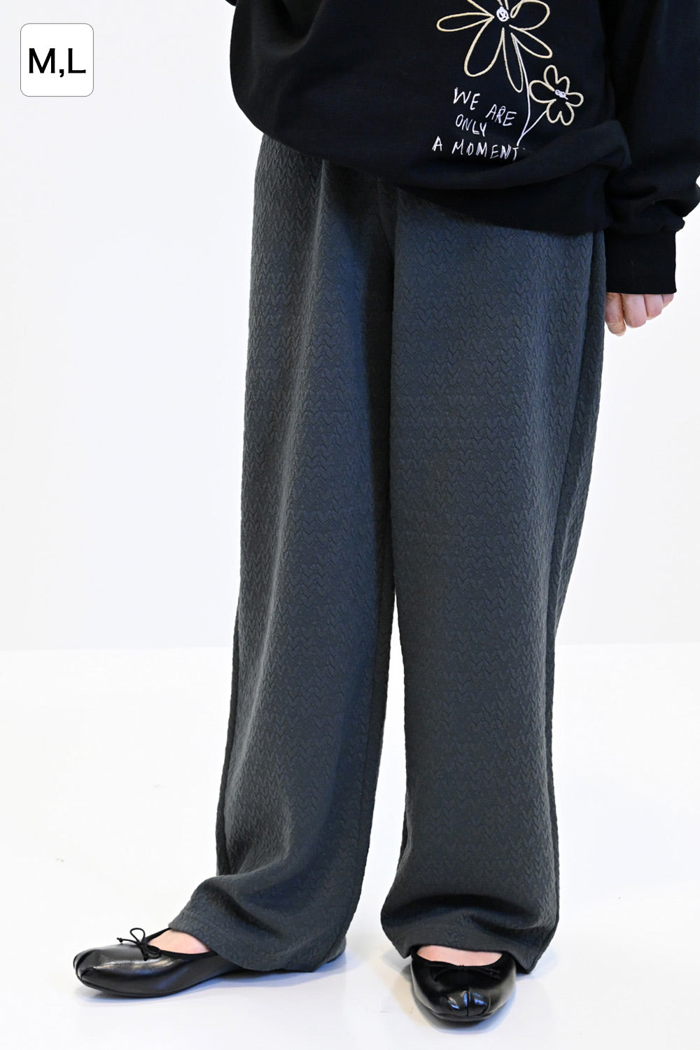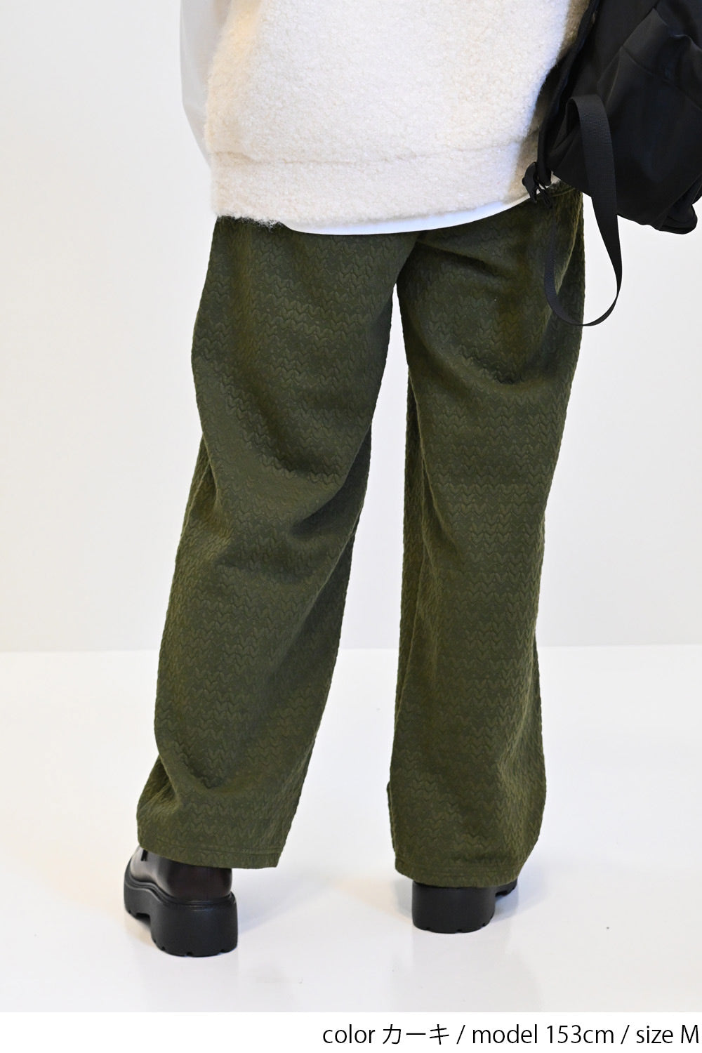 さりげないハート柄の凹凸生地が可愛いワイドリブパンツ。