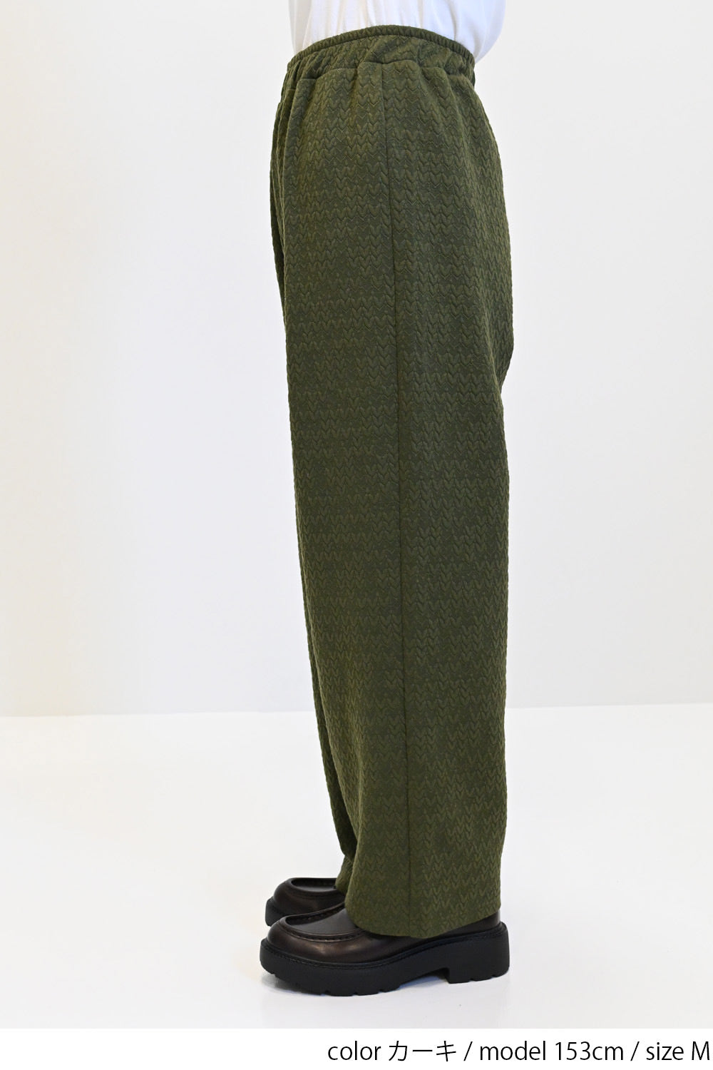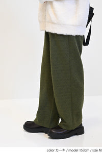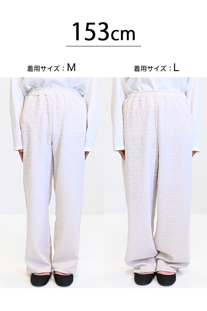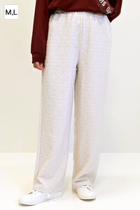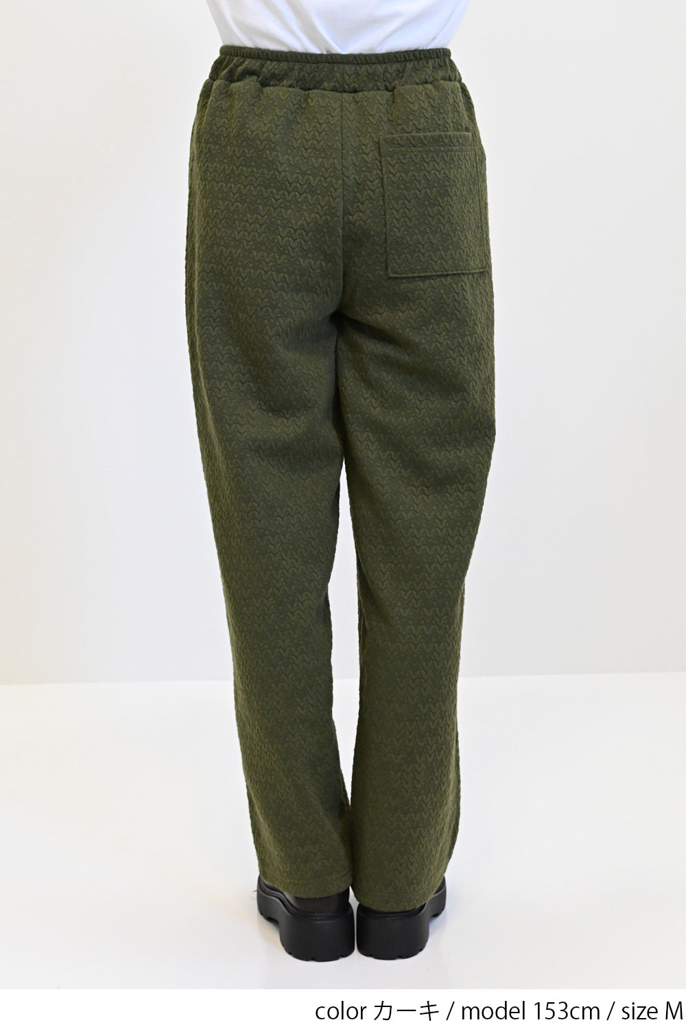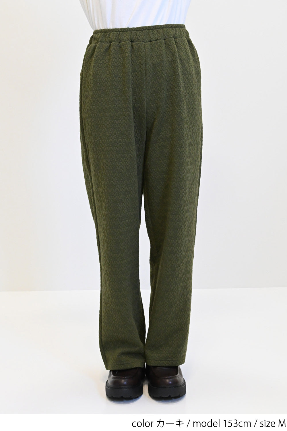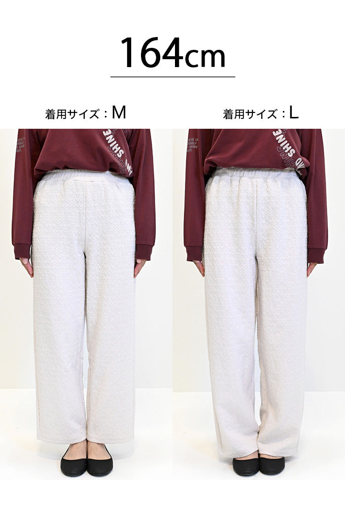 さりげないハート柄の凹凸生地が可愛いワイドリブパンツ。