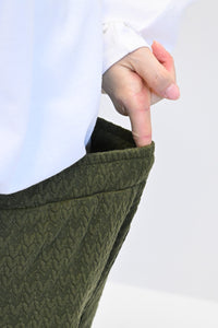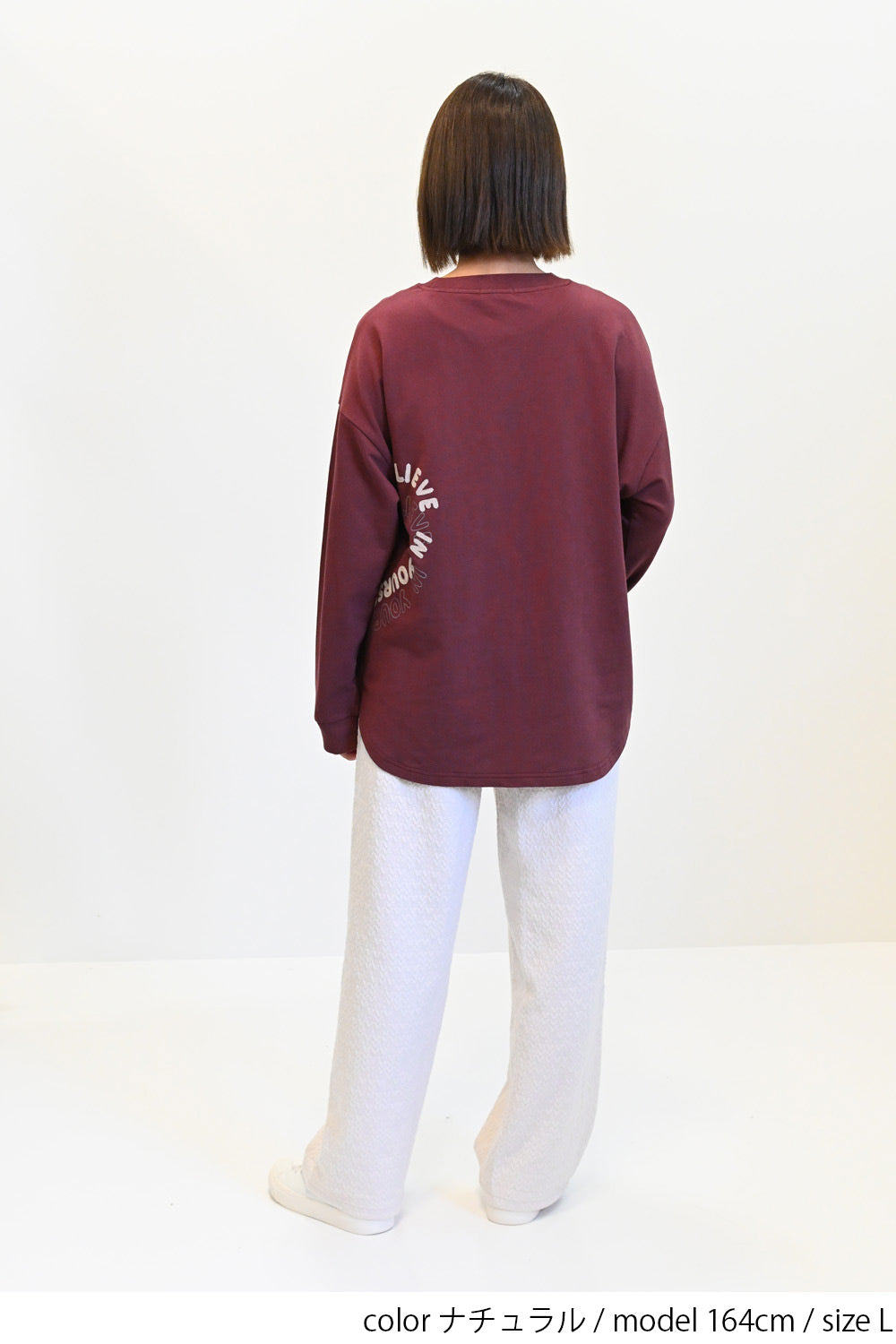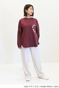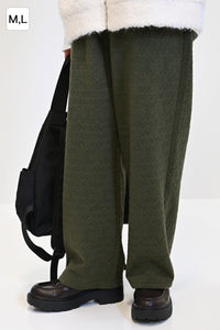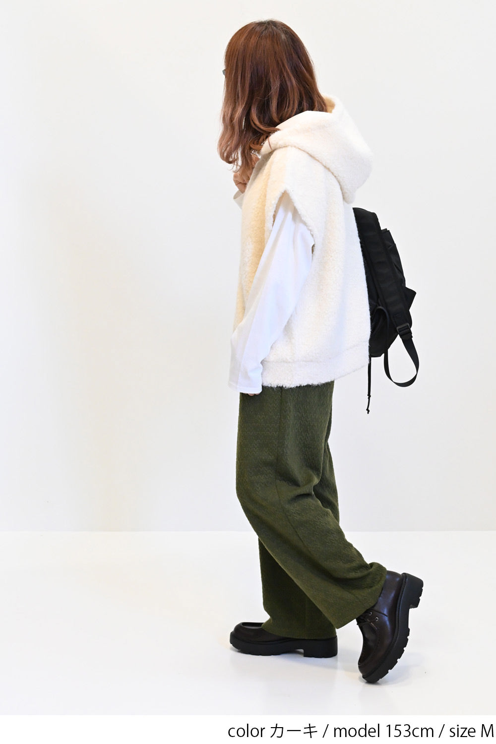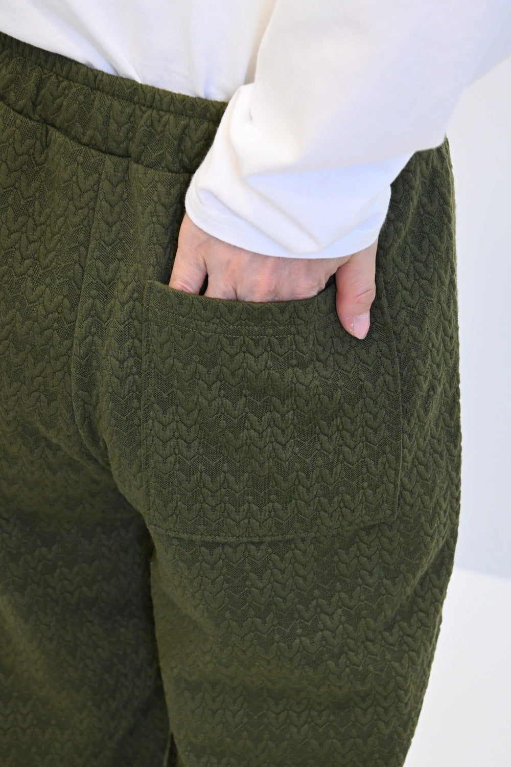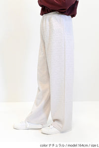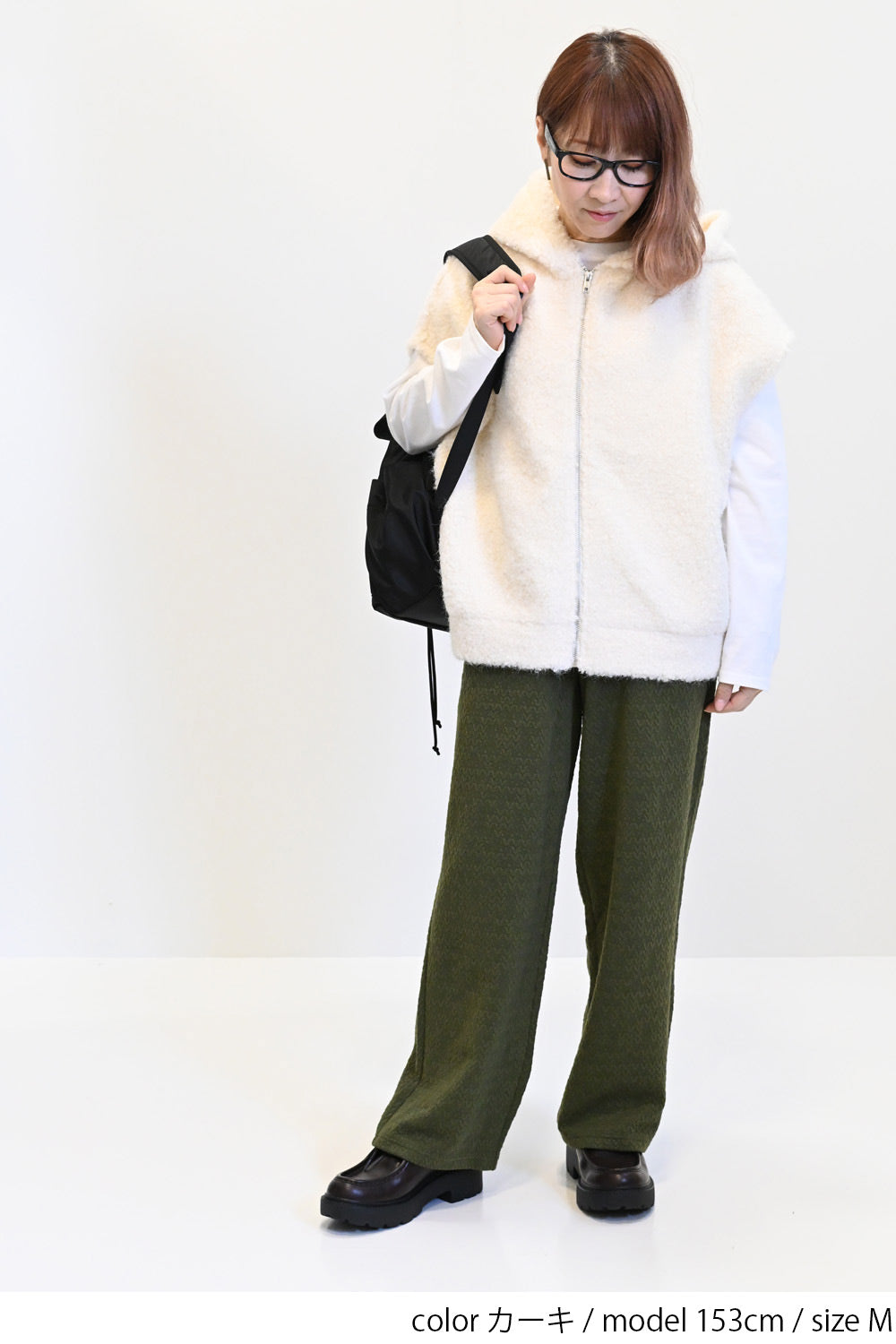 さりげないハート柄の凹凸生地が可愛いワイドリブパンツ。