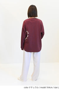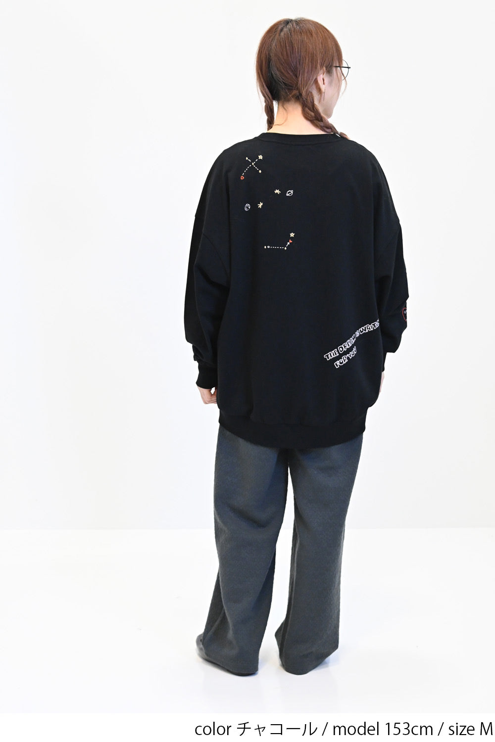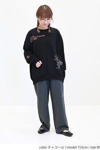 ゆったりとしたワイドシルエットなので、スウェットやロゴTと合わせたリラックススタイルがおすすめ。
