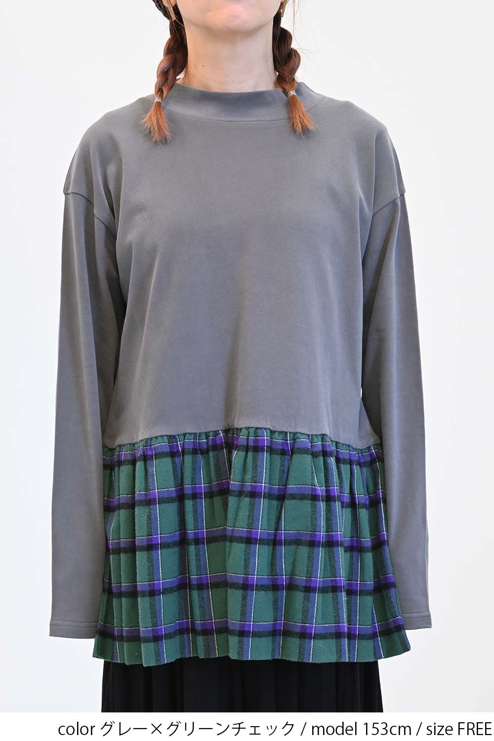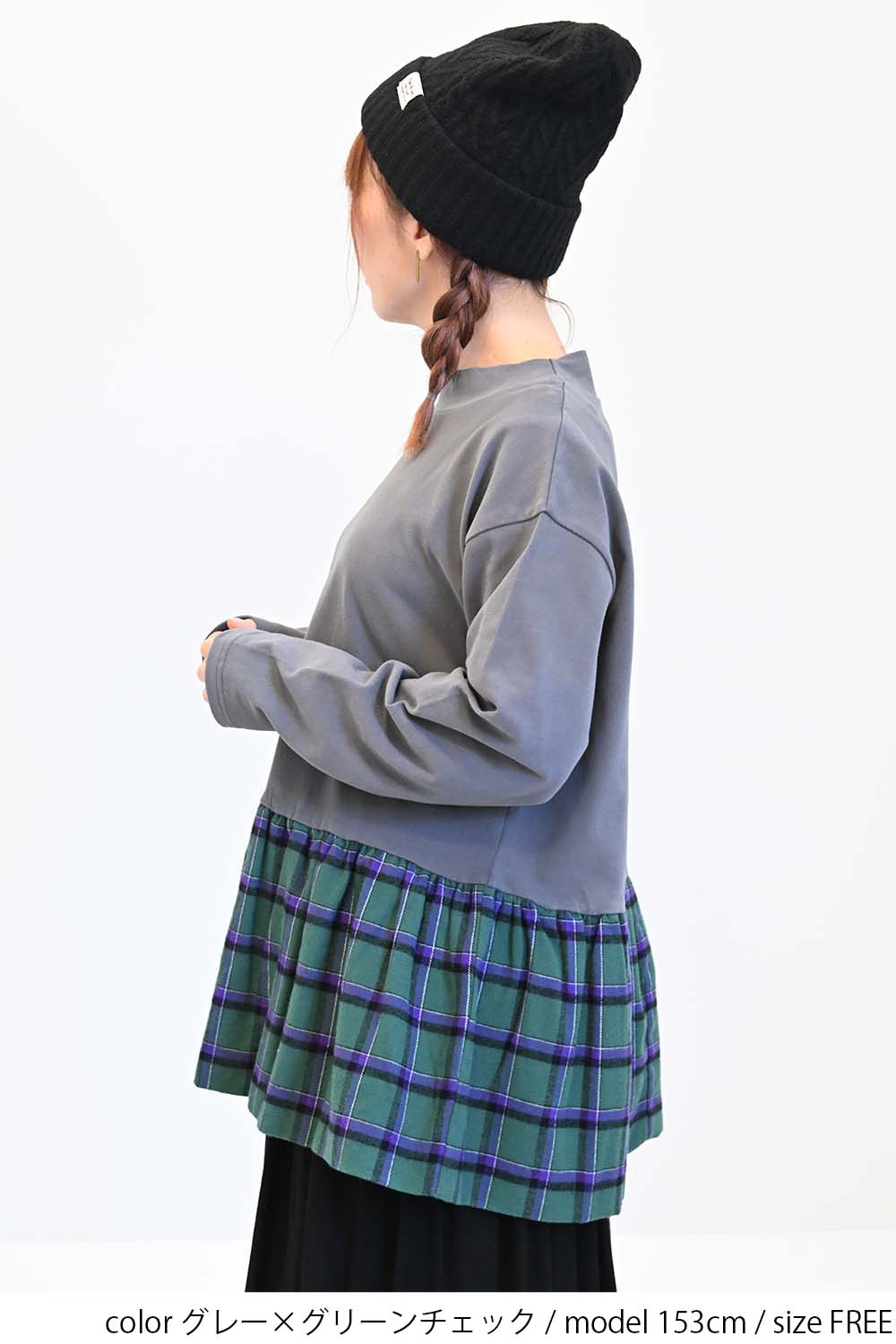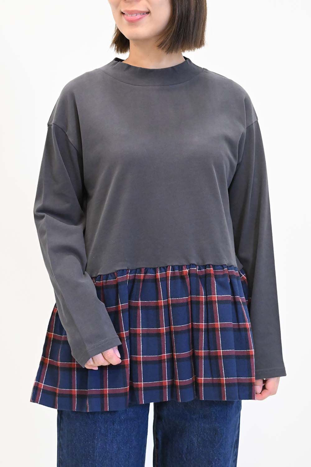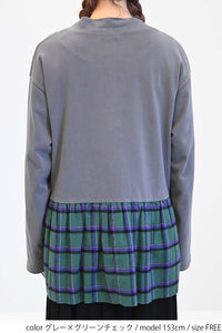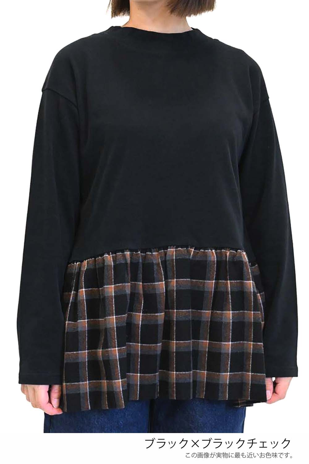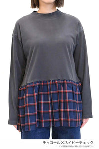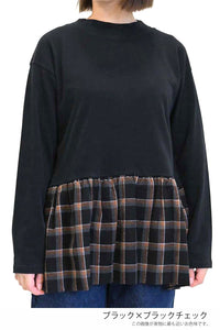 ウエスト下をチェック柄で切り替えた、大人可愛いペプラムチュニック。
